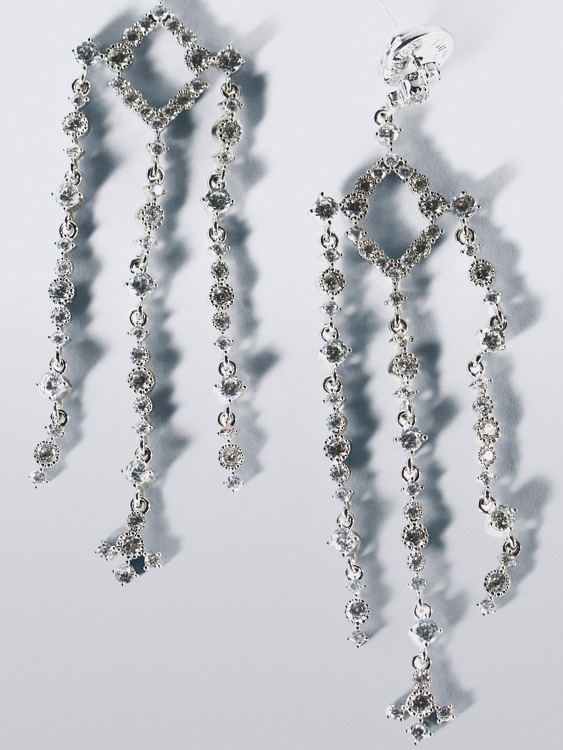 Massimo Dutti Серьги-шандельеры со стразами, серебряный