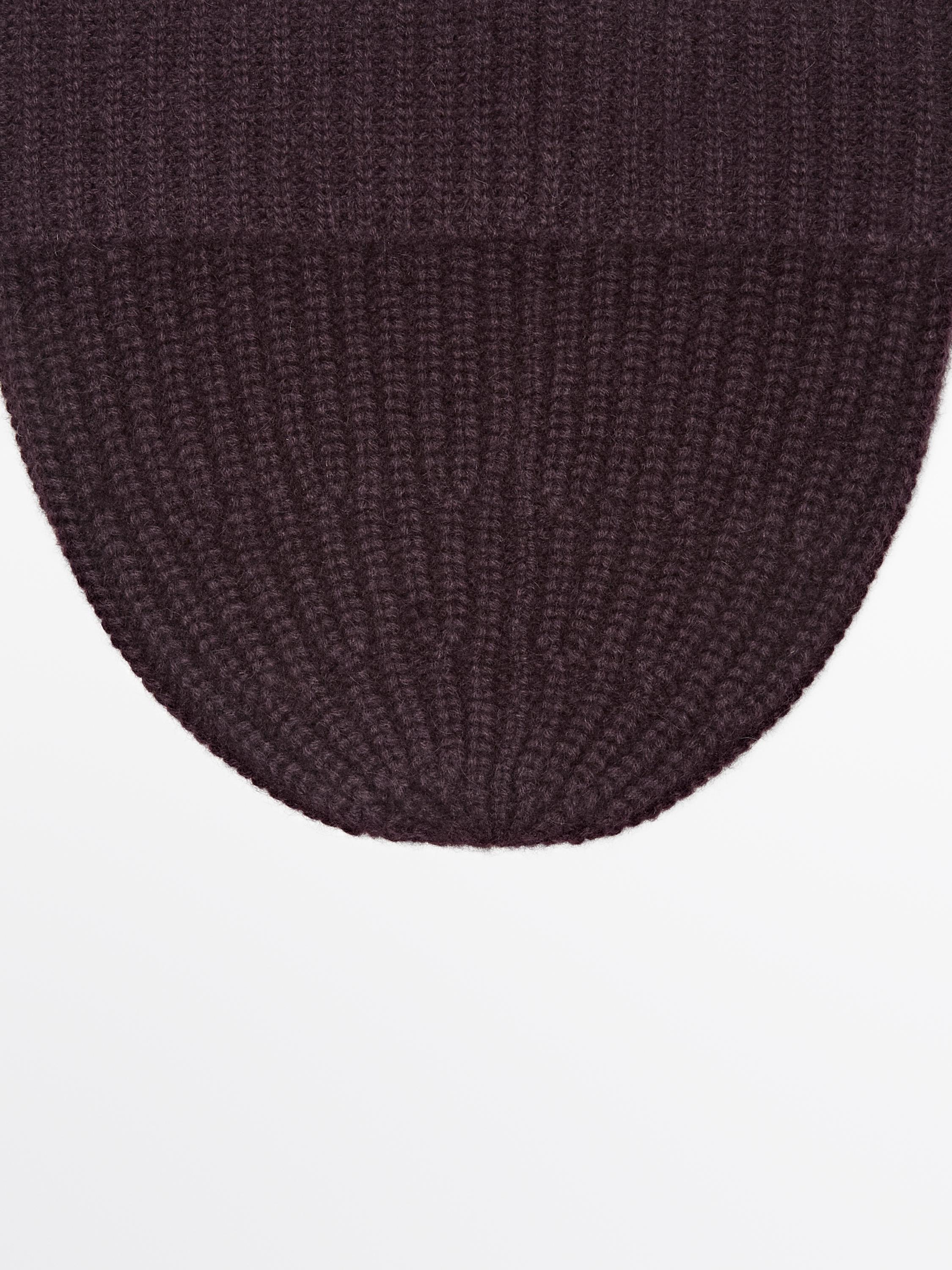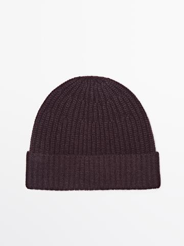 Massimo Dutti Шапка бини из 100% кашемира в рубчик, гранатовый