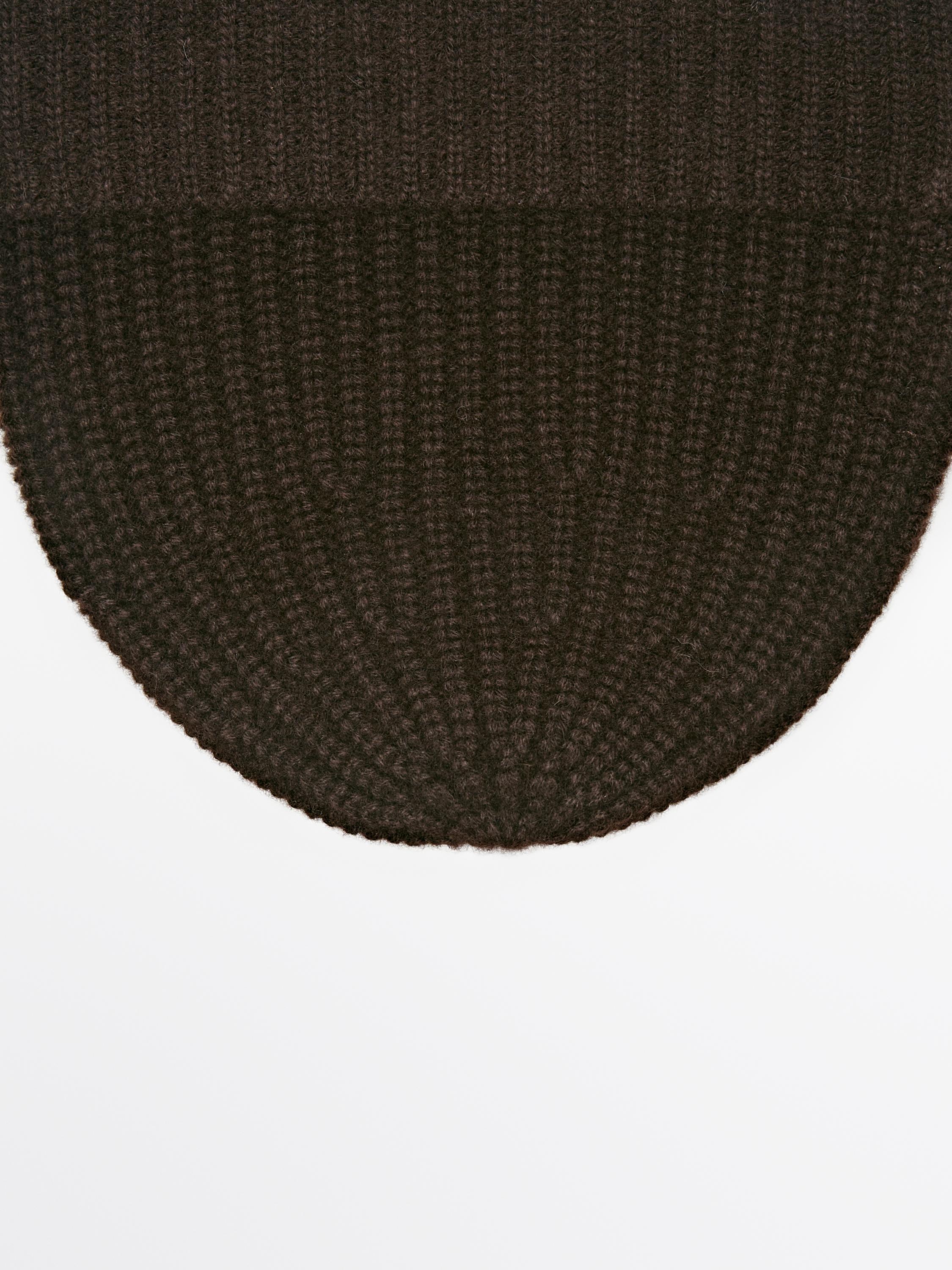Massimo Dutti Шапка бини из 100% кашемира в рубчик, коричневый
