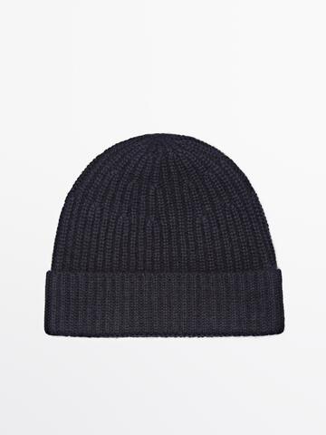 Massimo Dutti Шапка бини из 100% кашемира в рубчик, темно-синий
