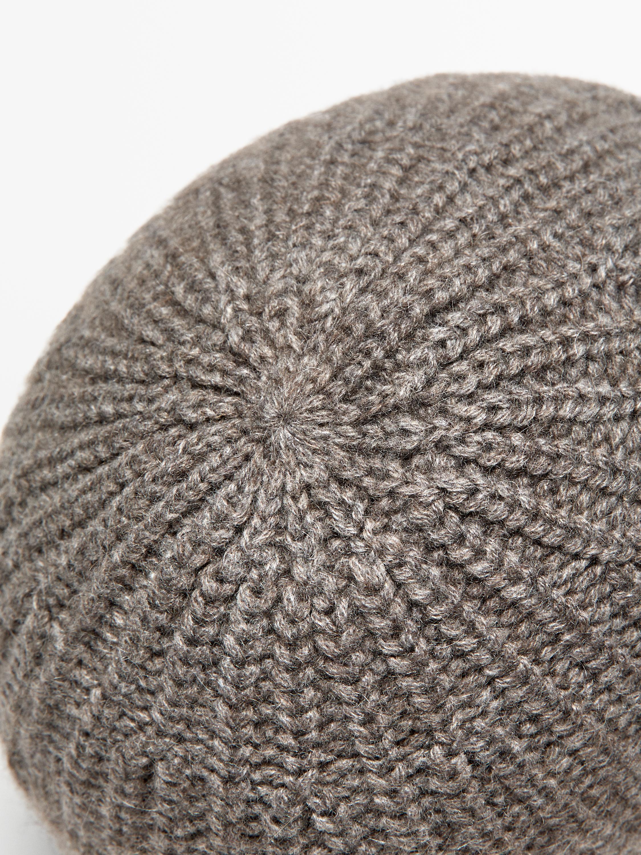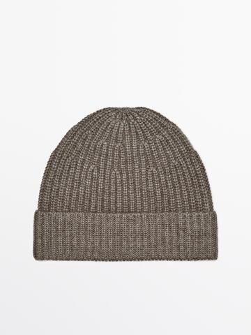 Massimo Dutti Шапка бини из 100% кашемира в рубчик, темный хаки