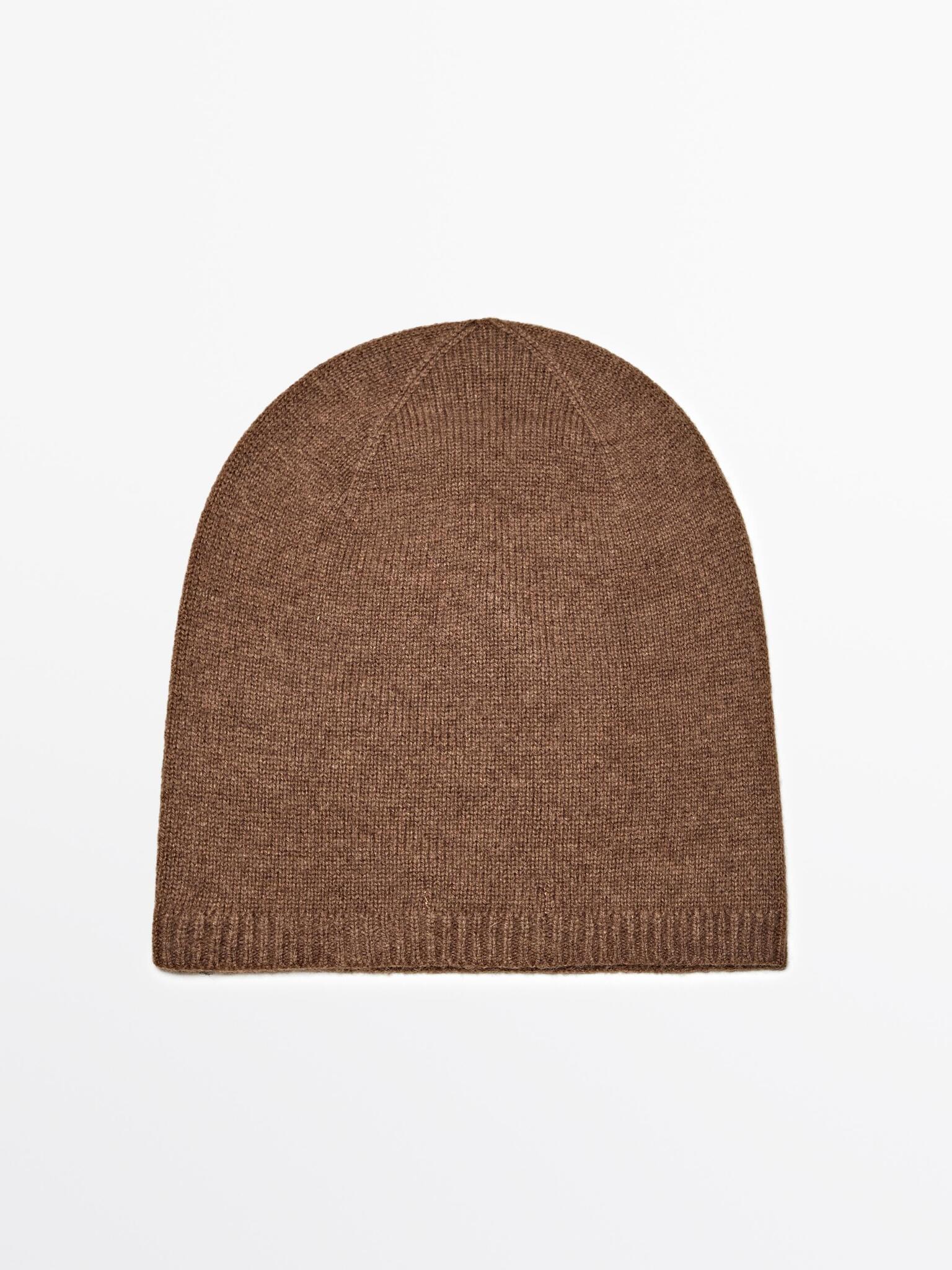 Massimo Dutti Шапка бини из тонкого трикотажа, коричневый