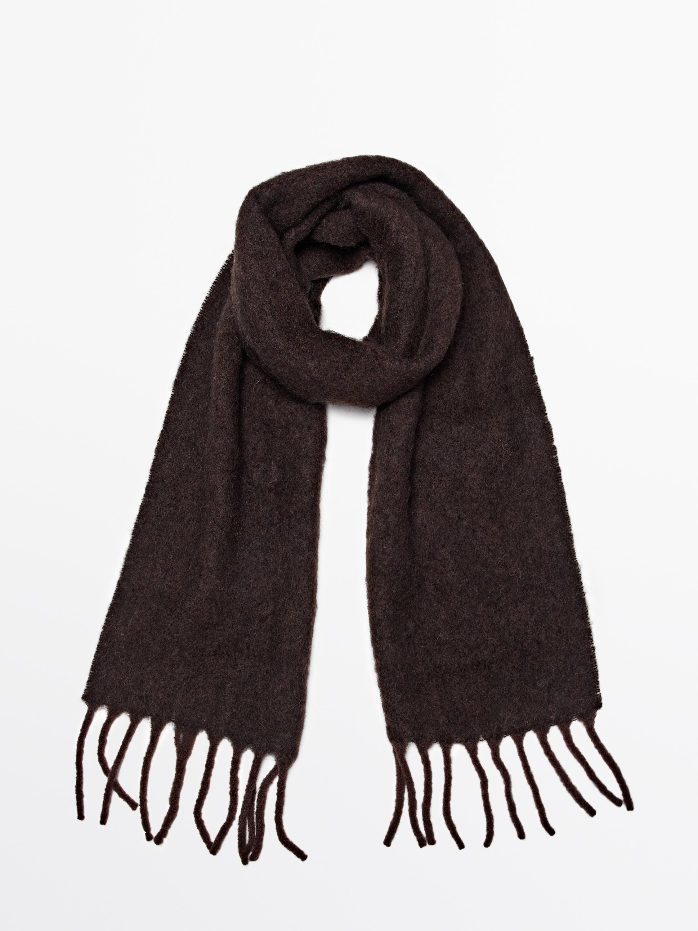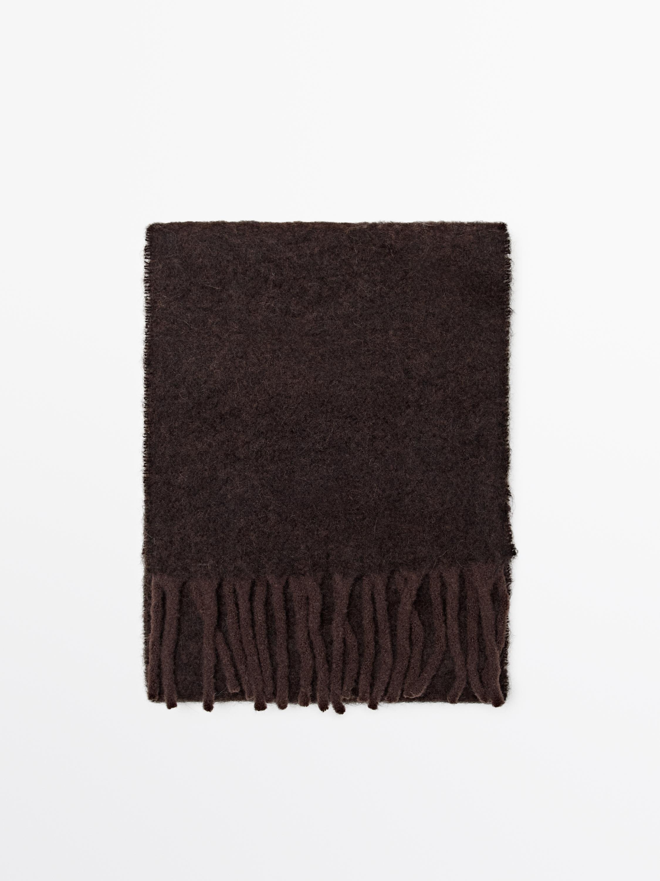 Massimo Dutti Шарф из смеси альпаки и шерсти с бахромой, коричневый