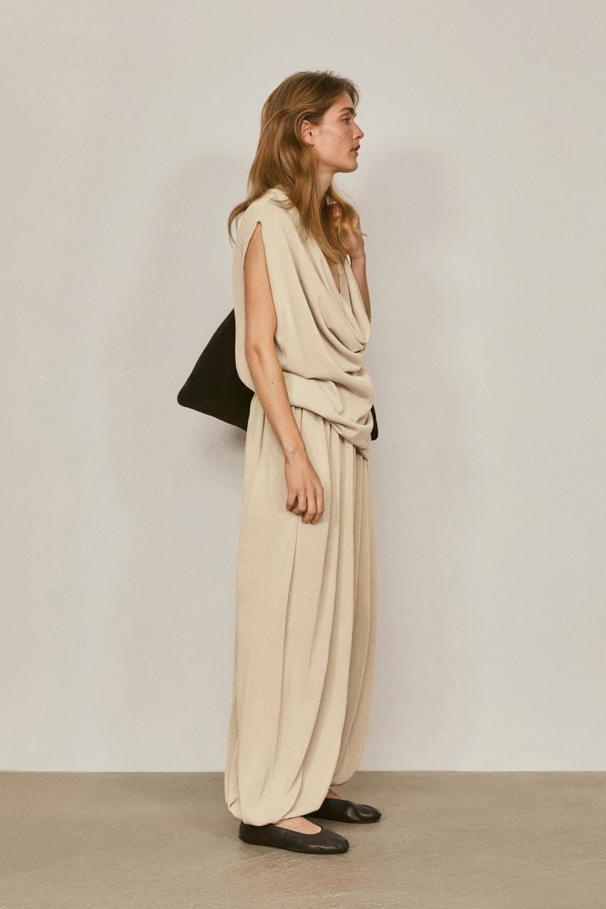 Massimo Dutti Шаровары из смесовой шелковой ткани - Limited Edition, песочный