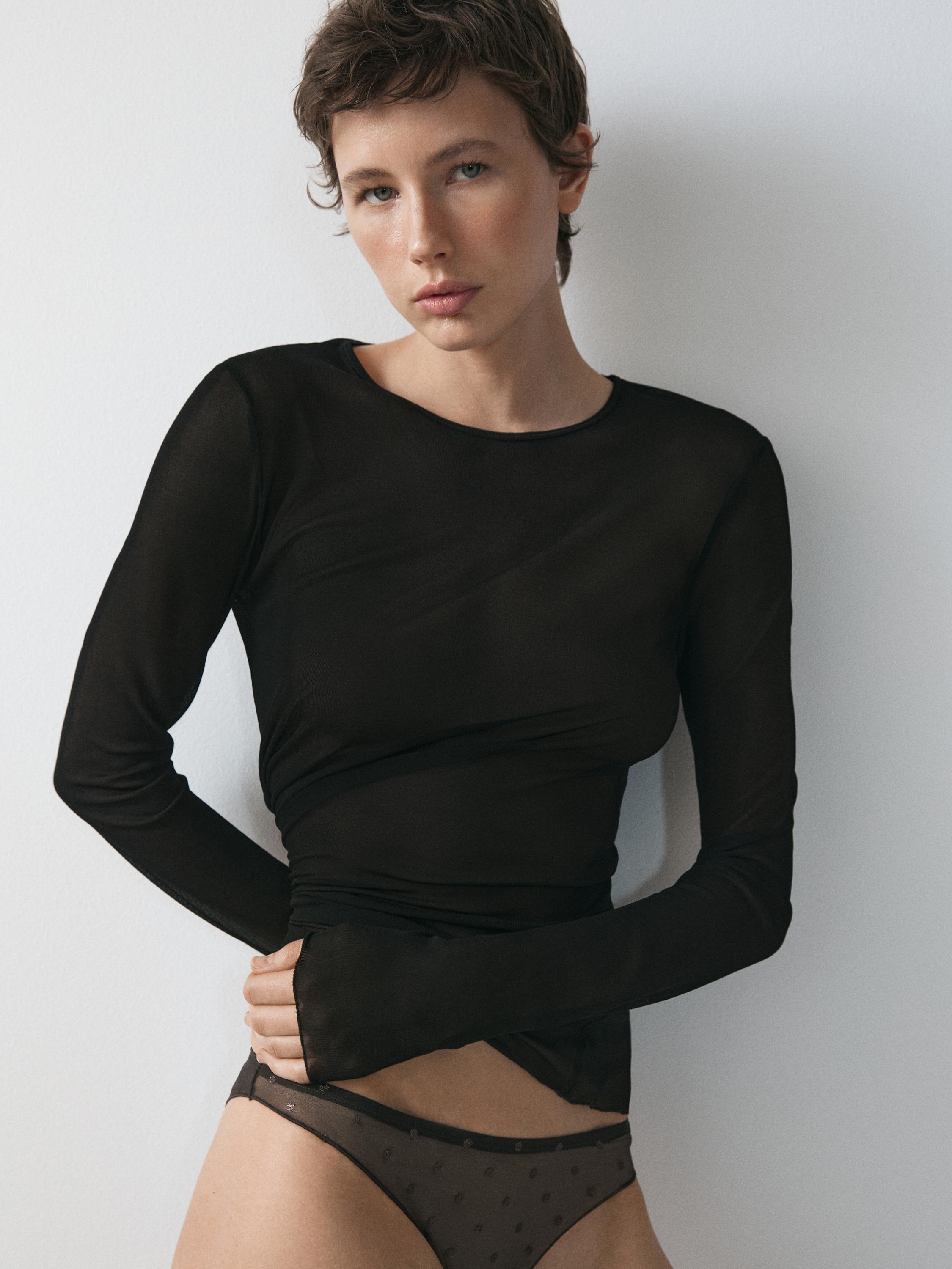 Massimo Dutti Шелковая футболка с длинными рукавами, черный