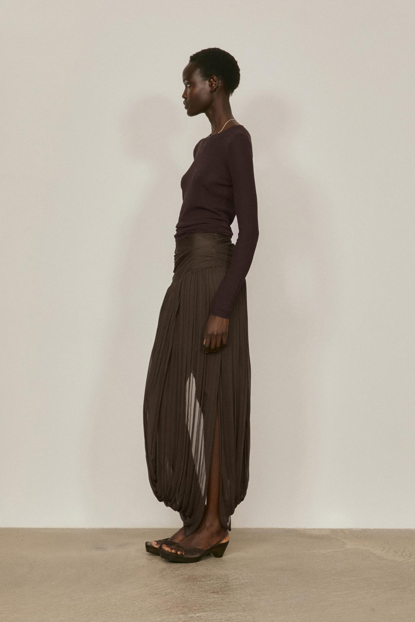 Massimo Dutti Шелковый топ с длинными рукавами - Limited Edition, коричневый