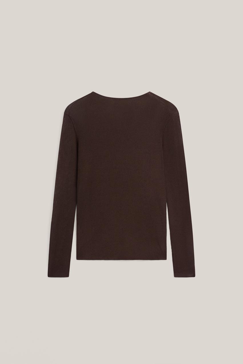 Топ из смесовой шелковой ткани. Круглый вырез. Длинные рукава. Очень тонкая, полупрозрачная ткань.