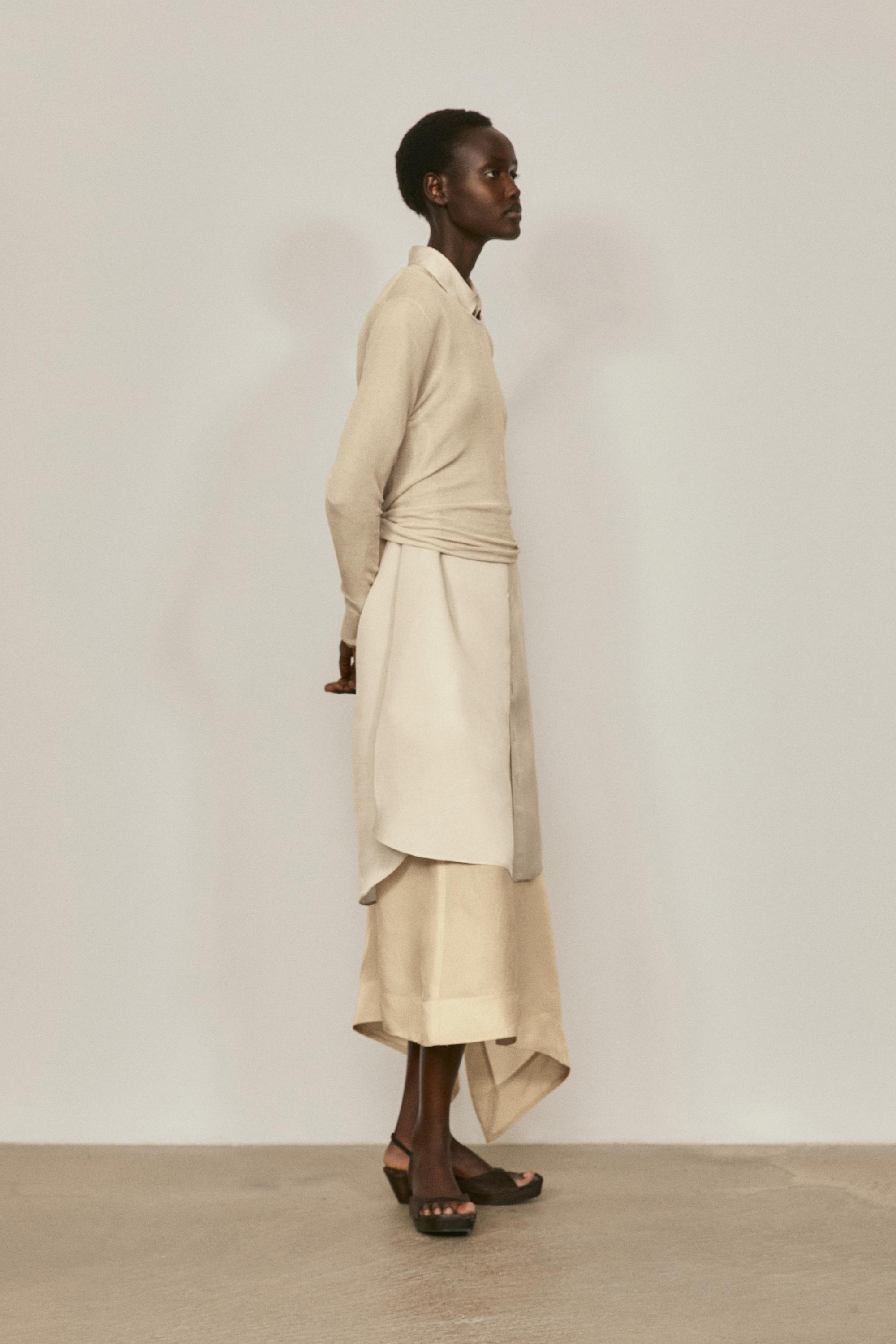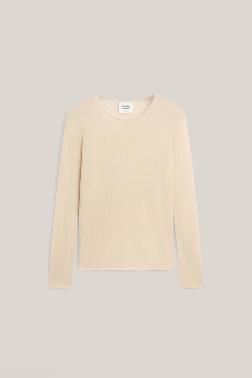 Massimo Dutti Шелковый топ с длинными рукавами - Limited Edition, светло-бежевый
