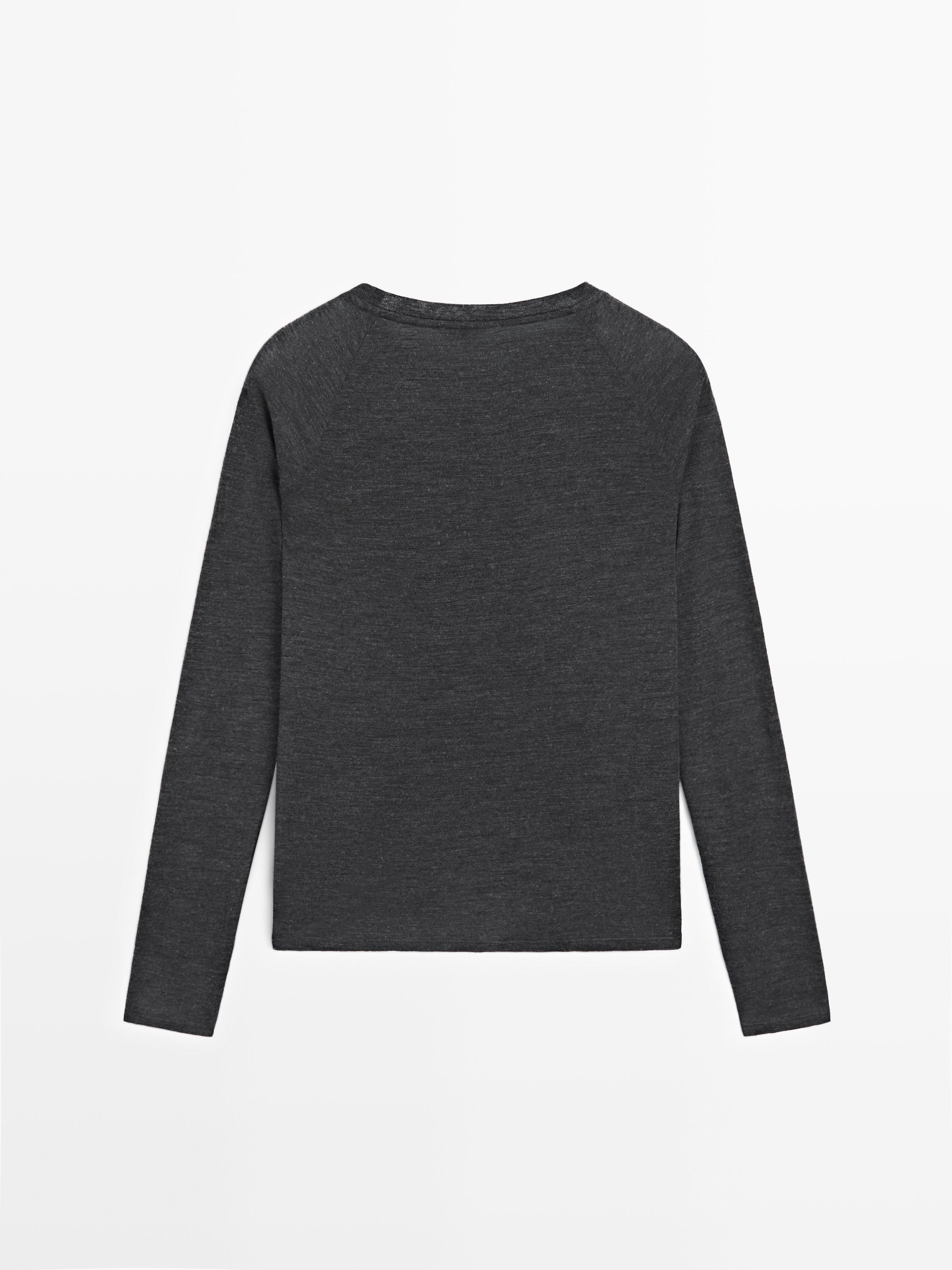 Massimo Dutti Шерстяная футболка с рукавами реглан, антрацитово-серый