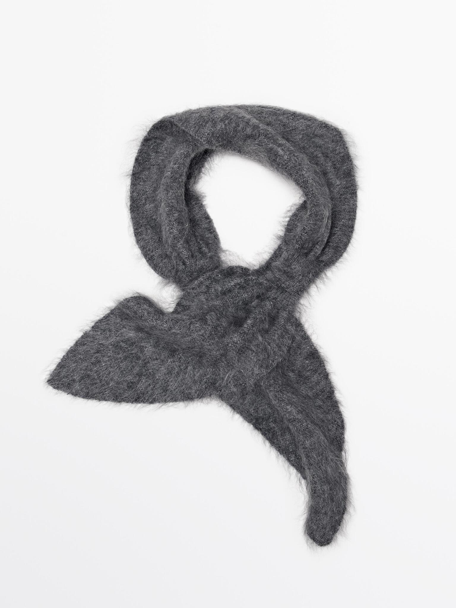 Massimo Dutti Шейный платок из 100% кашемира, завязывающийся как бант, серый