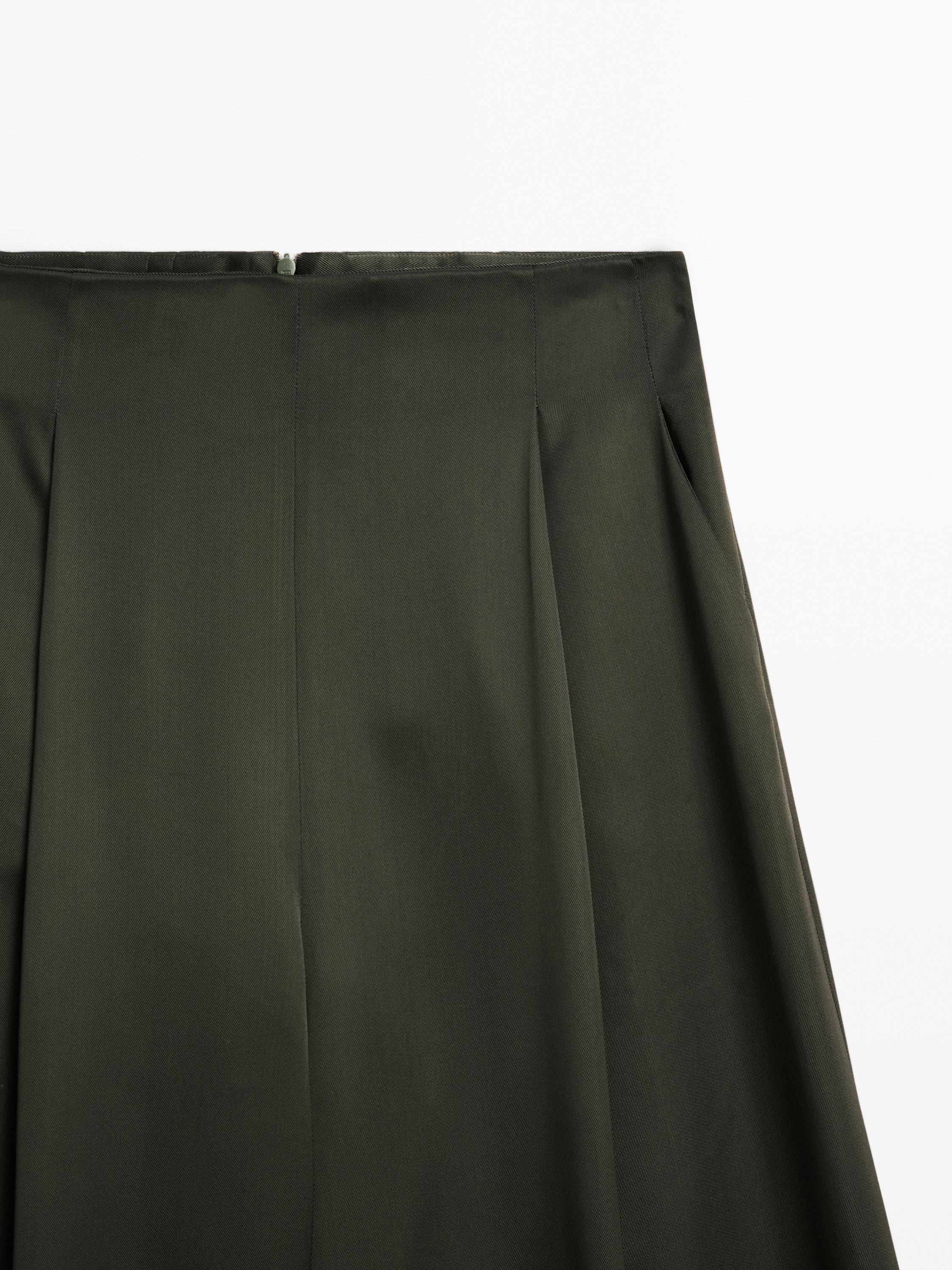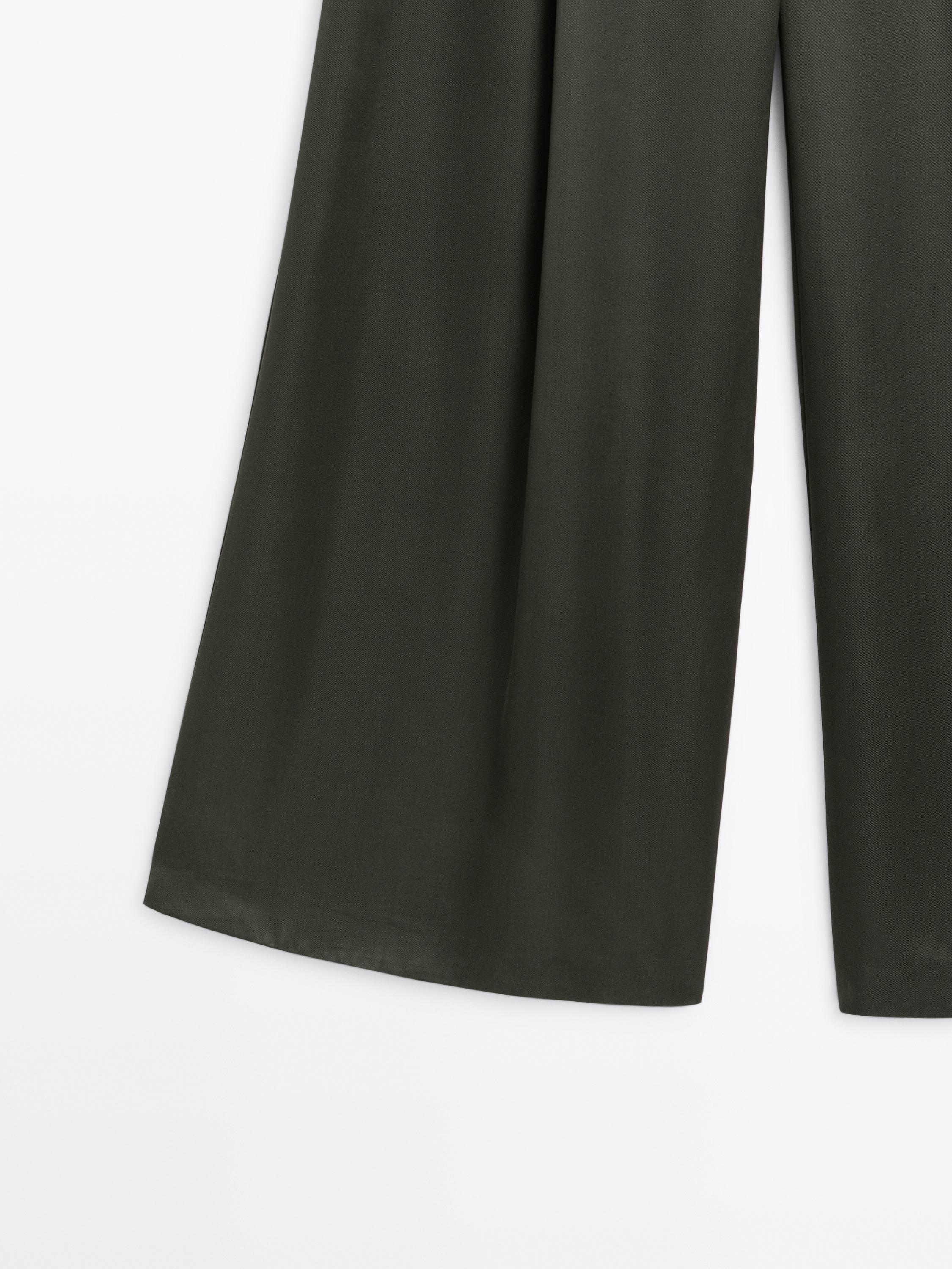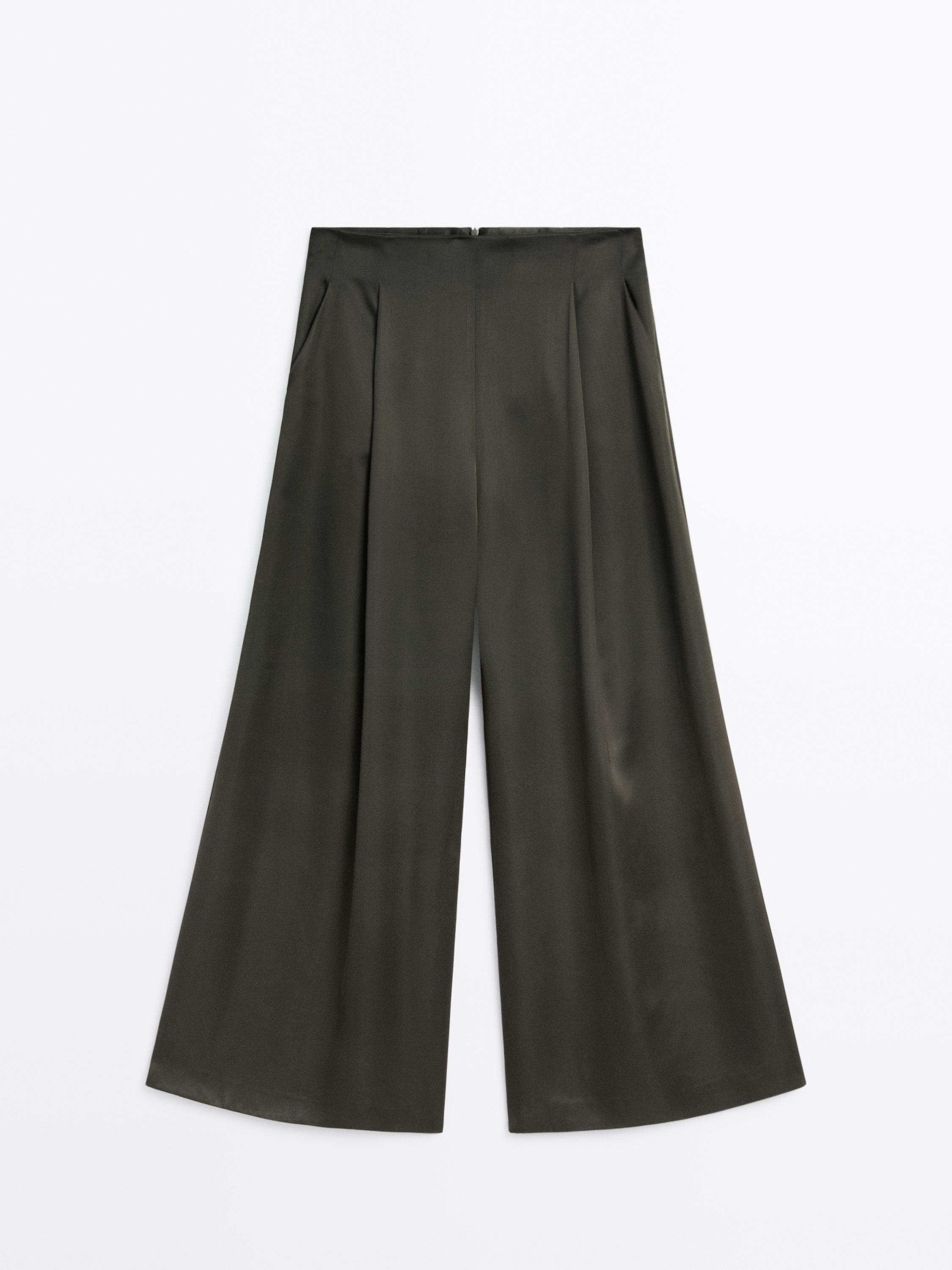 Massimo Dutti Широкие брюки из атласа - STUDIO, темно-зеленый