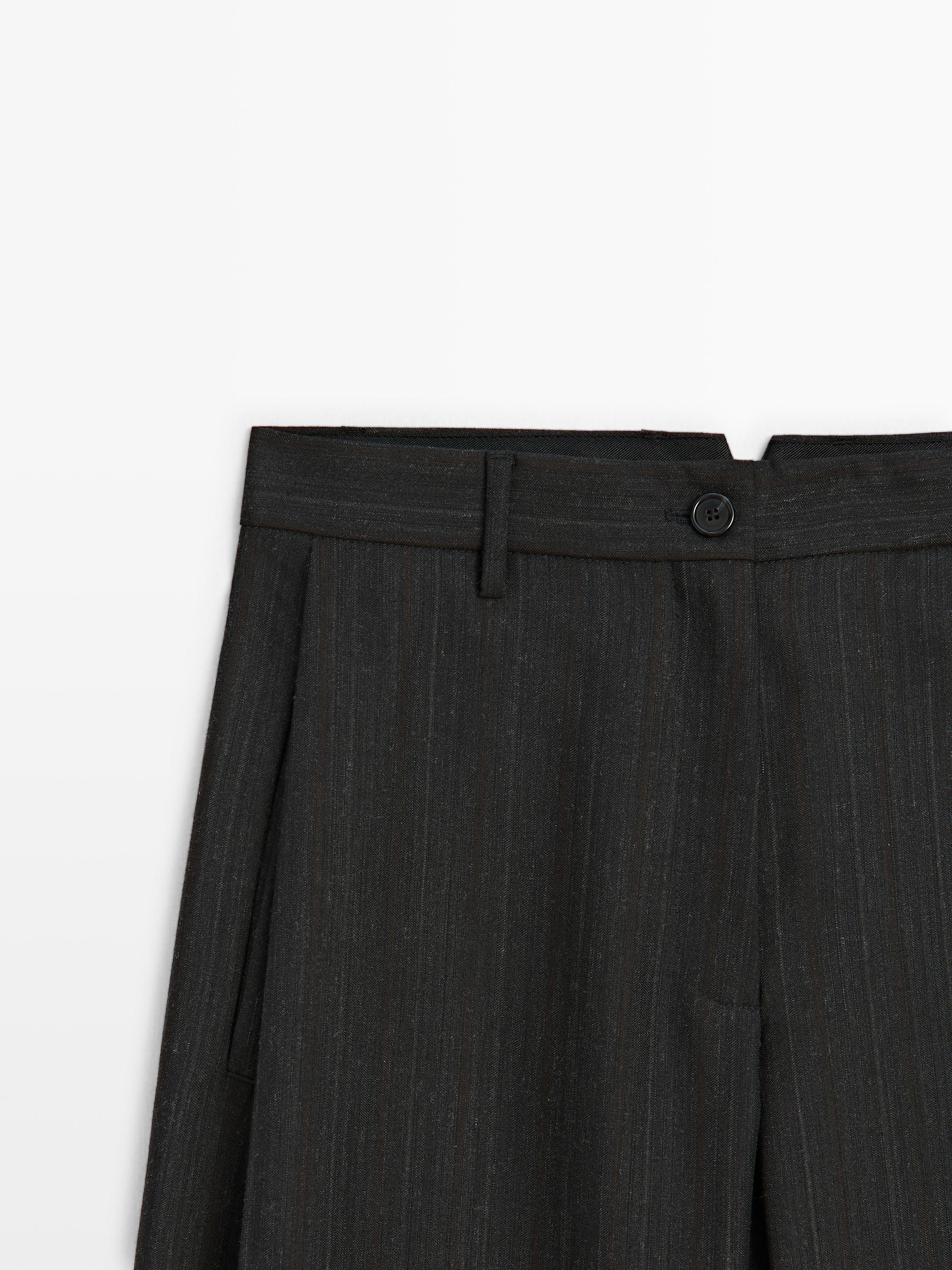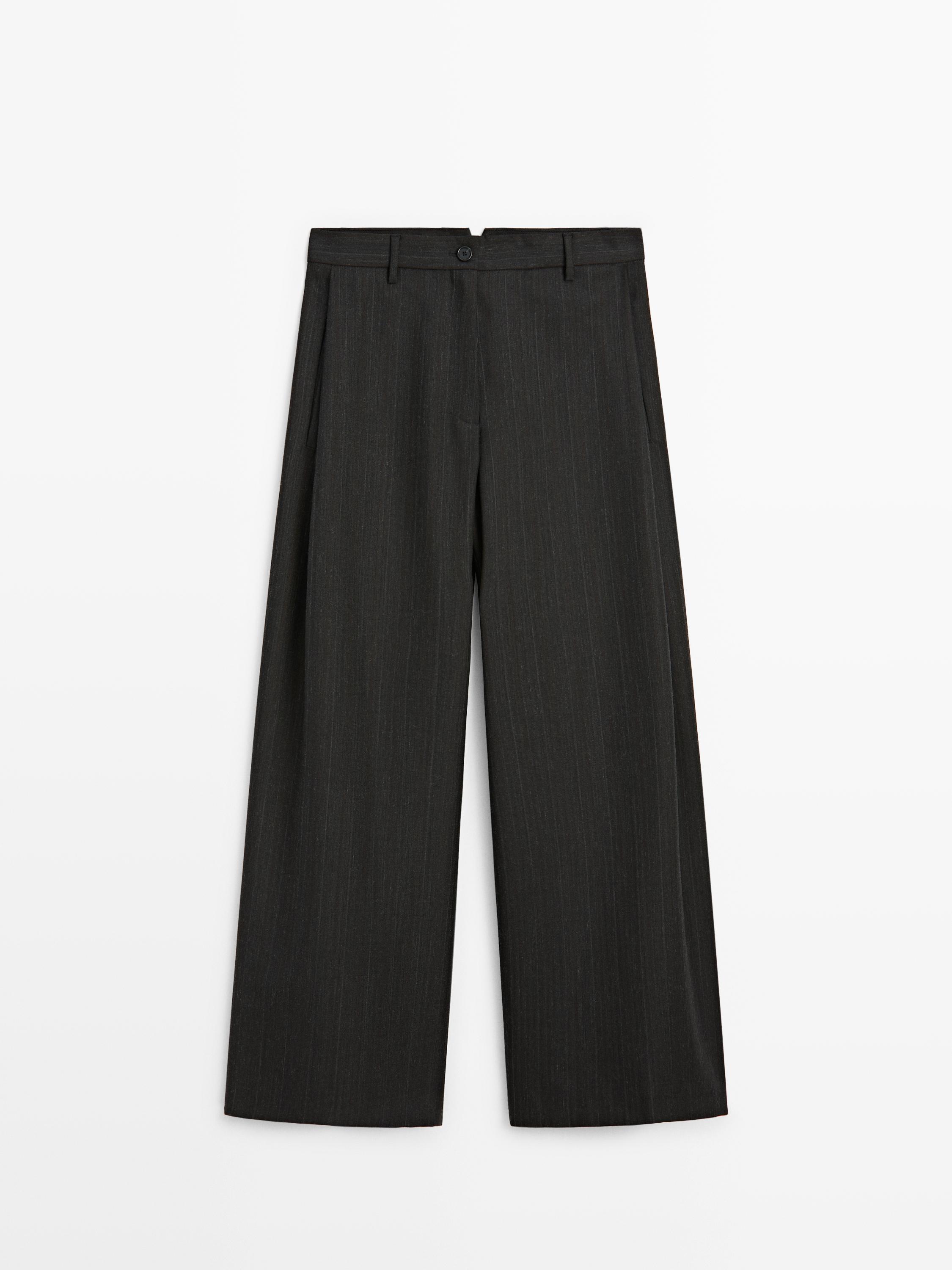 Massimo Dutti Широкие брюки из смесовой шерсти в полоску, темно-серый