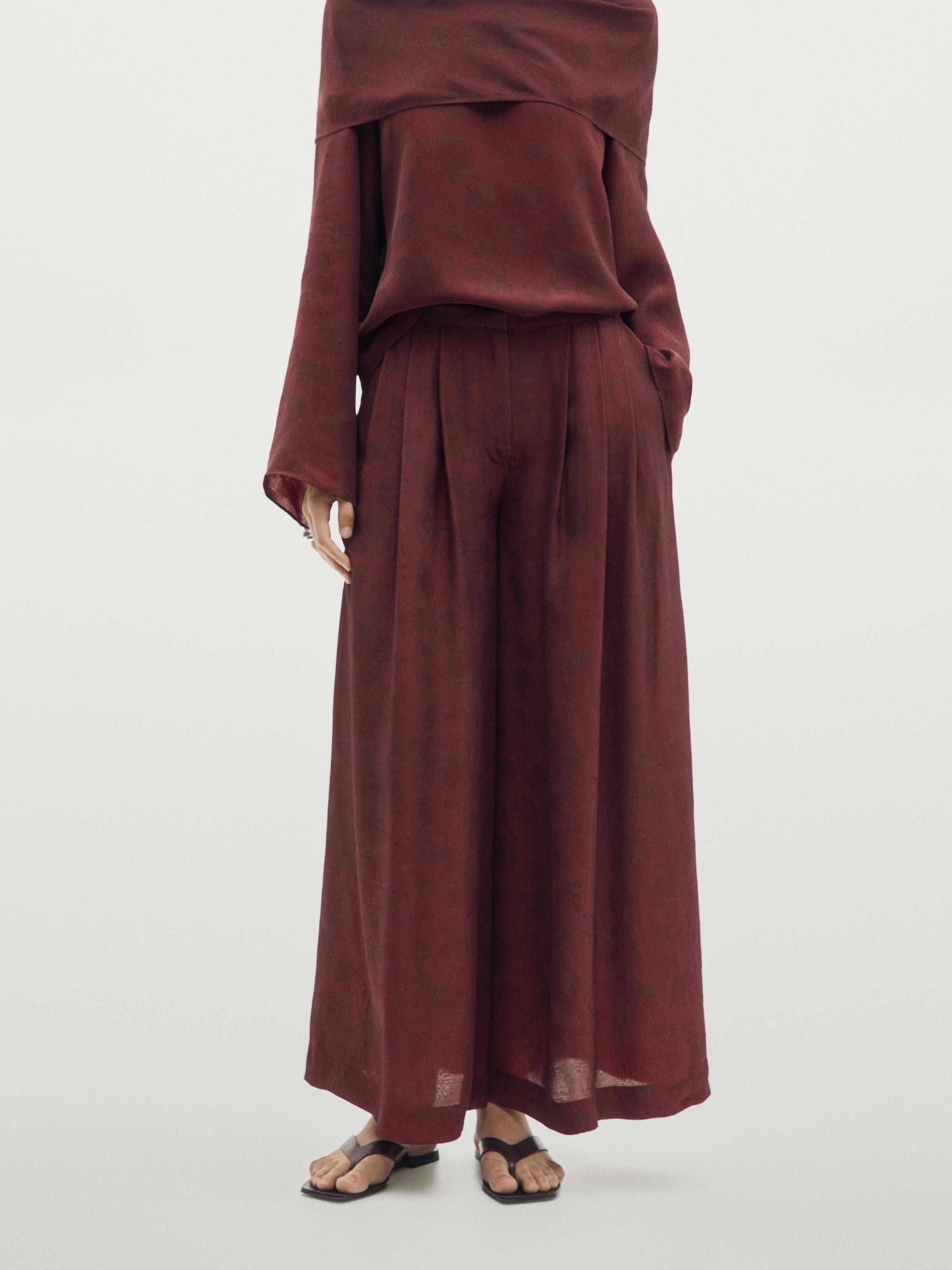 Massimo Dutti Широкие брюки с принтом и свободным кроем, цвет жженого апельсина