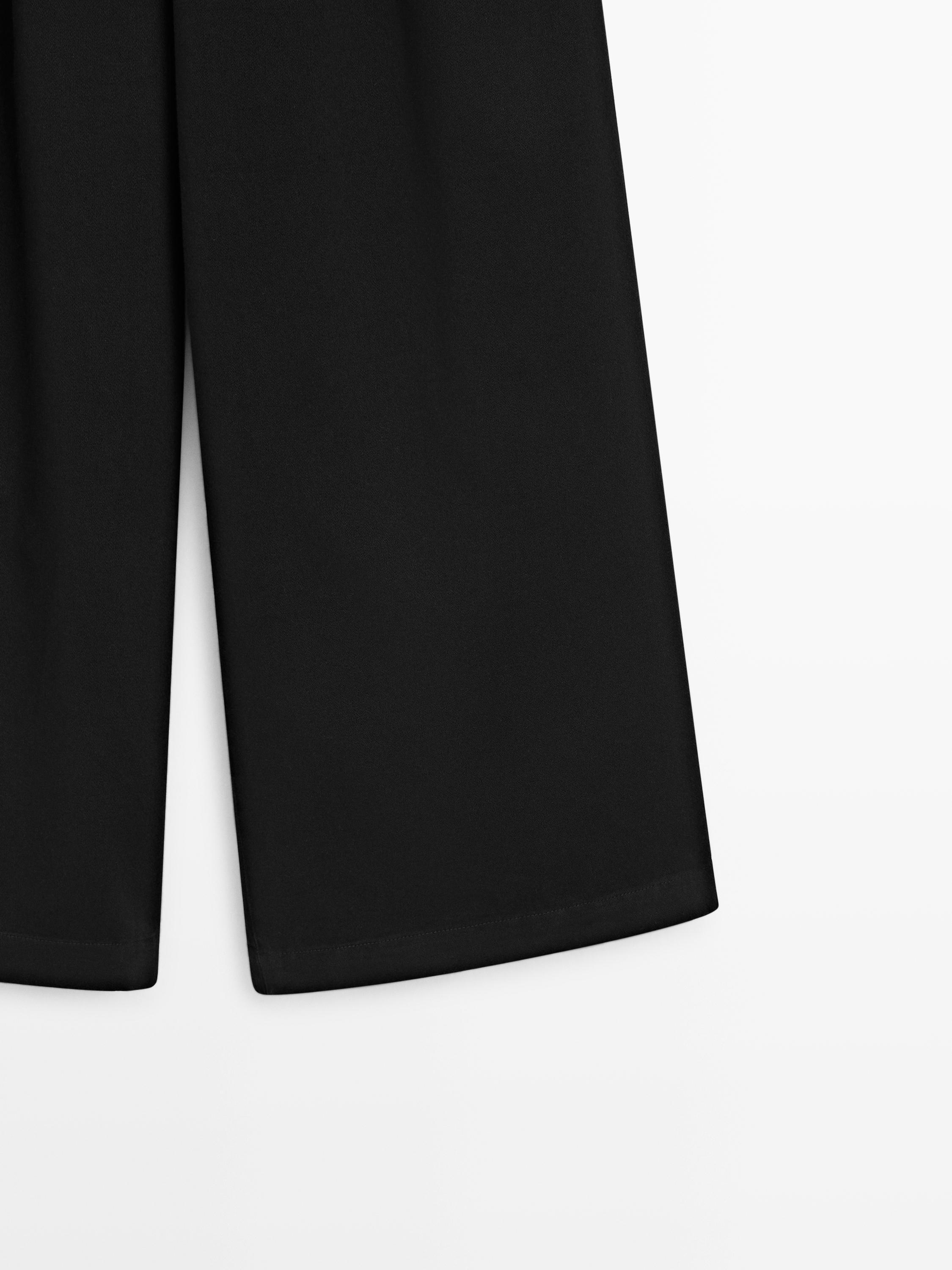 Брюки свободного кроя: этот фасон обеспечивает комфорт и свободу движений от бедра до щиколотки. Застёжка на молнию и крючок с внутренней пуговицей. Два боковых кармана. Один прорезной карман сзади. Вытачки спереди.