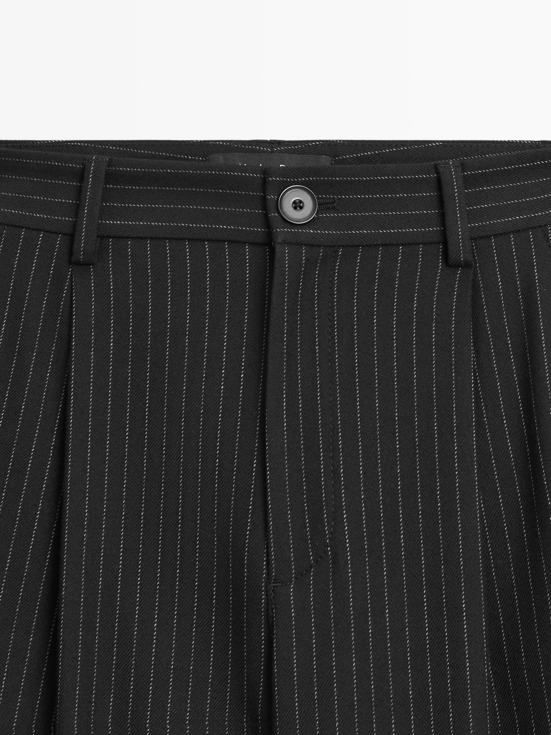 Massimo Dutti Широкие брюки в тонкую полоску, черный