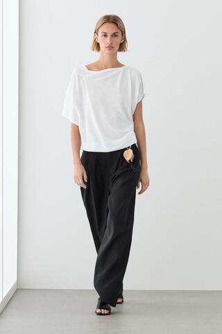 Massimo Dutti Широкие плиссированные льняные брюки, черный