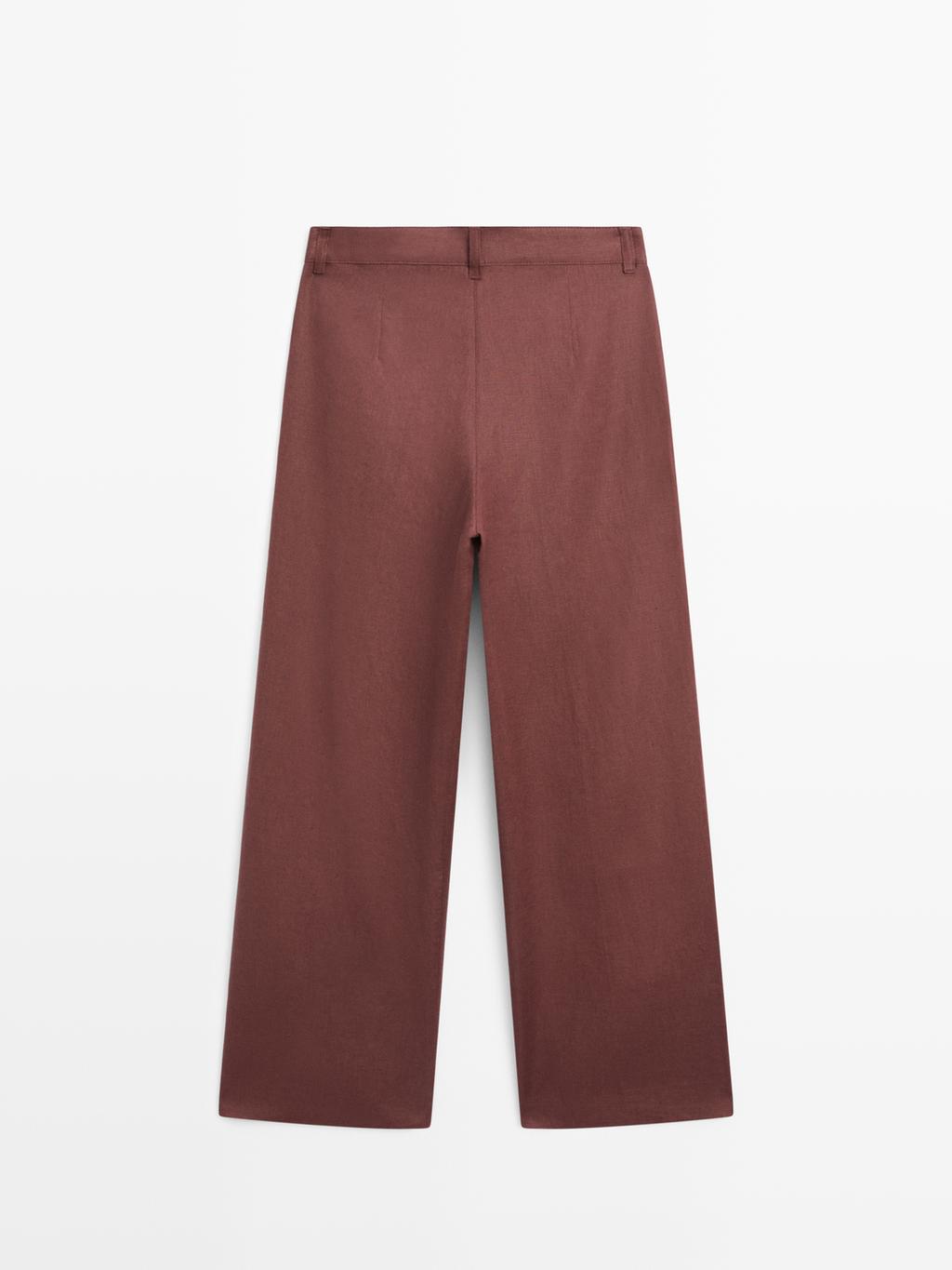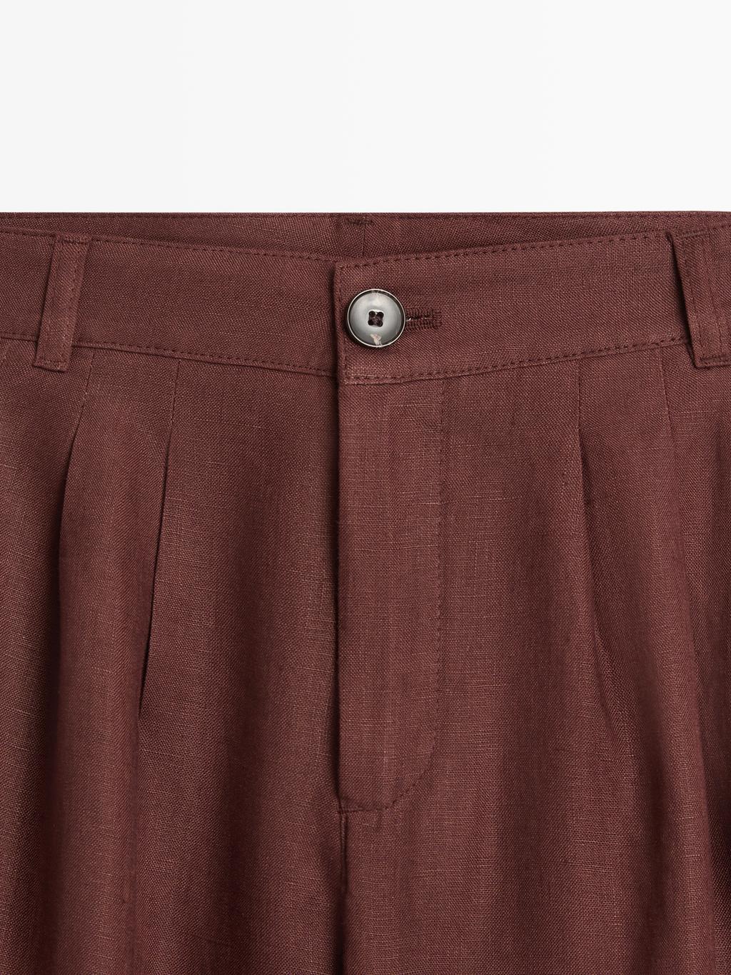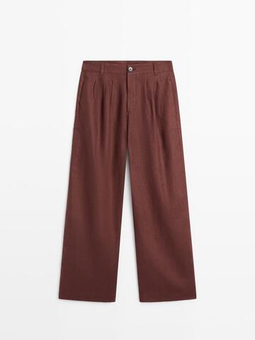 Massimo Dutti Широкие плиссированные льняные брюки, терракотовый