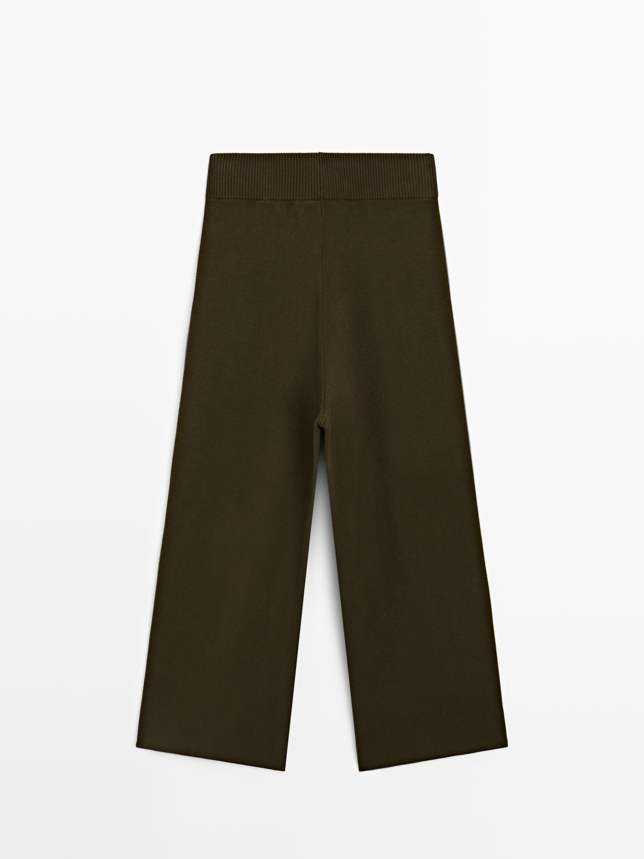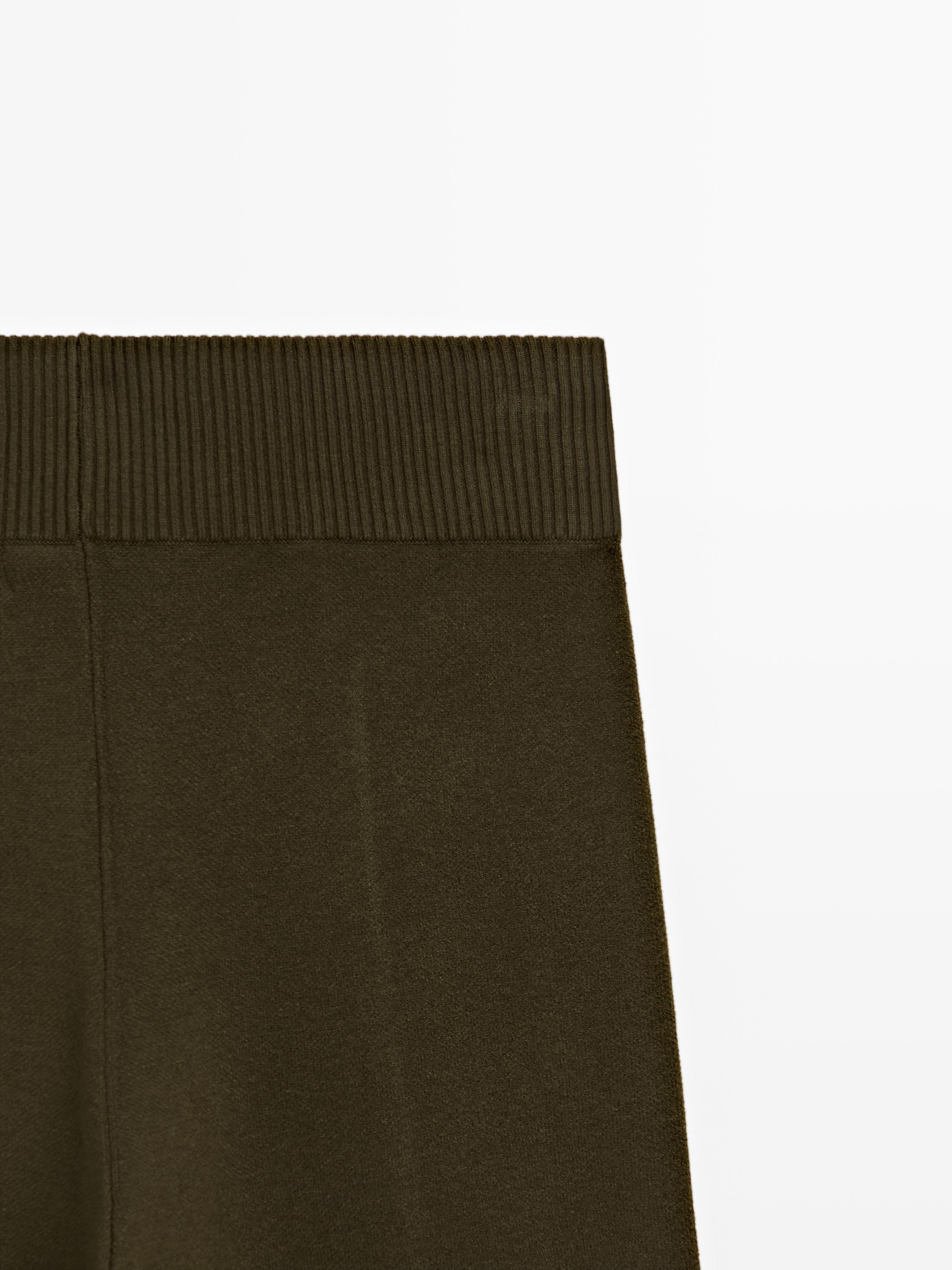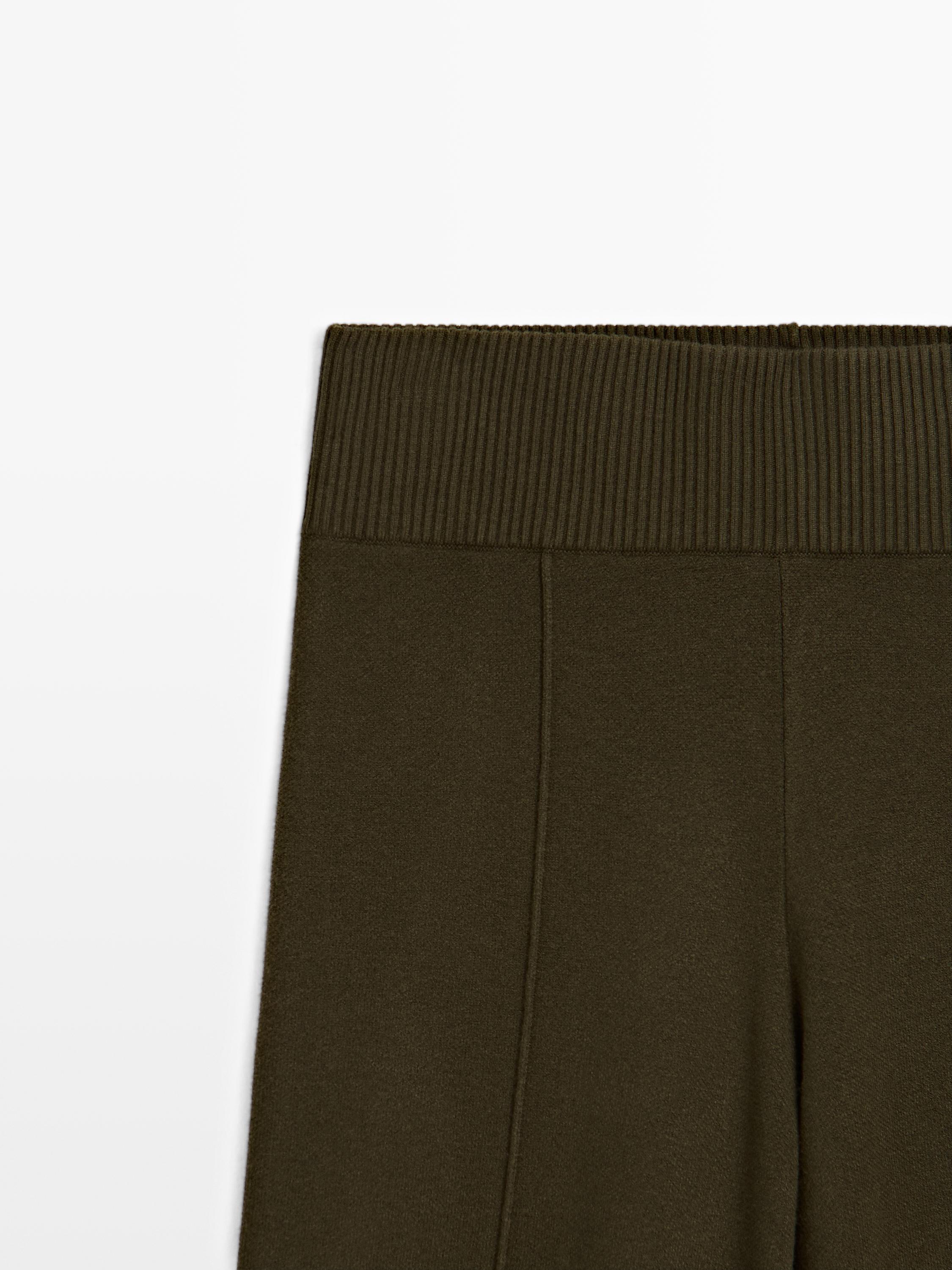 Massimo Dutti Широкие трикотажные брюки с декоративными швами, оливковый