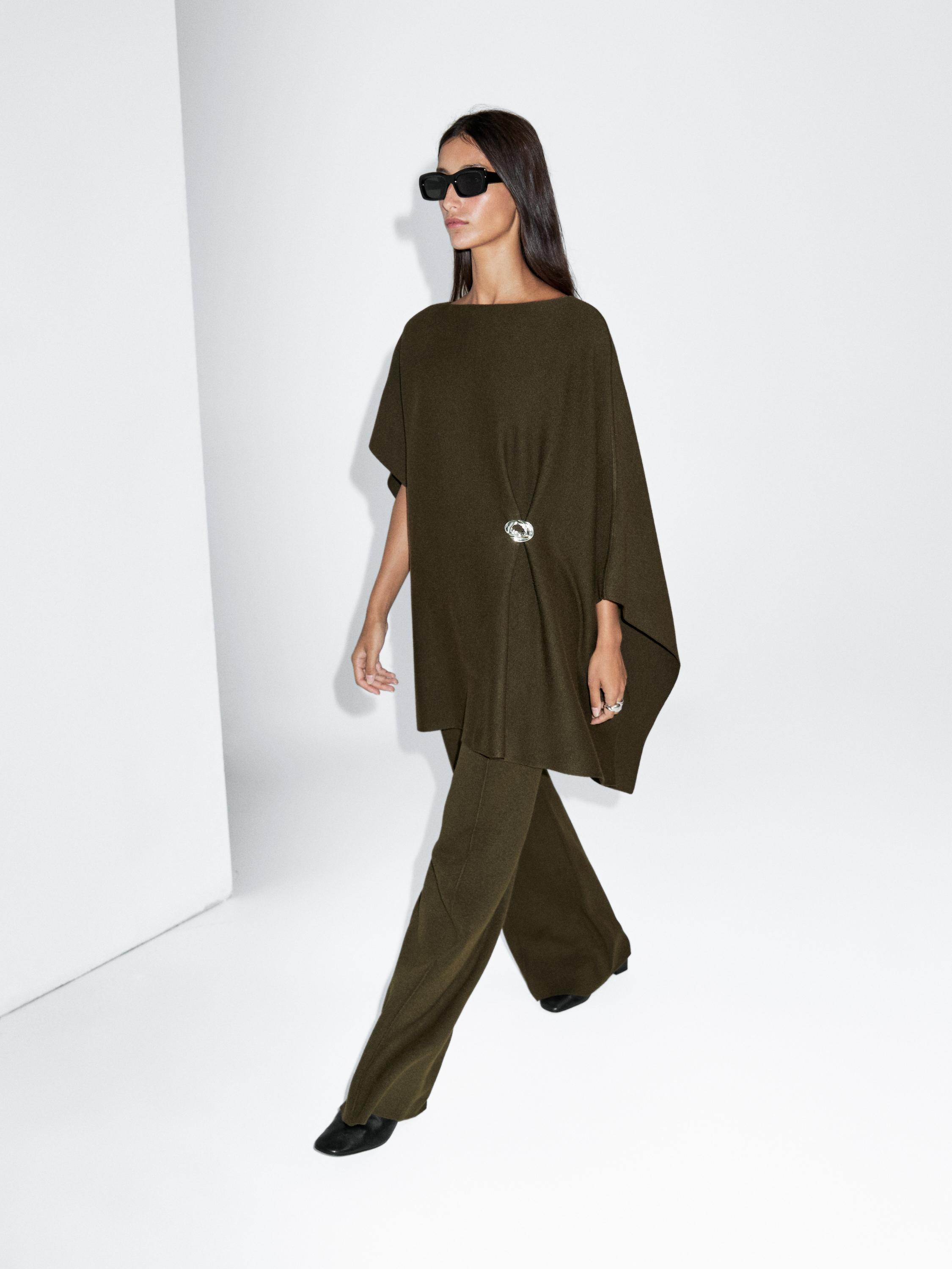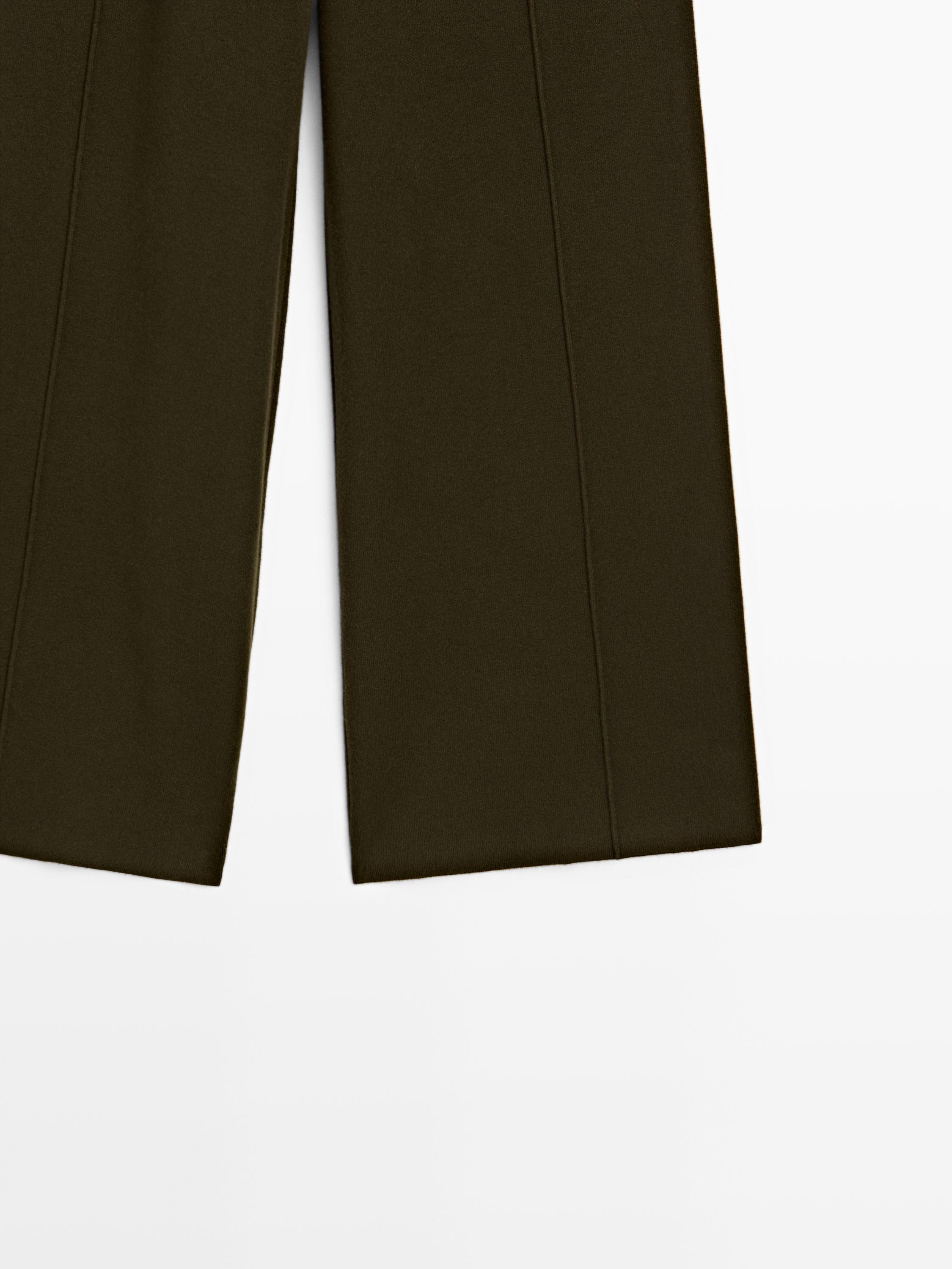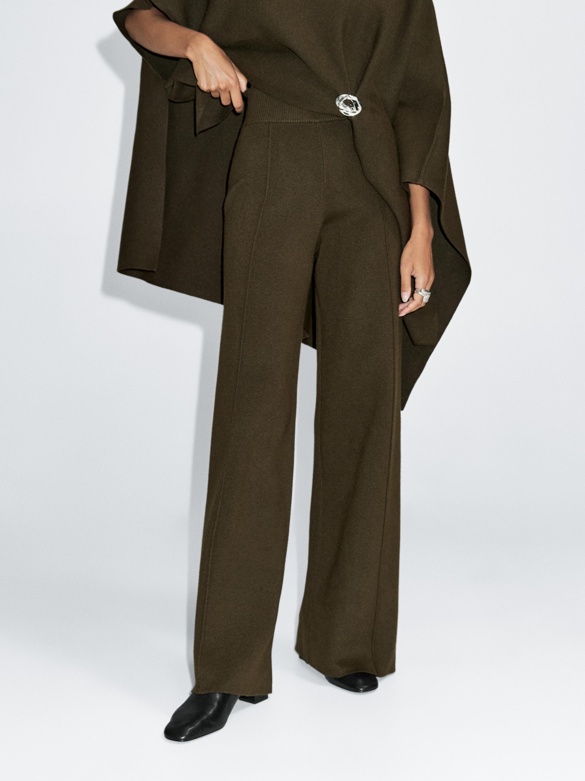 Massimo Dutti Широкие трикотажные брюки с декоративными швами, оливковый
