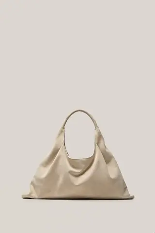 Massimo Dutti Средняя сумка-шоппер из натуральной кожи - Limited Edition, белый