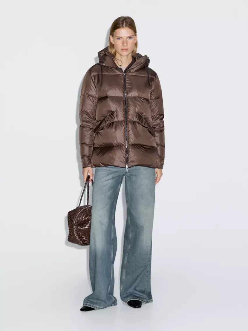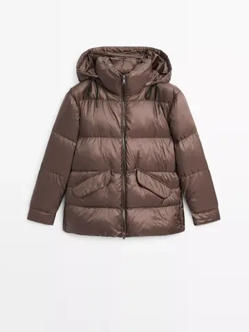Massimo Dutti Стеганая куртка с водоотталкивающей пропиткой, коричневый