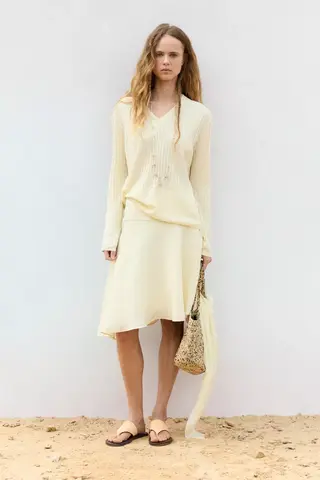 Massimo Dutti Струящаяся асимметричная юбка миди, золотой