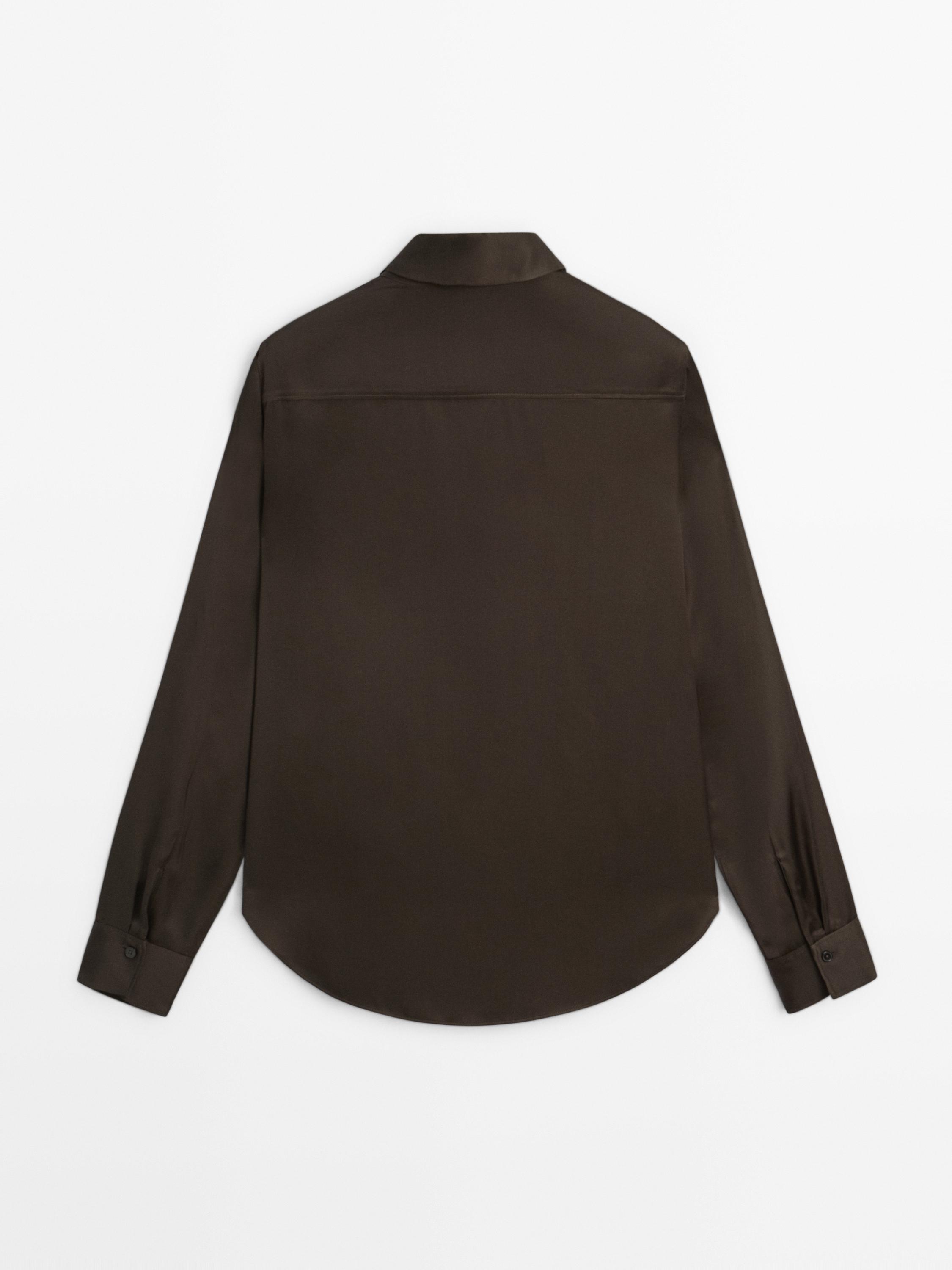 Massimo Dutti Струящаяся атласная рубашка, коричневый