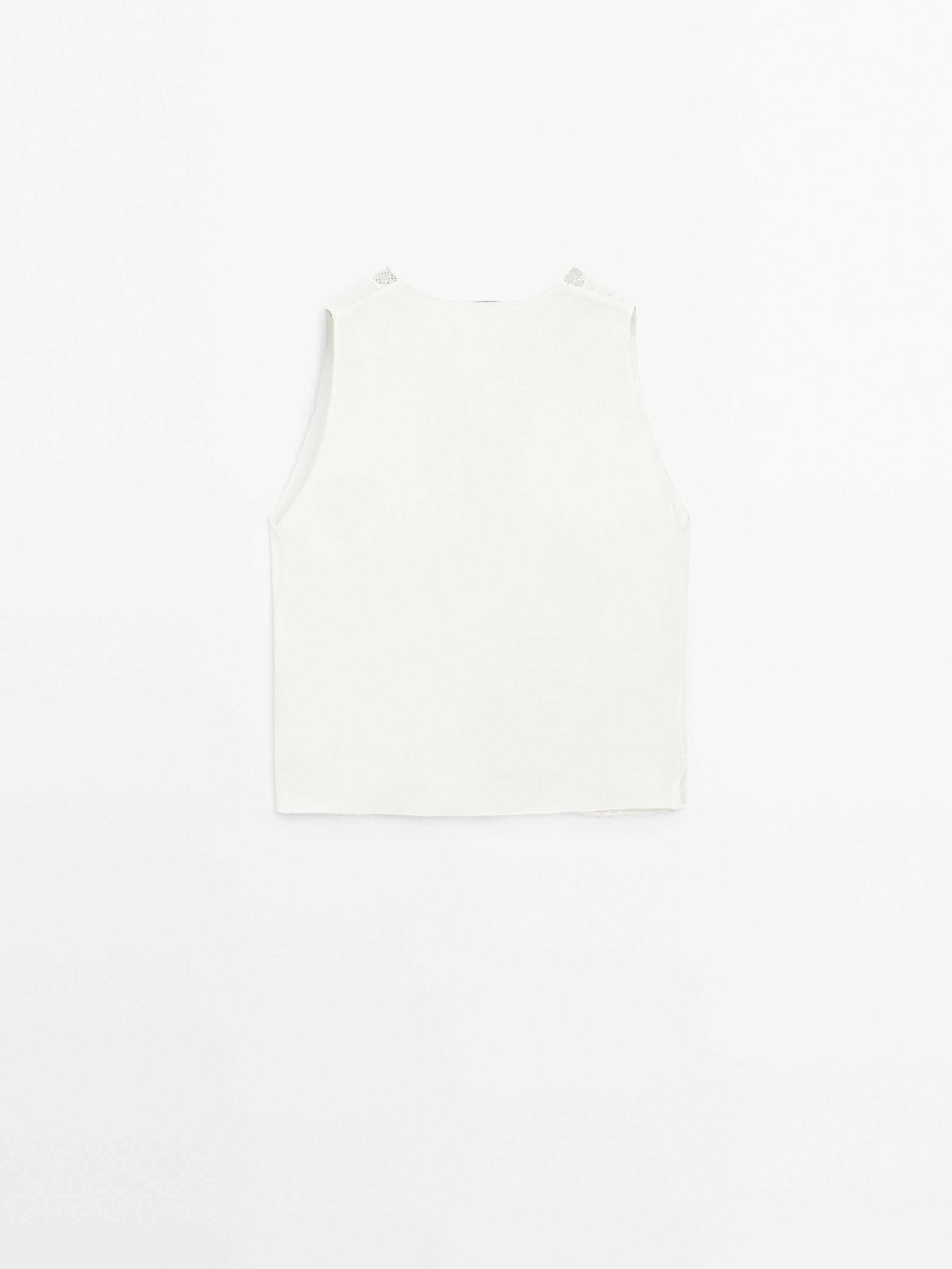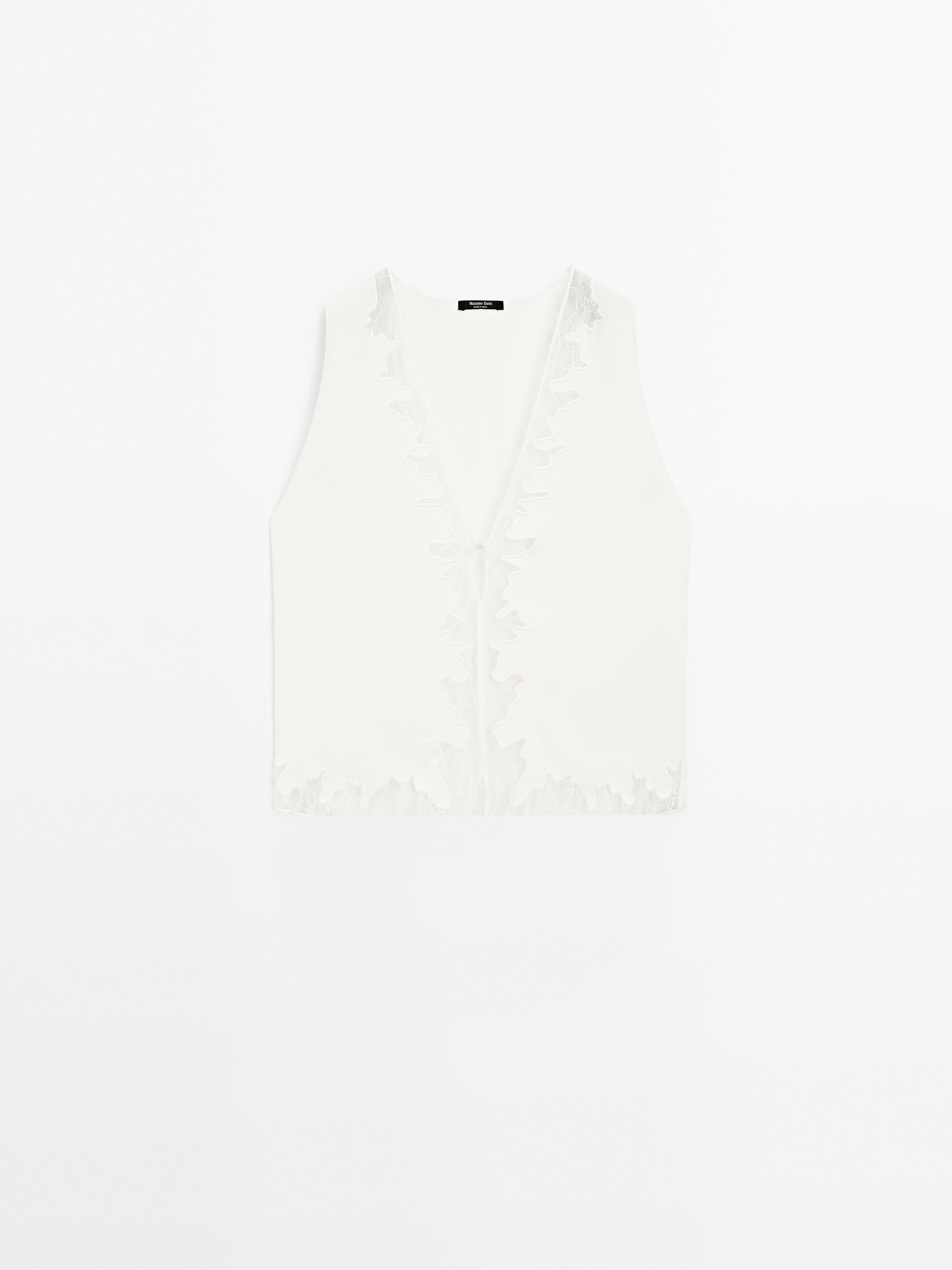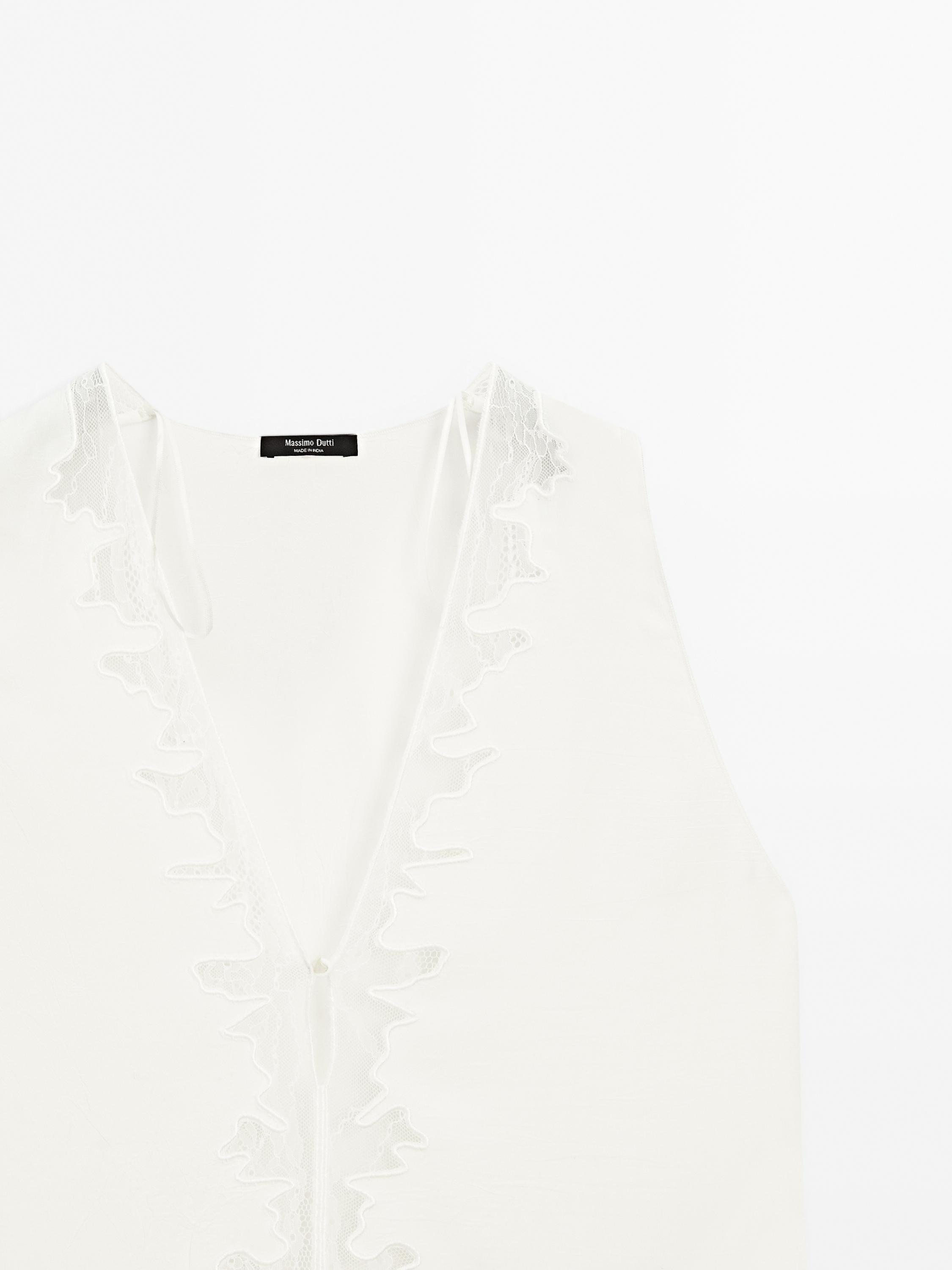 Massimo Dutti Струящаяся блузка с кружевной отделкой, натуральный