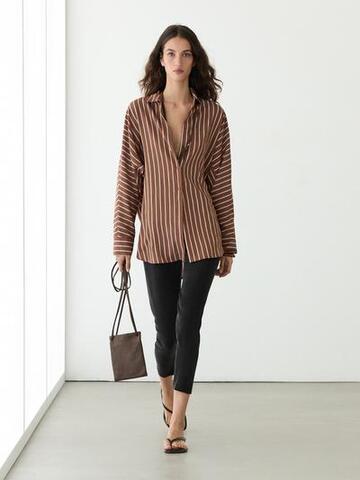 Massimo Dutti Струящаяся рубашка в полоску с рукавами «летучая мышь», пестро-коричневый