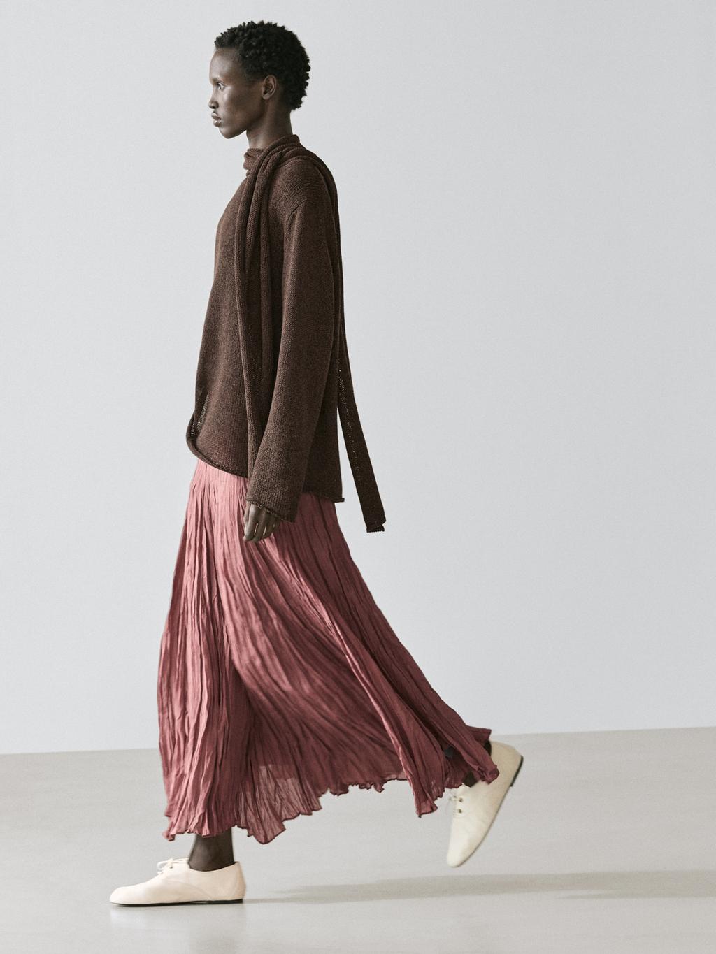 Massimo Dutti Струящаяся юбка-годе миди, бледно-розовый