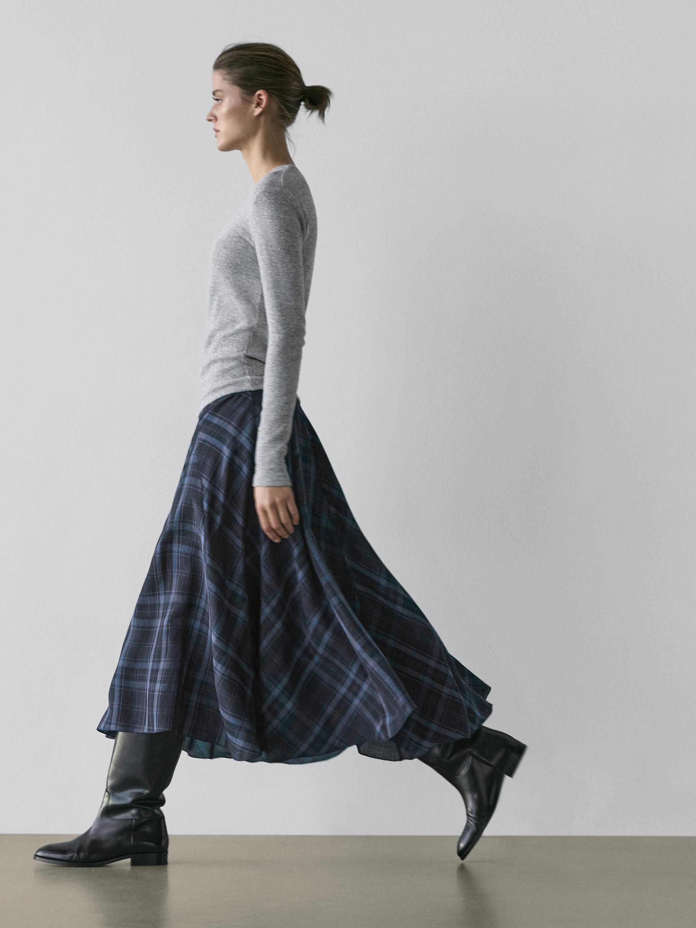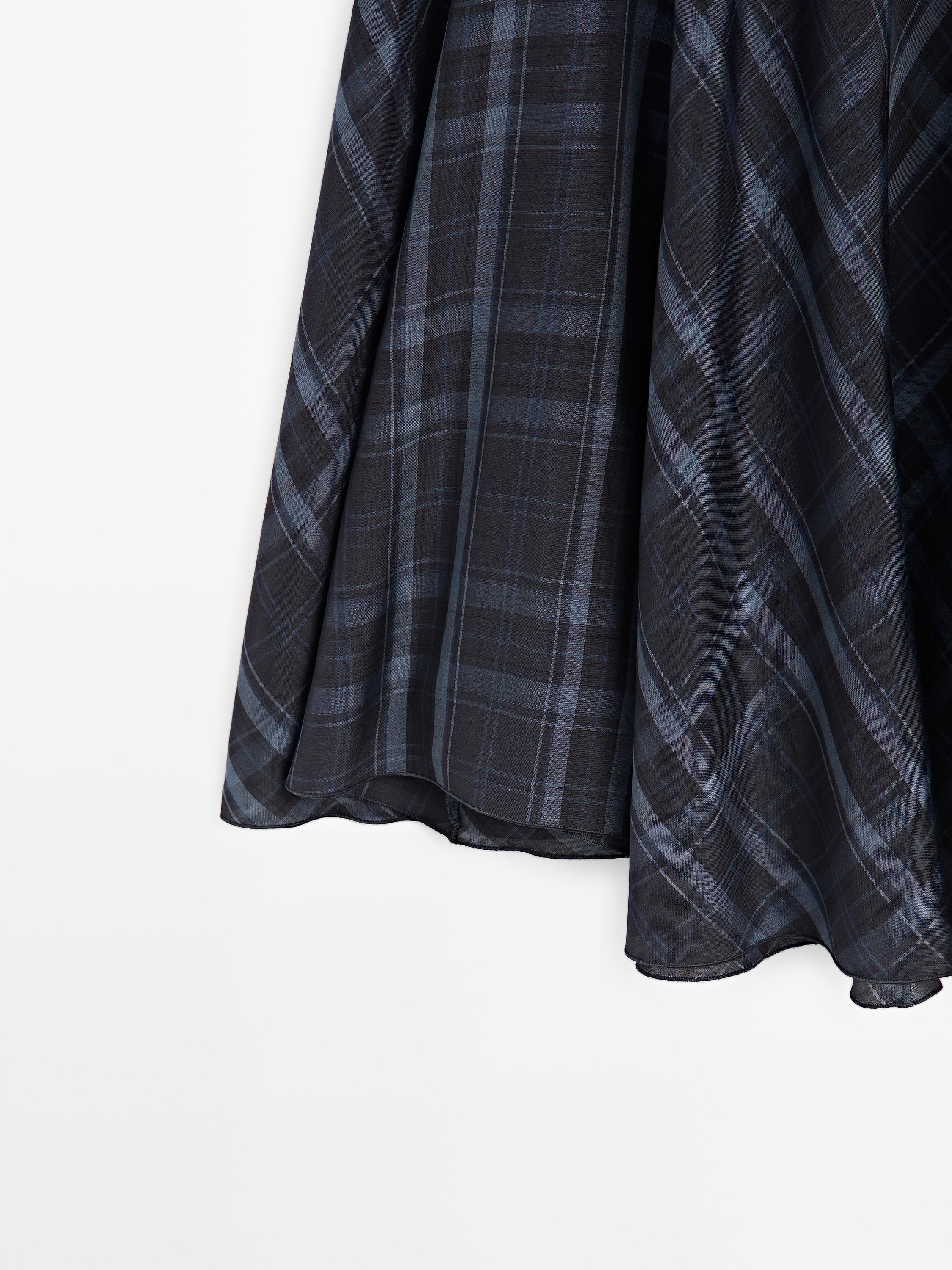 Massimo Dutti Струящаяся юбка-годе с клетчатым принтом, синий