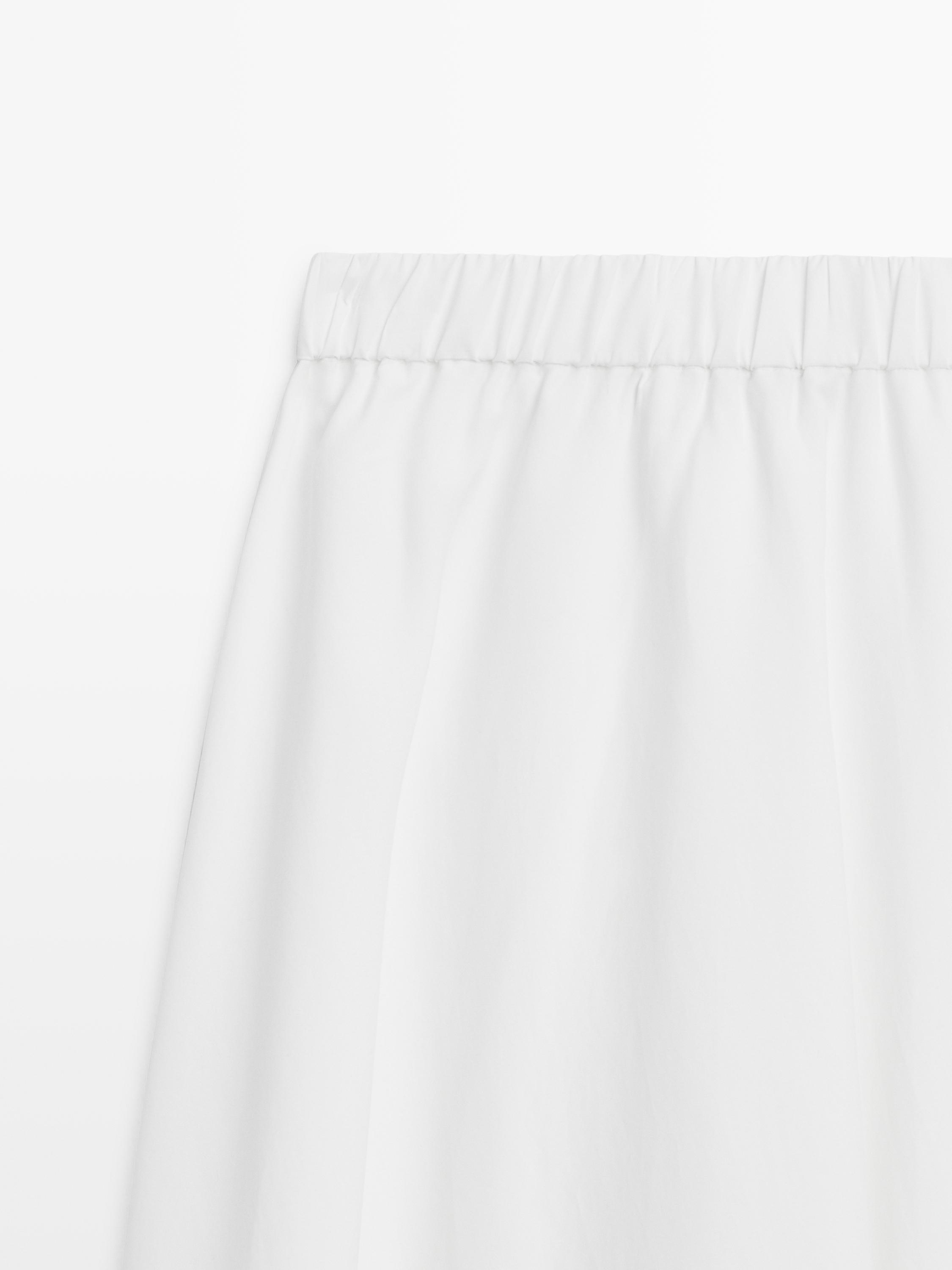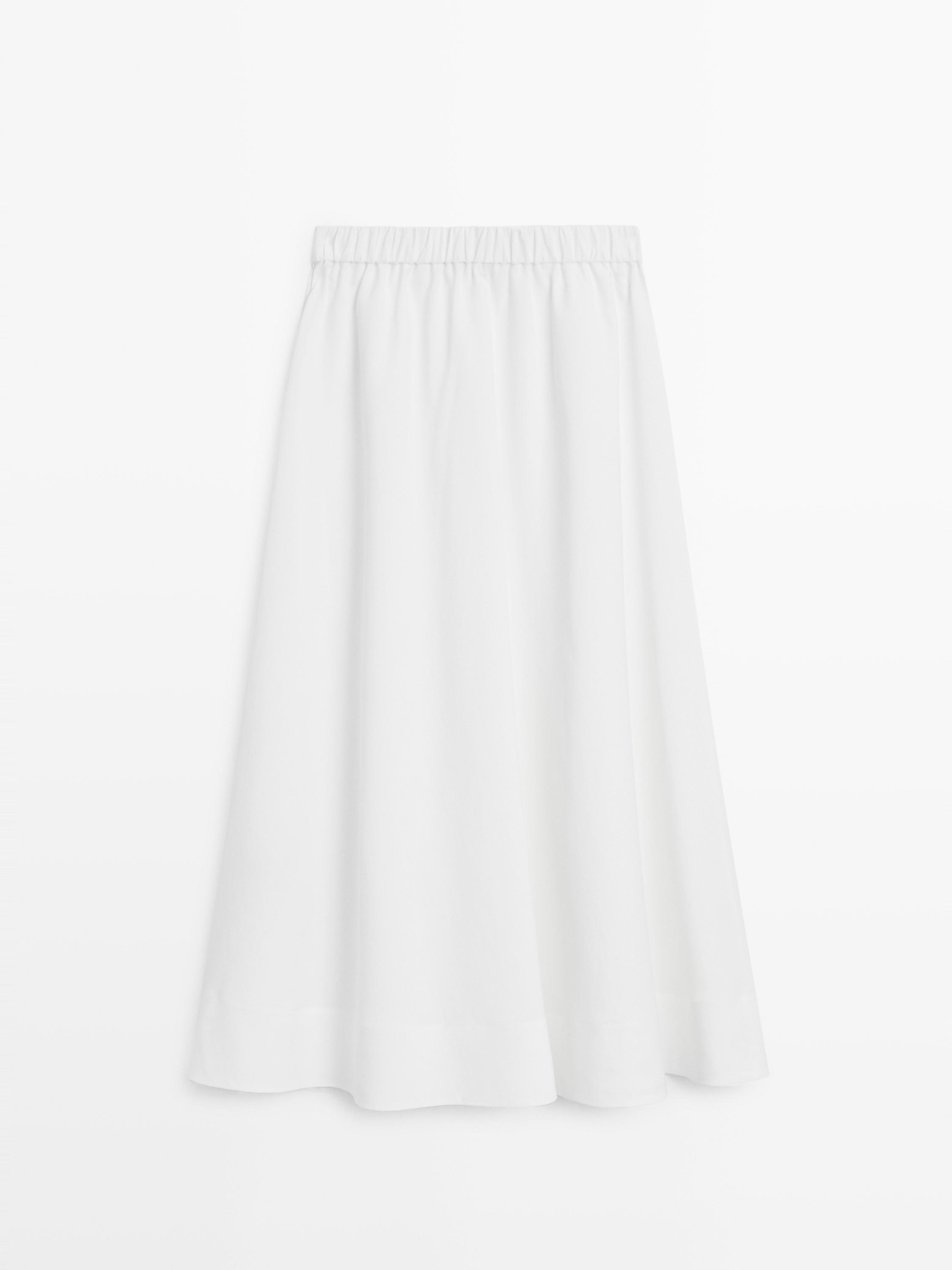 Massimo Dutti Струящаяся юбка миди с эластичной вставкой, белый