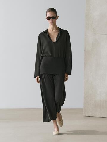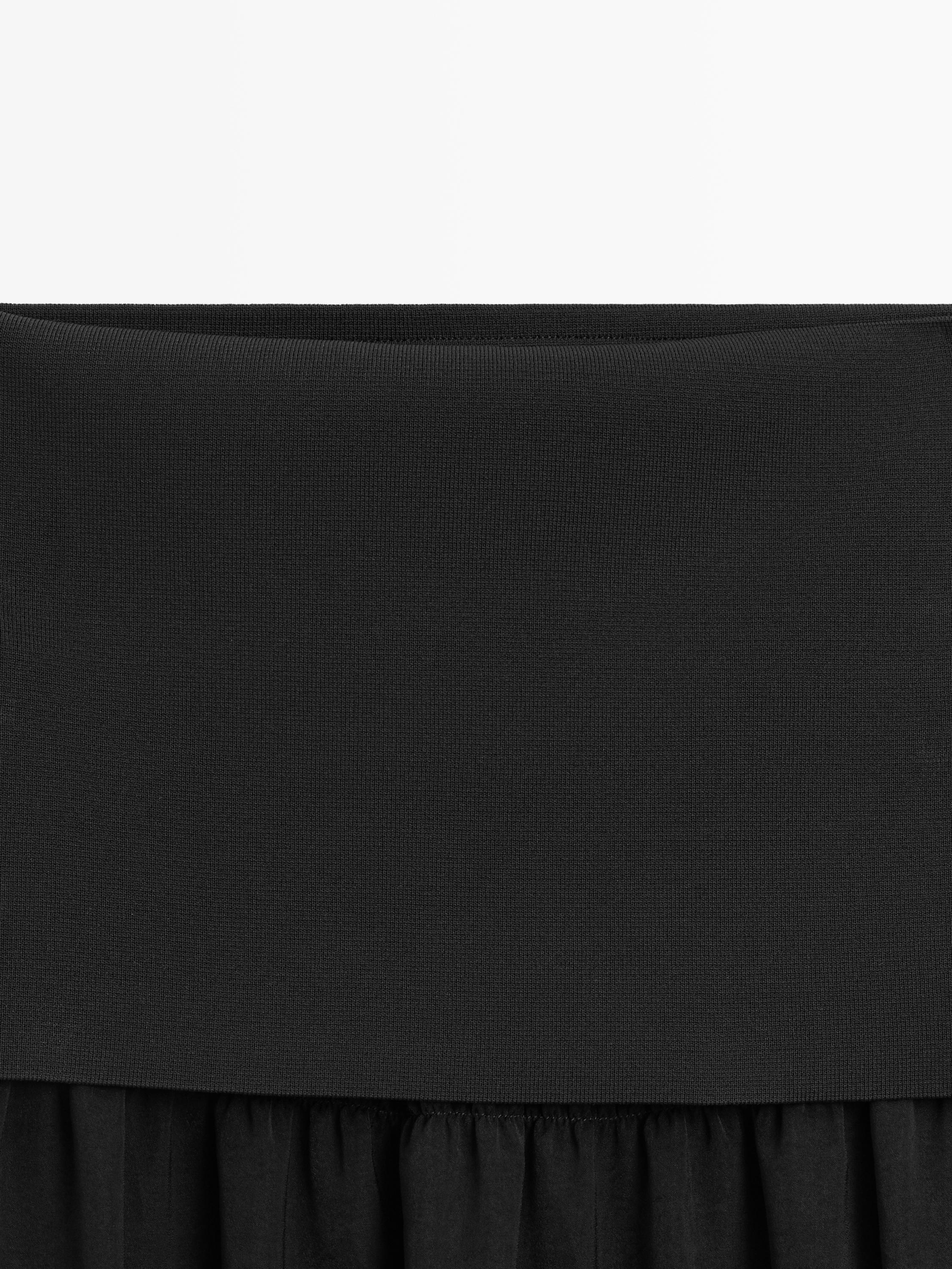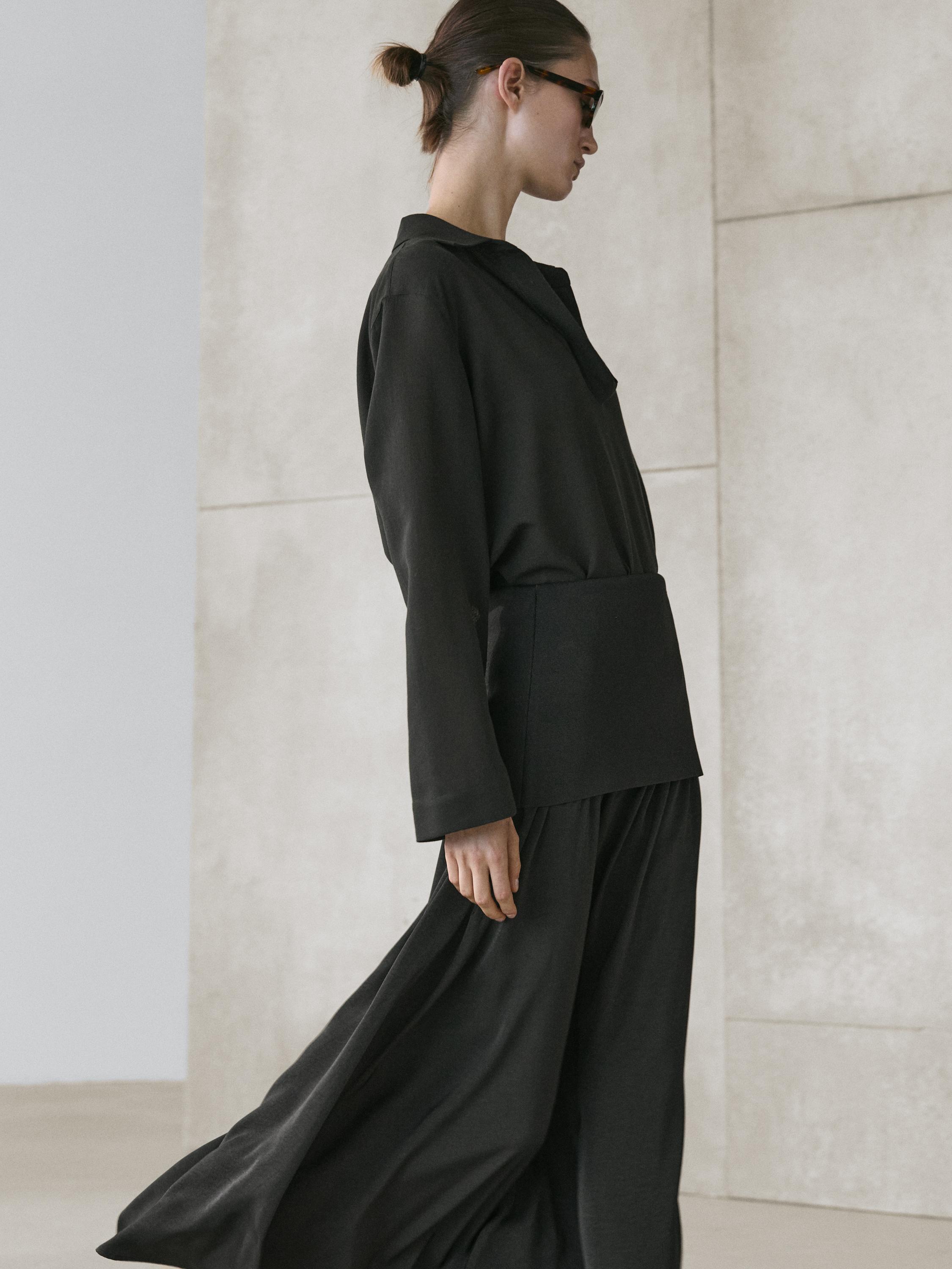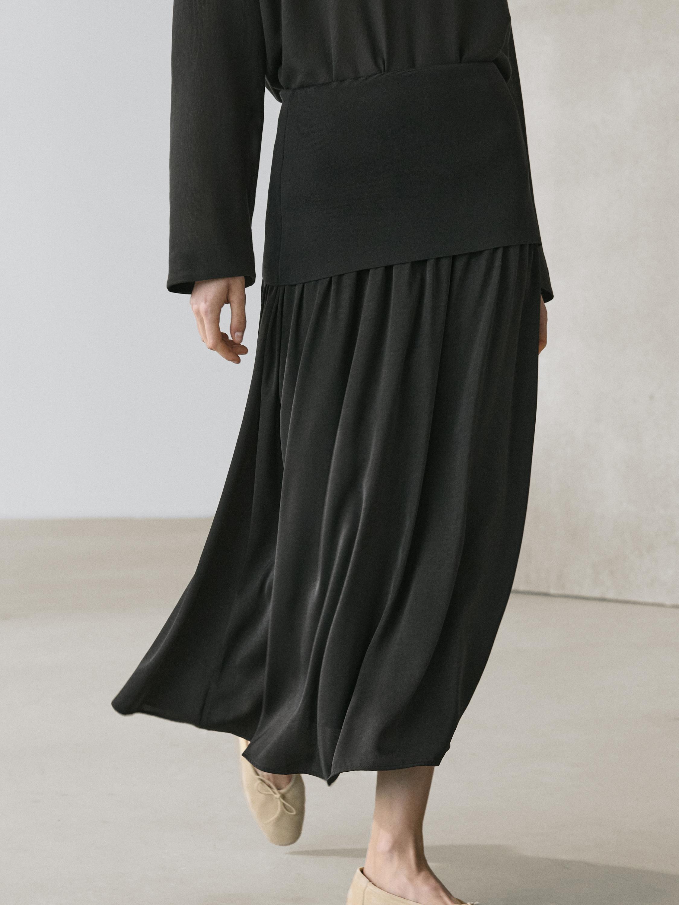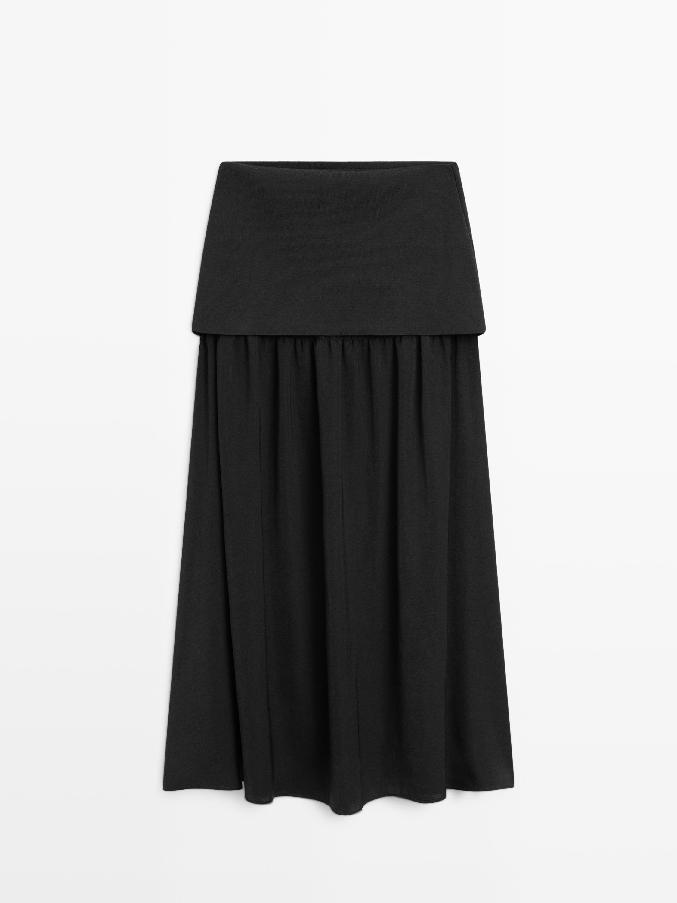 Massimo Dutti Струящаяся юбка миди с контрастными деталями, черный