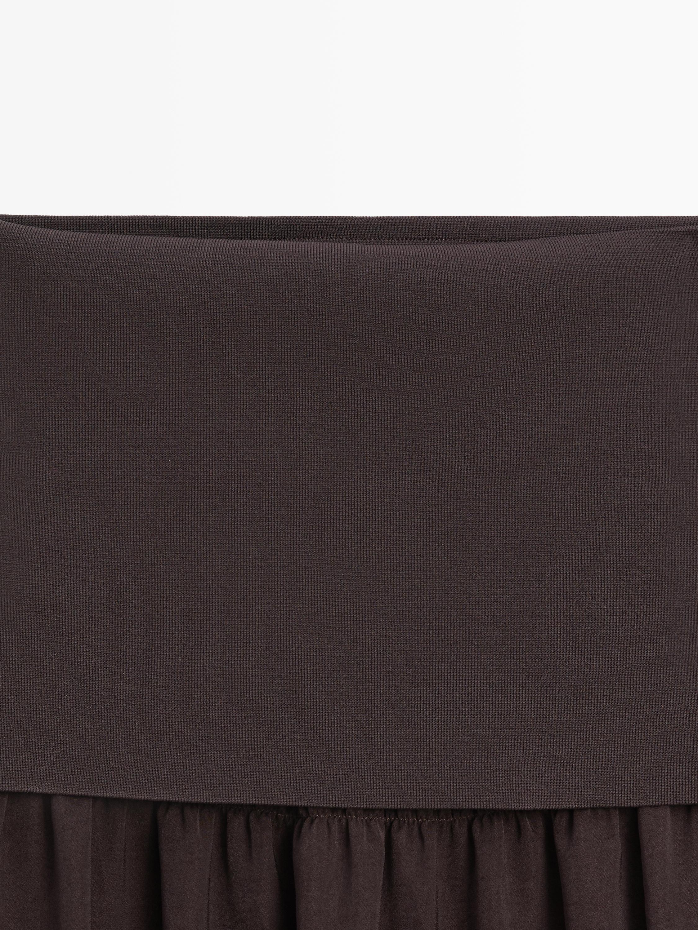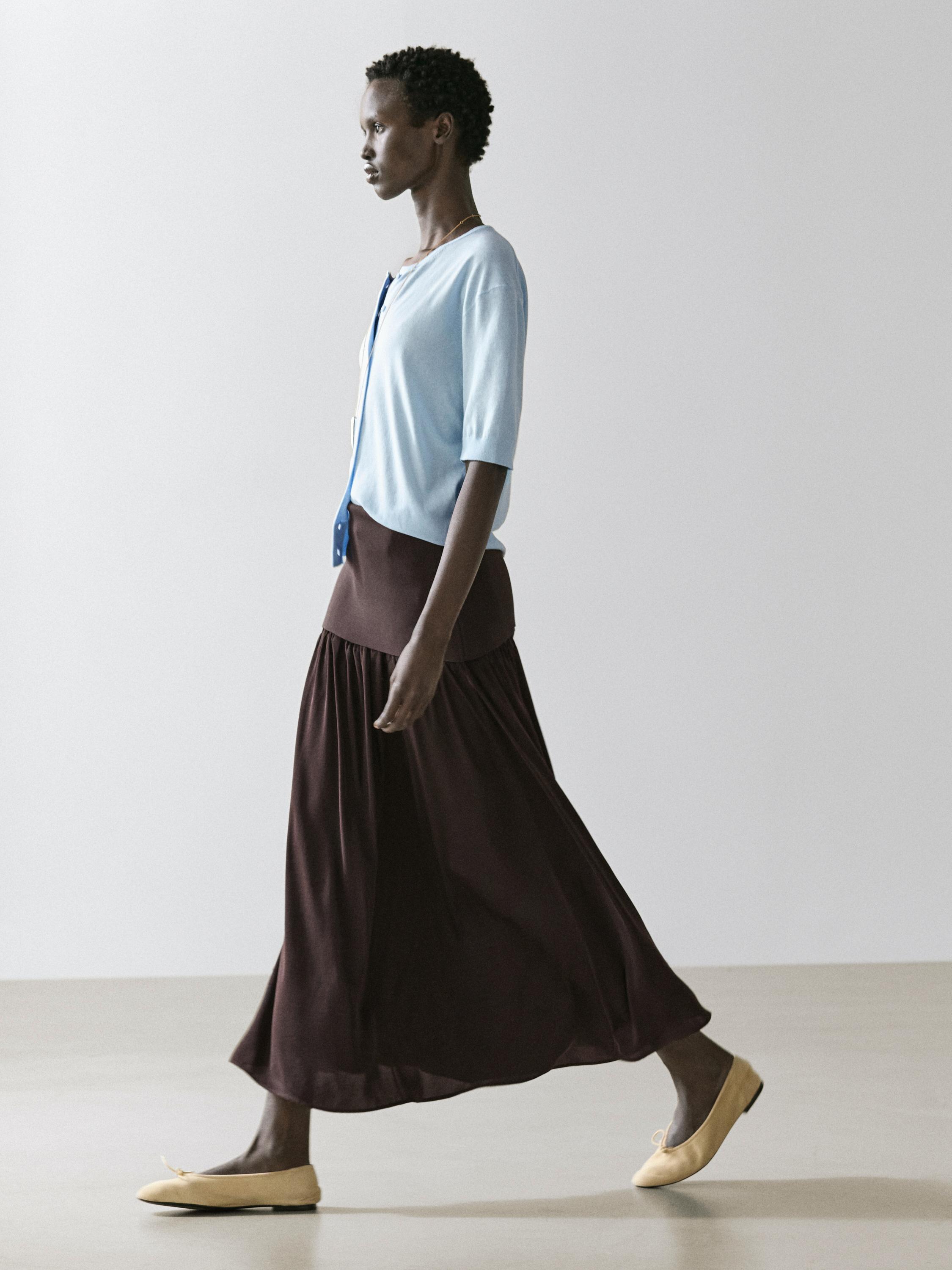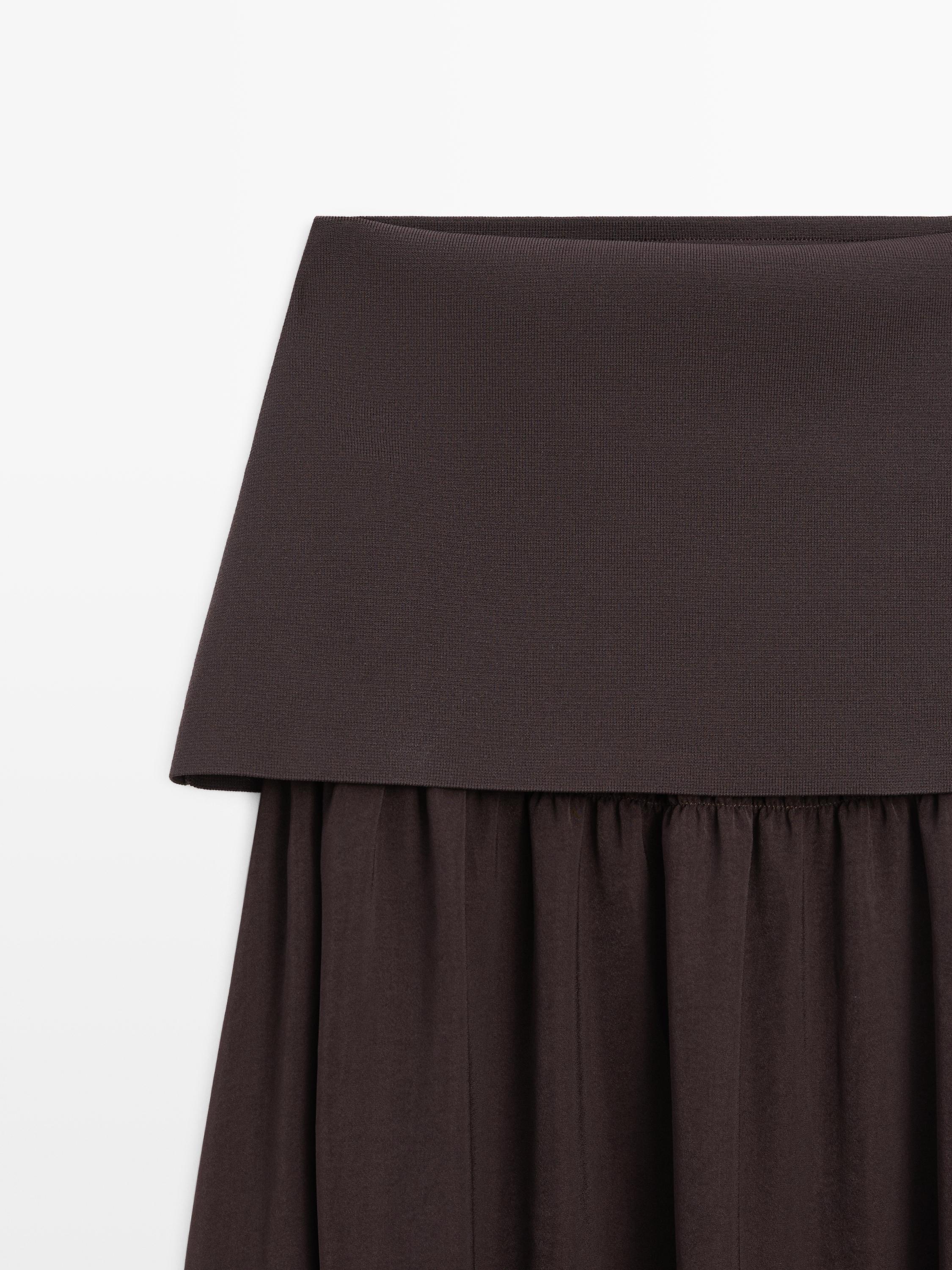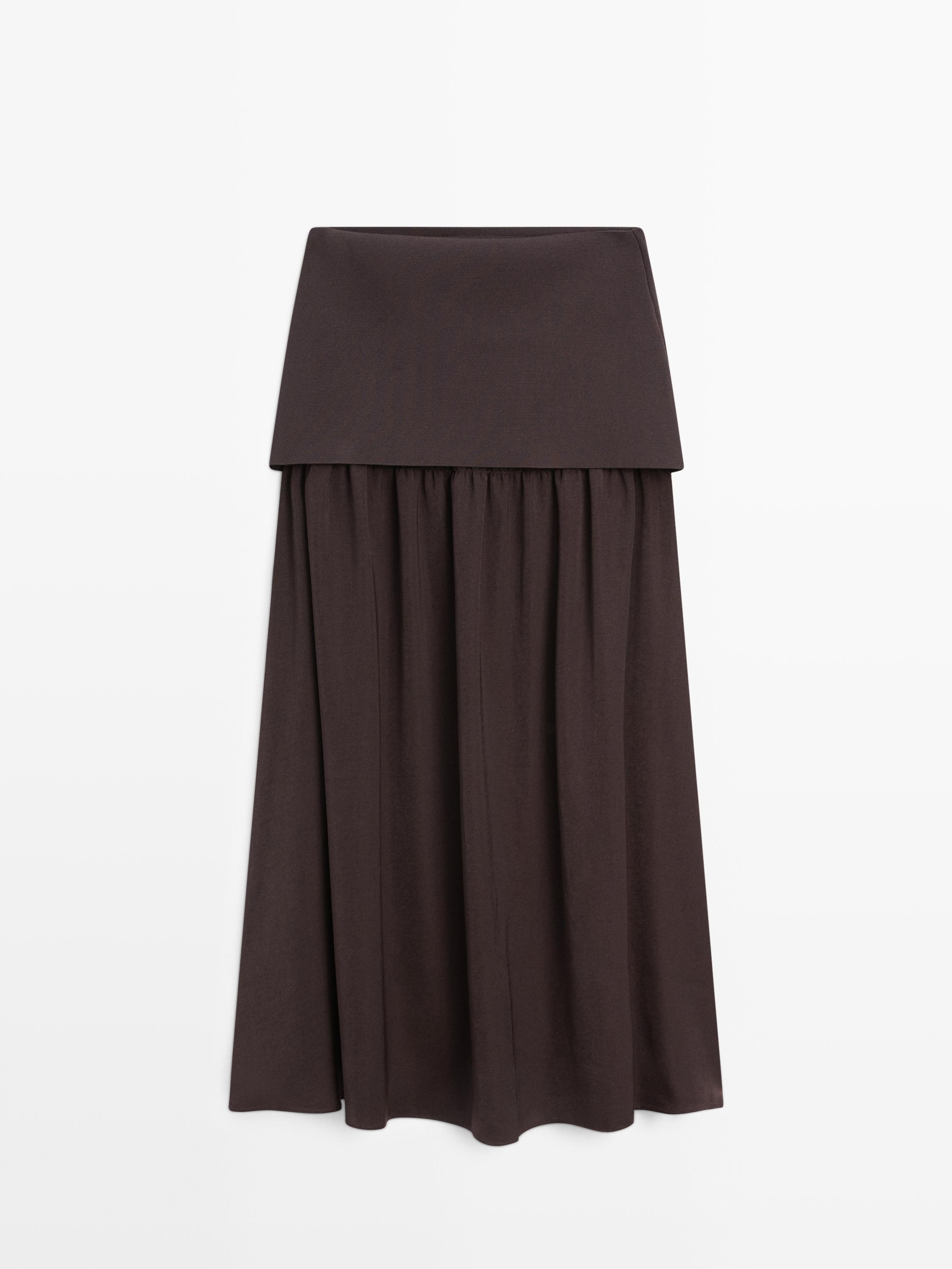 Massimo Dutti Струящаяся юбка миди с контрастными деталями, коричневый