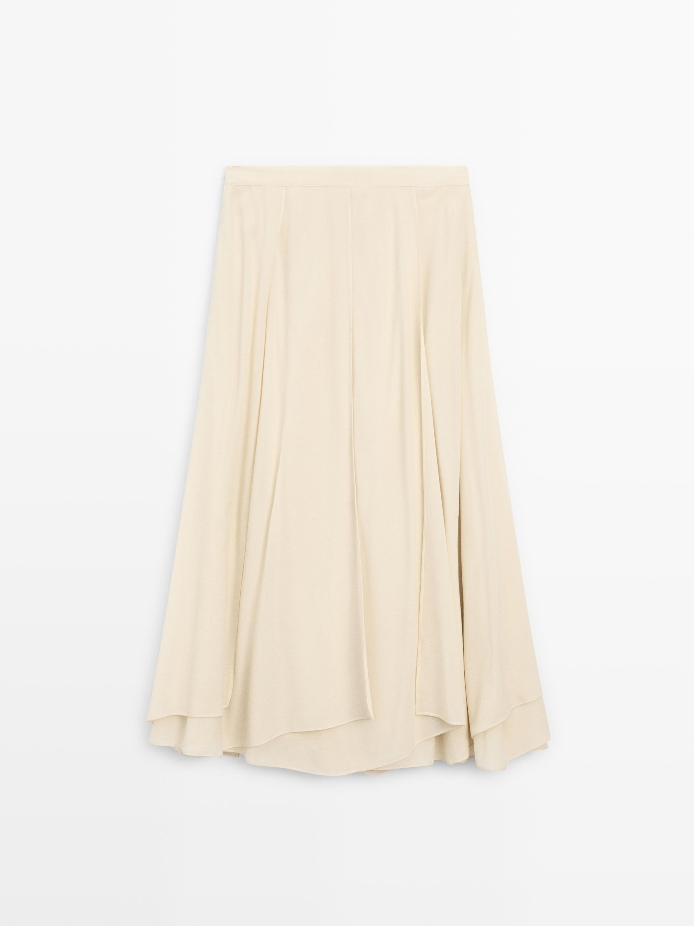 Massimo Dutti Струящаяся юбка миди с оборками, кремовый