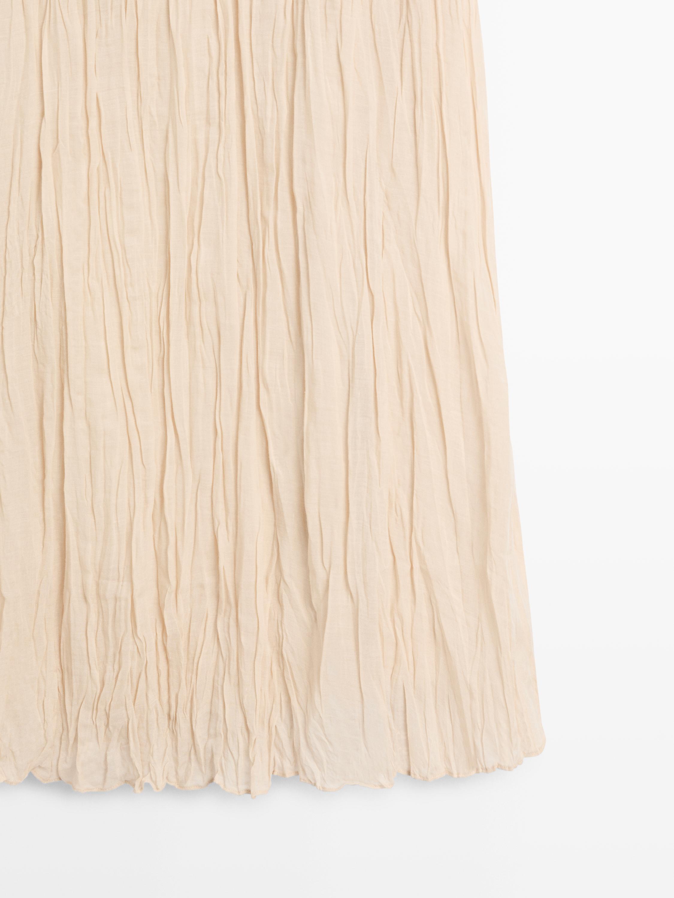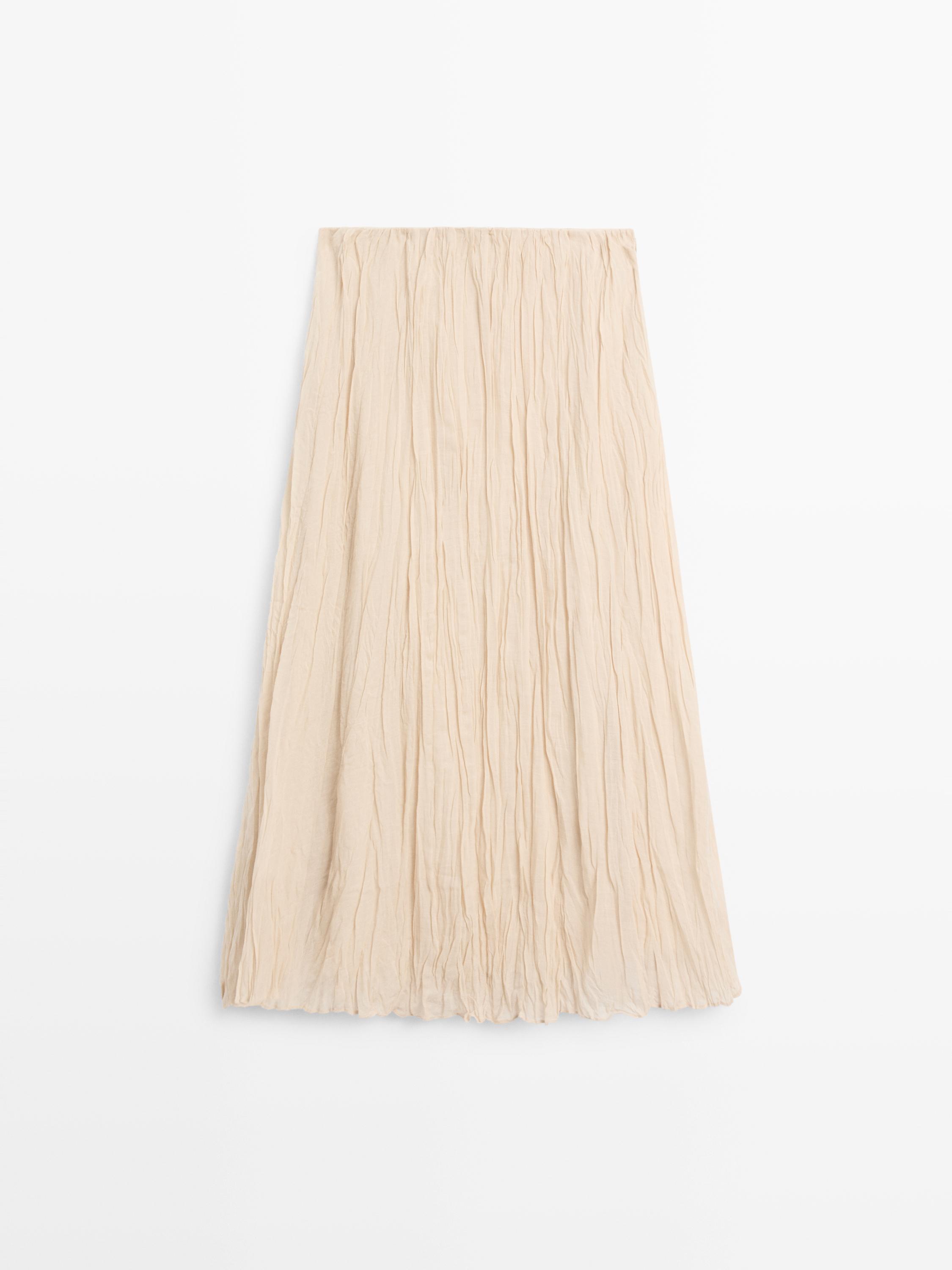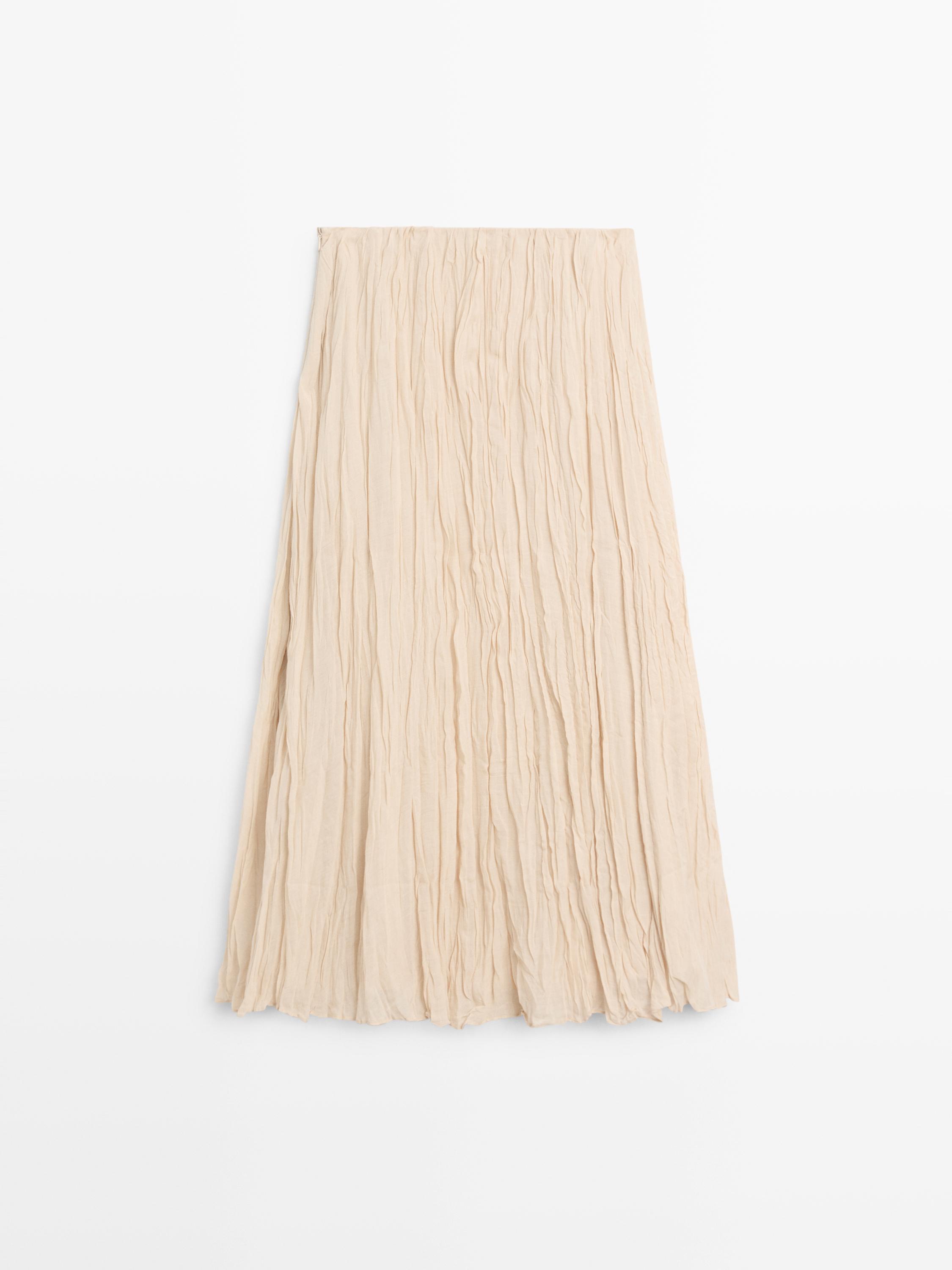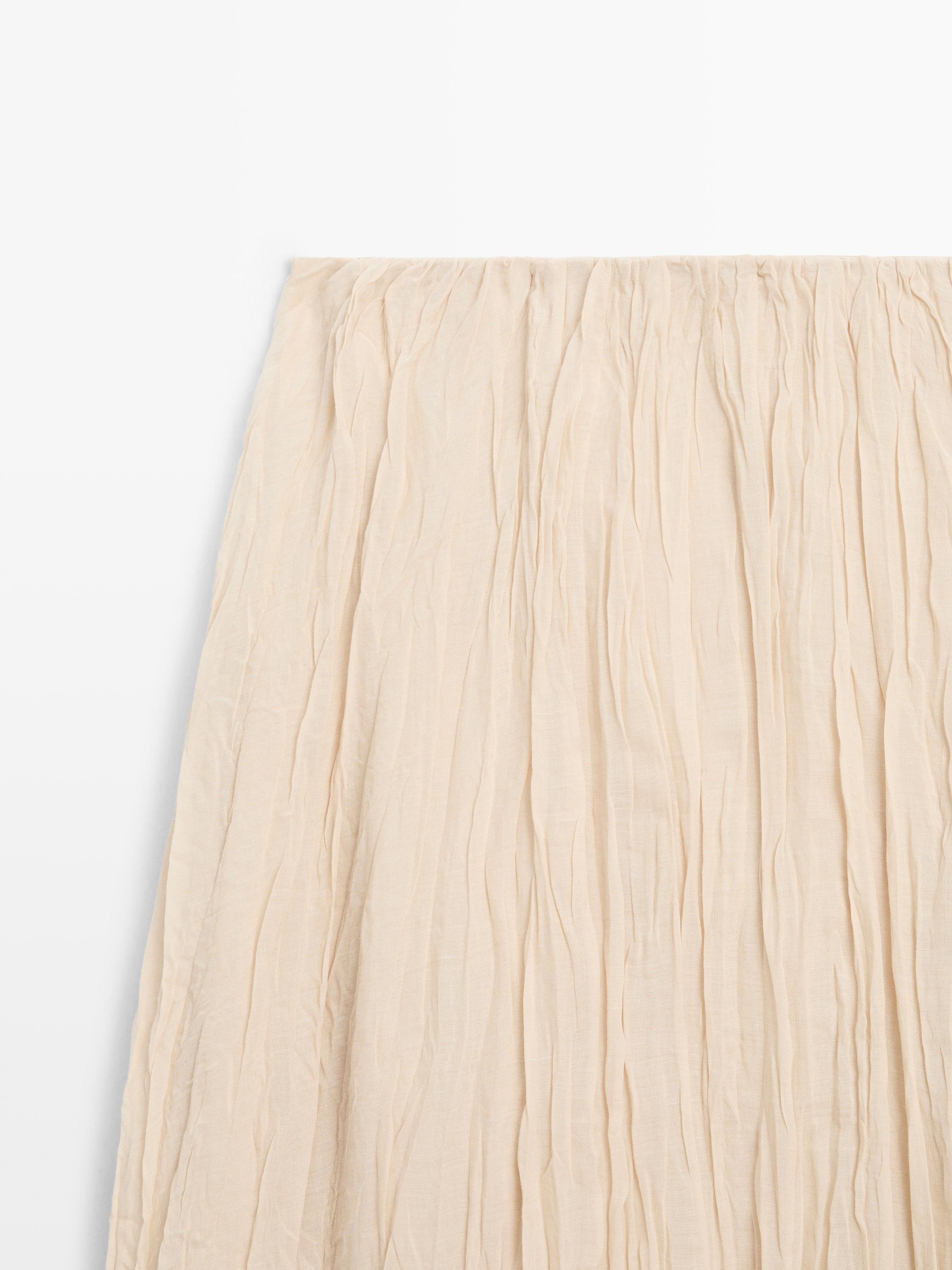 Massimo Dutti Струящаяся юбка миди с плиссировкой, кремовый