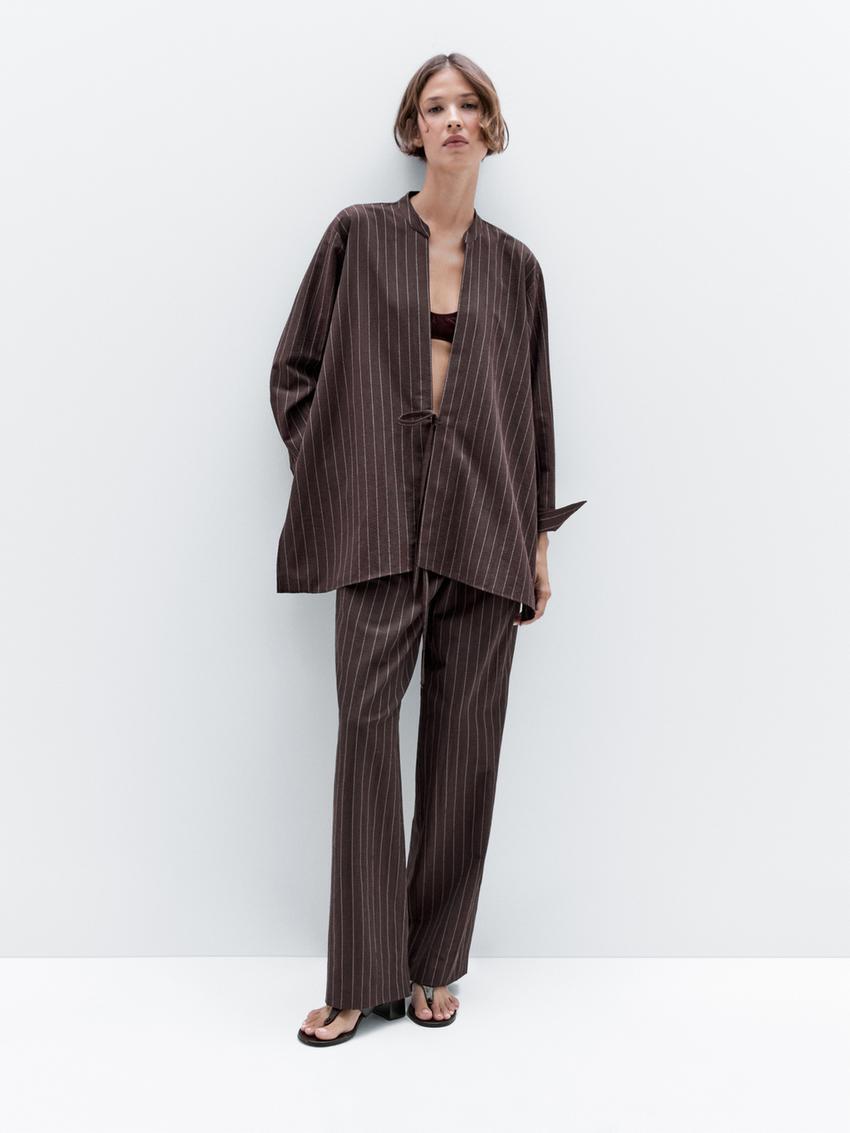 Massimo Dutti Струящееся кимоно в тонкую полоску, бордовый
