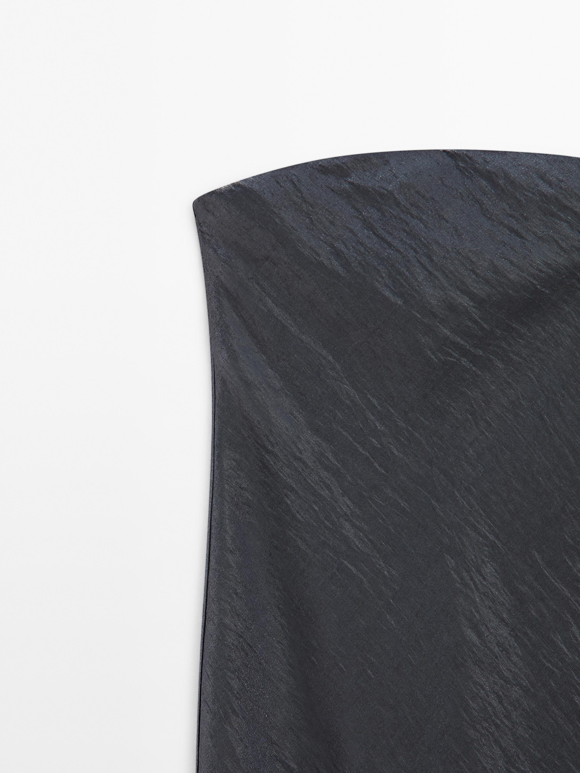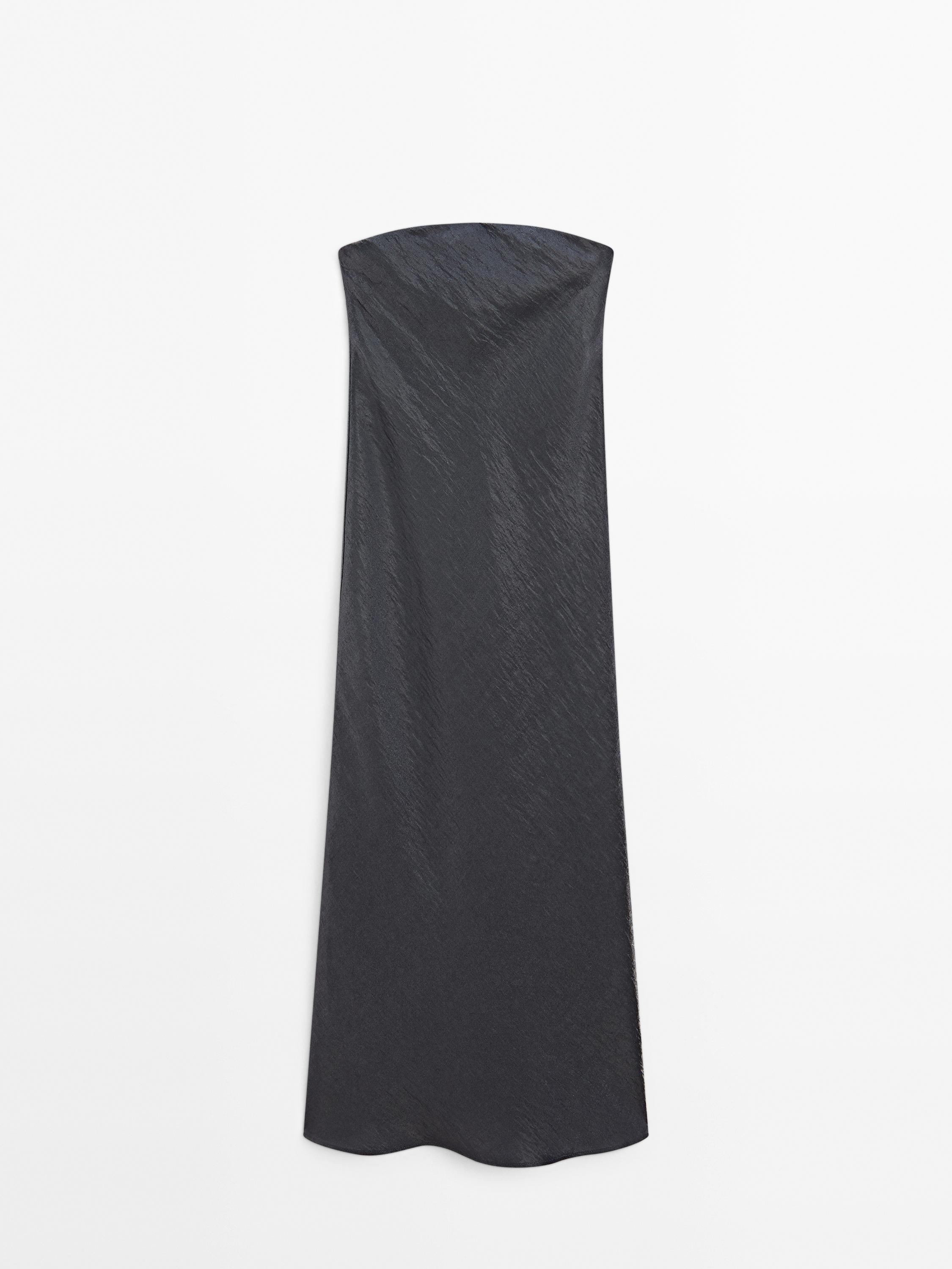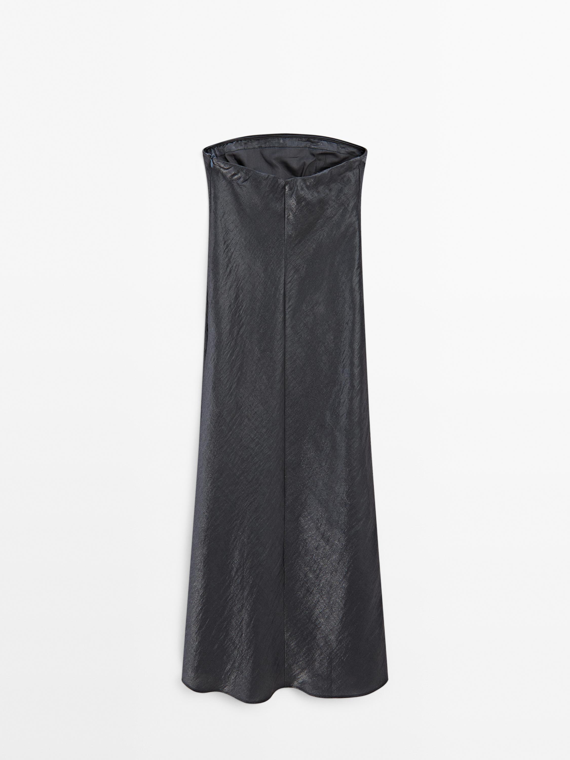 Massimo Dutti Струящееся платье миди без бретелей, серебряный