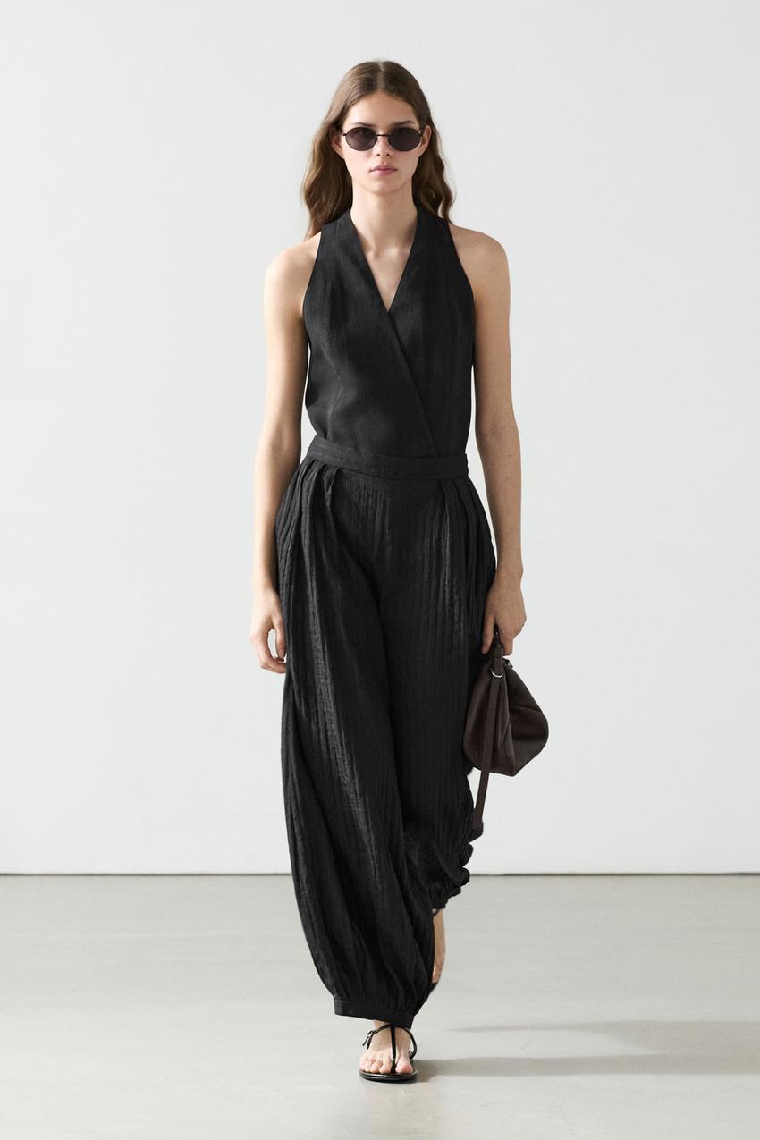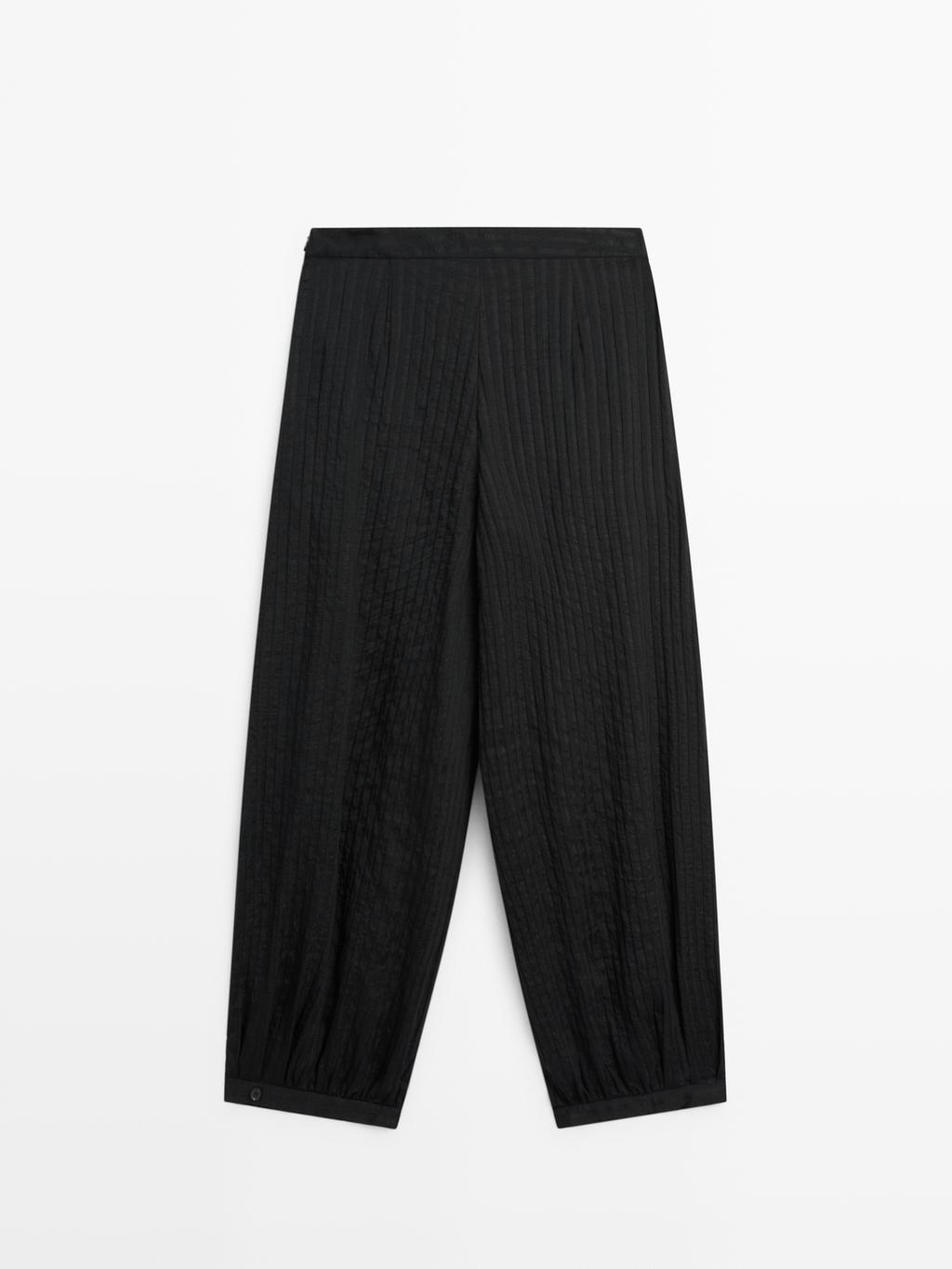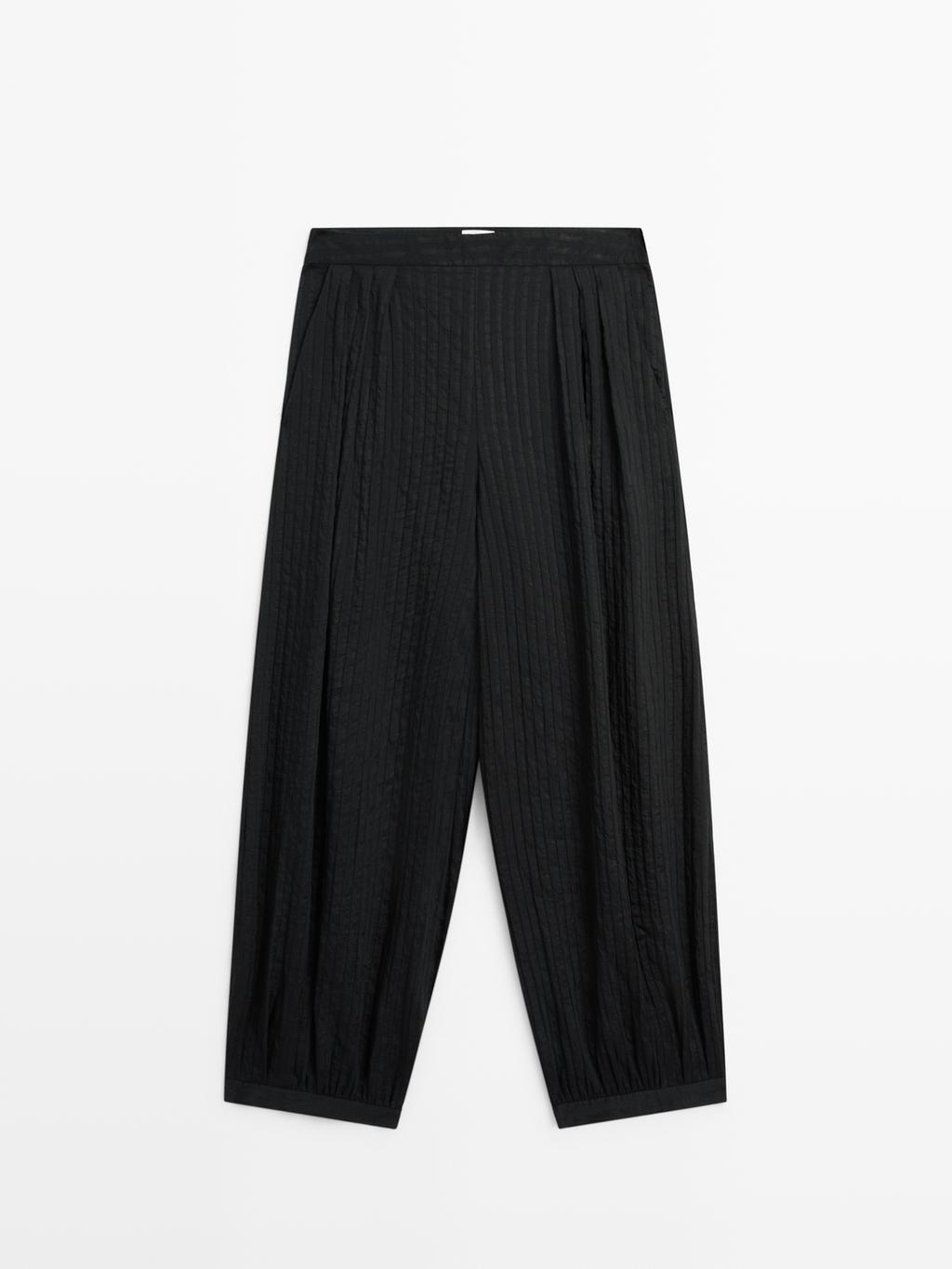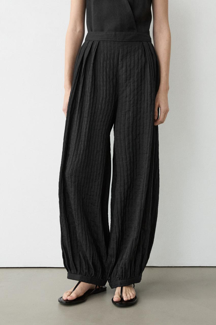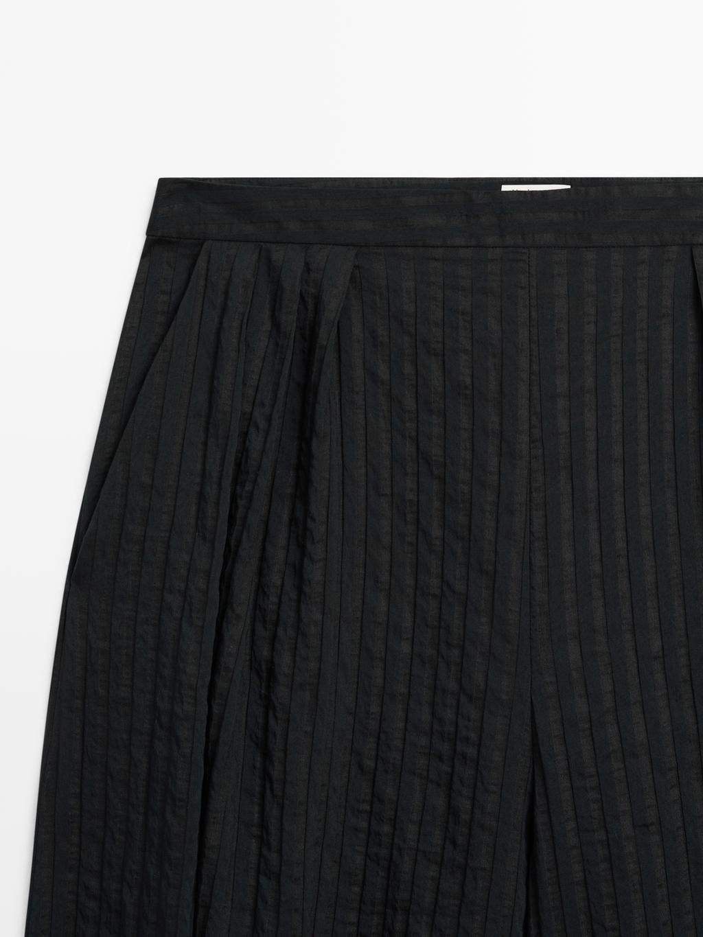Massimo Dutti Струящиеся брюки-саруэль из льняной смеси, черный