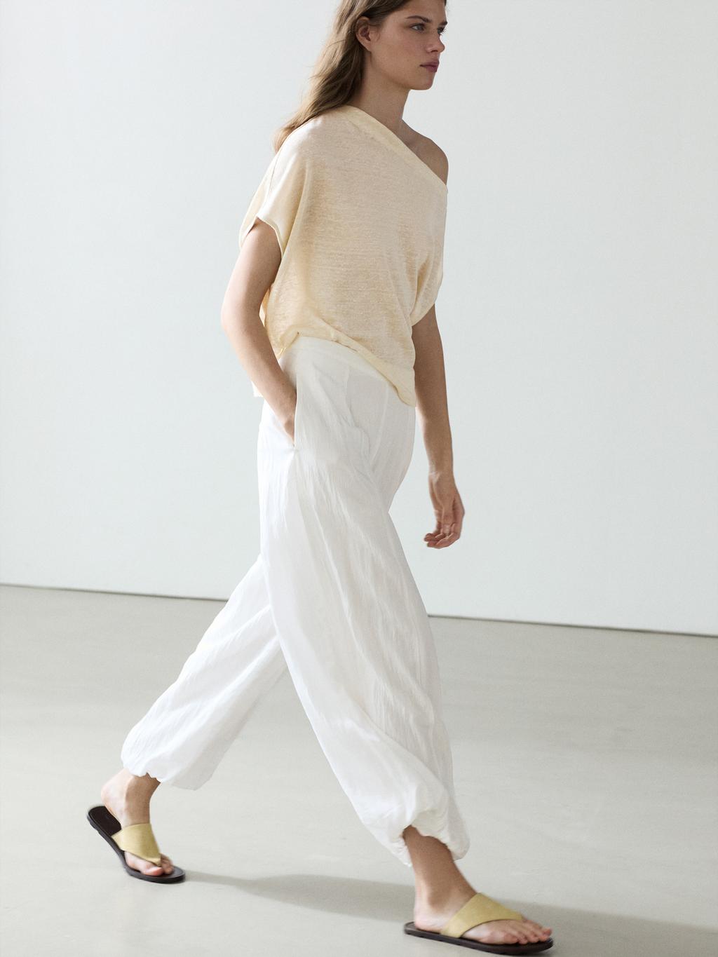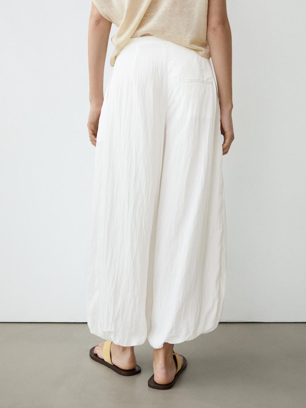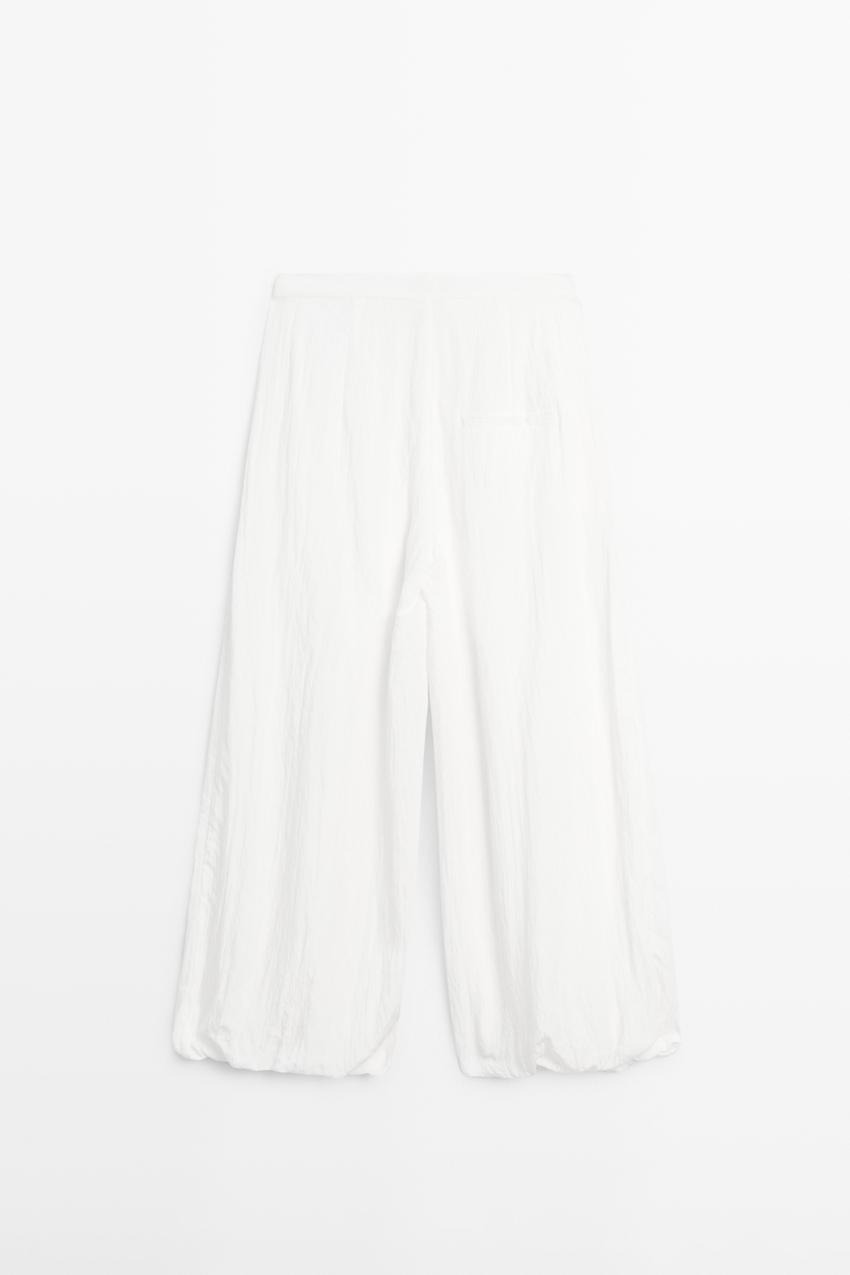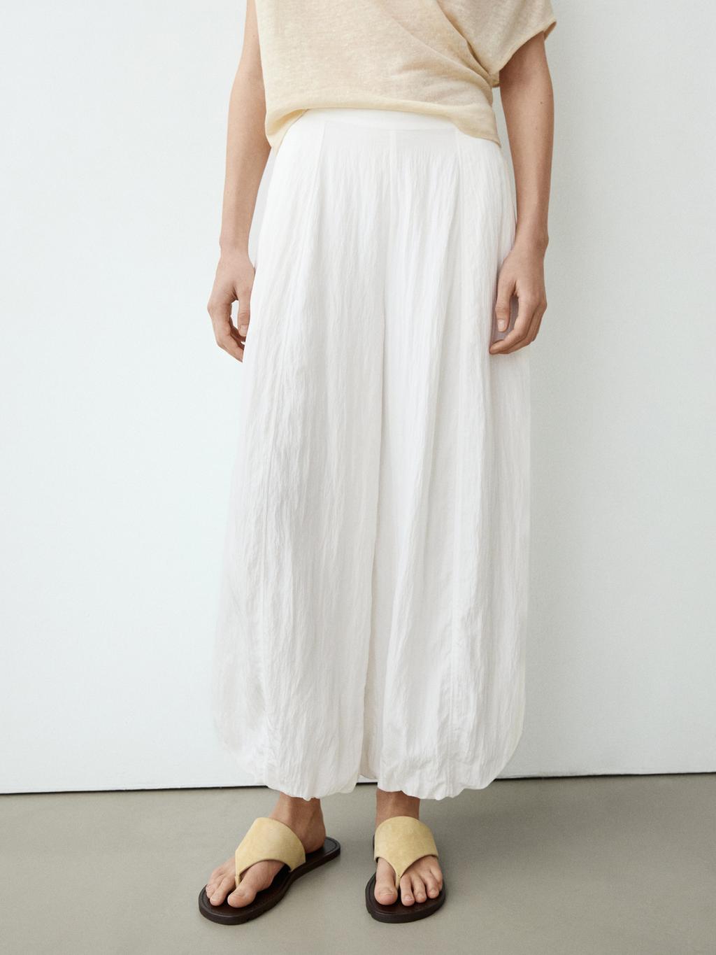Massimo Dutti Струящиеся брюки-саруэль с фактурной отделкой, белый