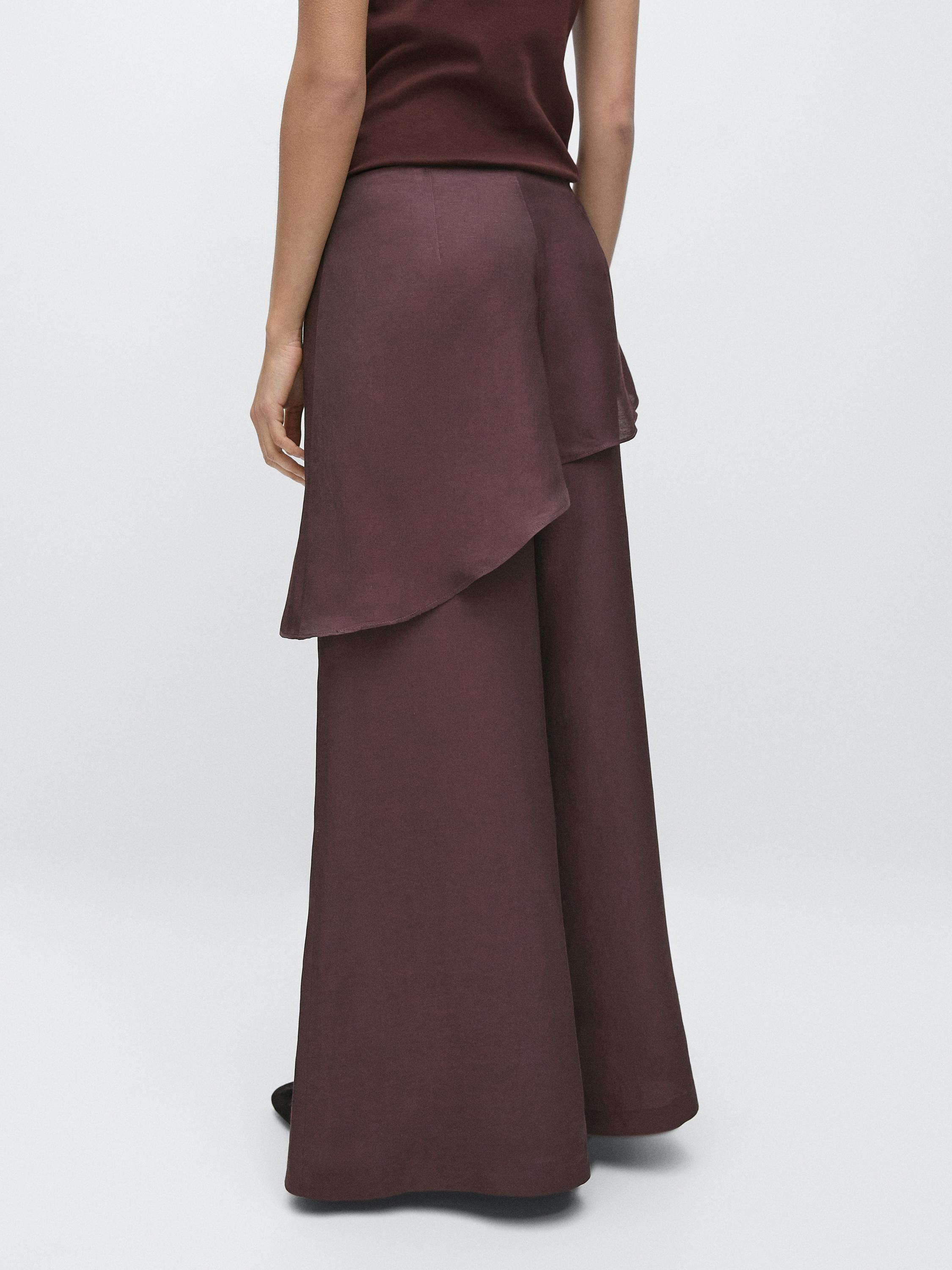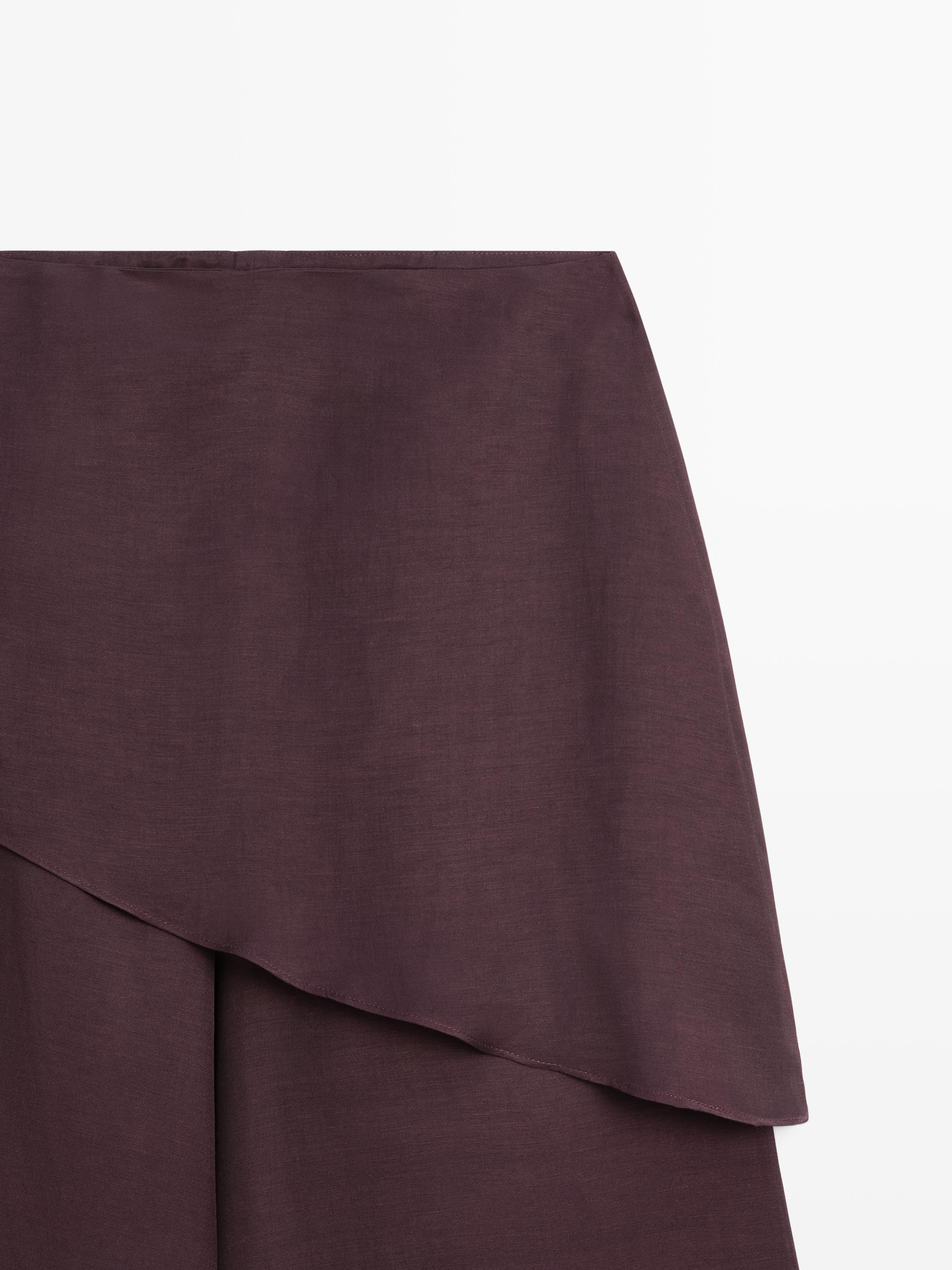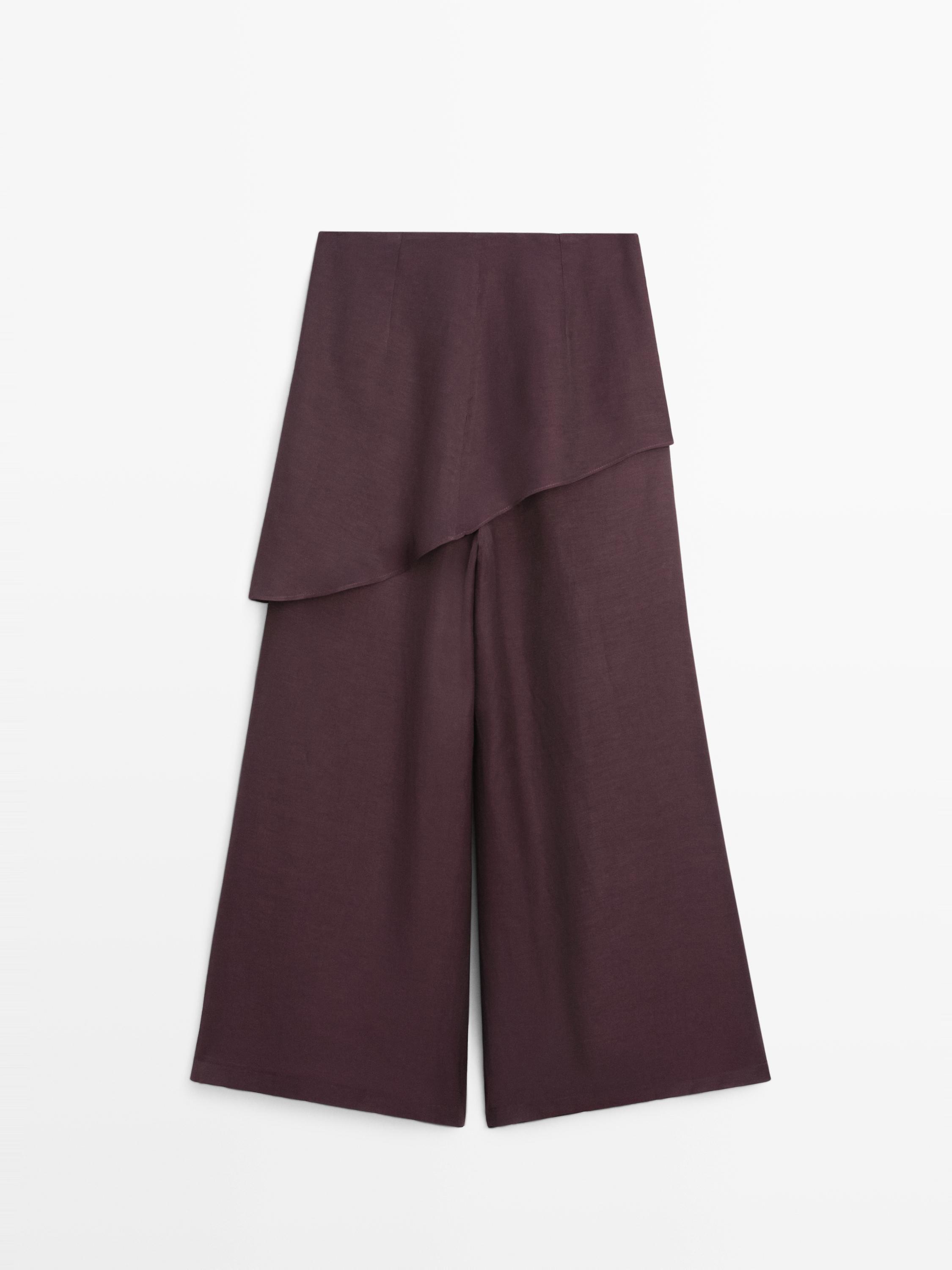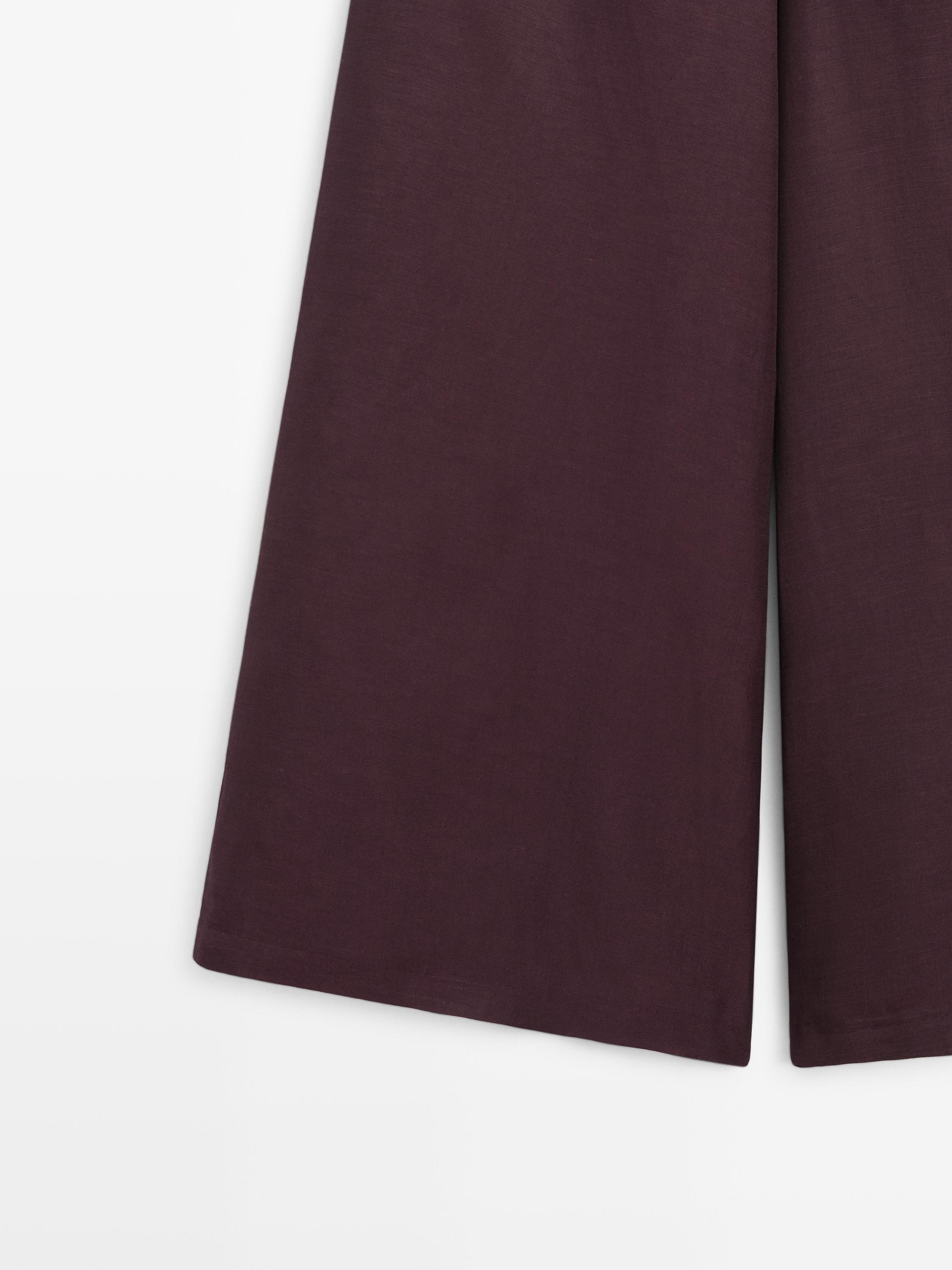 Massimo Dutti Струящиеся брюки-юбка из смесовой льняной ткани, баклажанный
