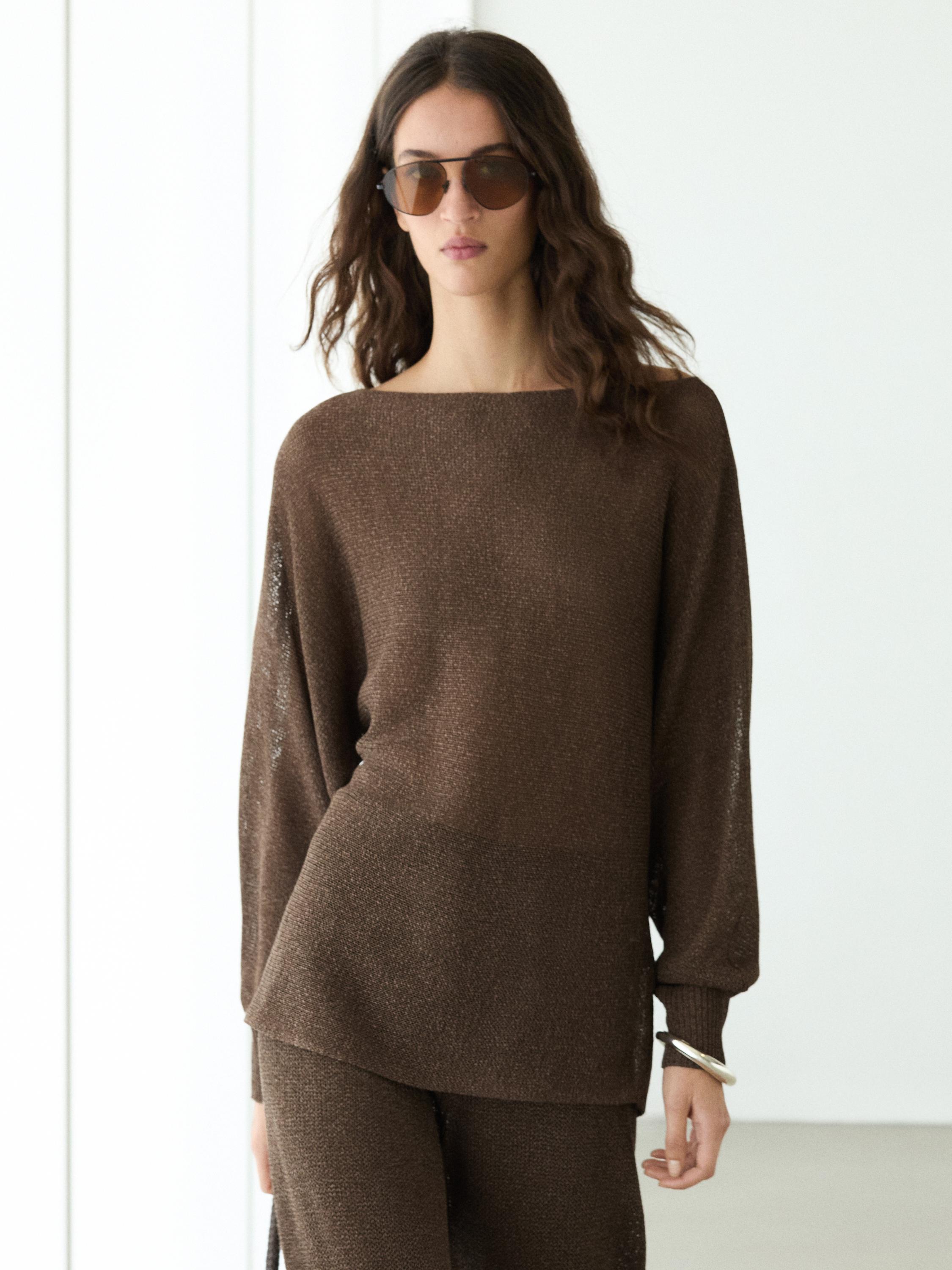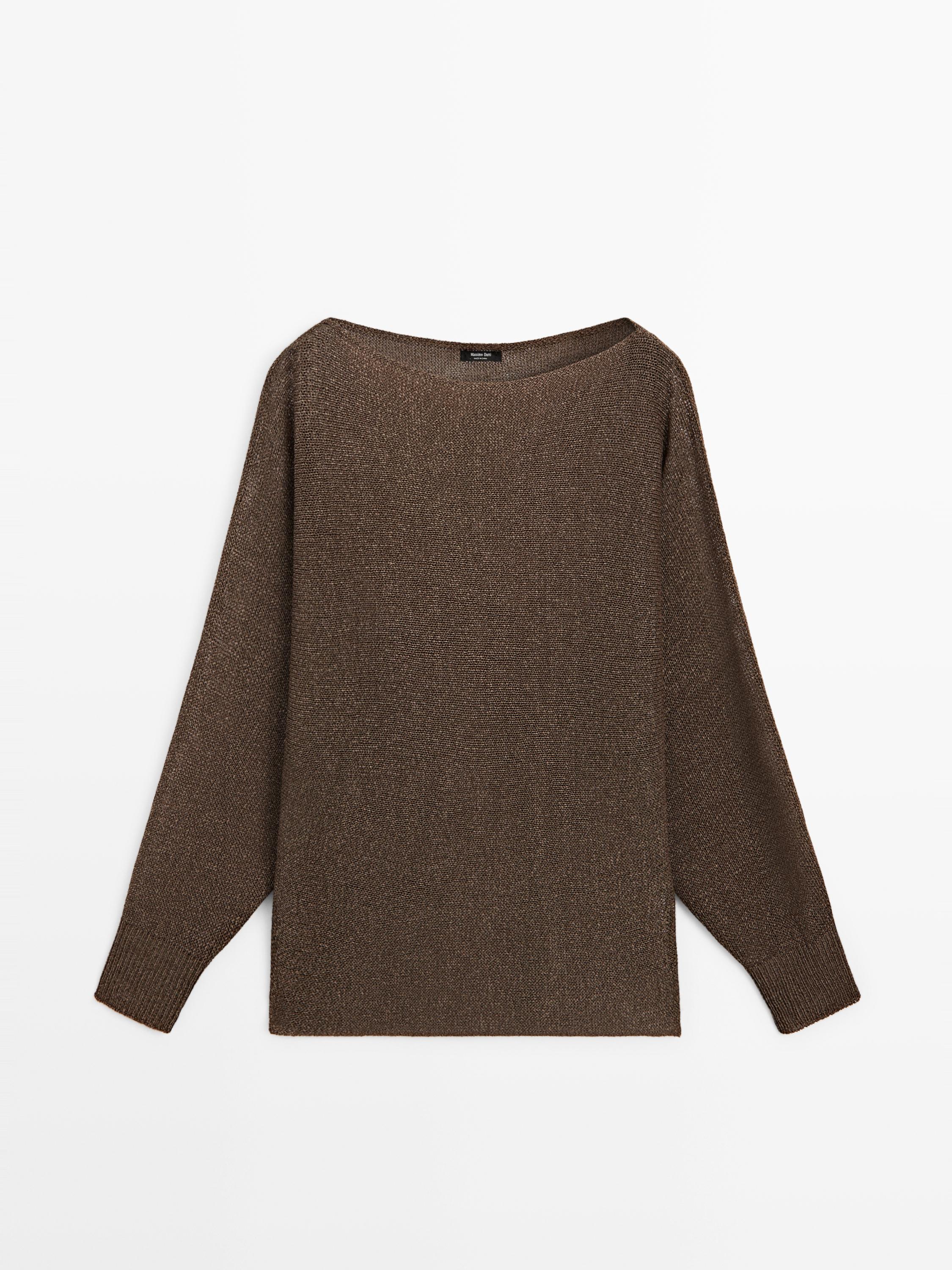 Свитер из смесового хлопка. Вырез «лодочка». Широкие длинные рукава. Легкая струящаяся ткань .