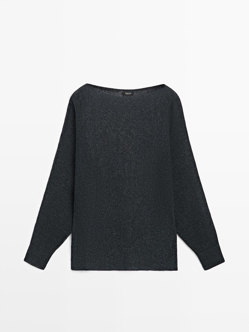 Свитер из смесового хлопка. Вырез «лодочка». Широкие длинные рукава. Легкая струящаяся ткань .