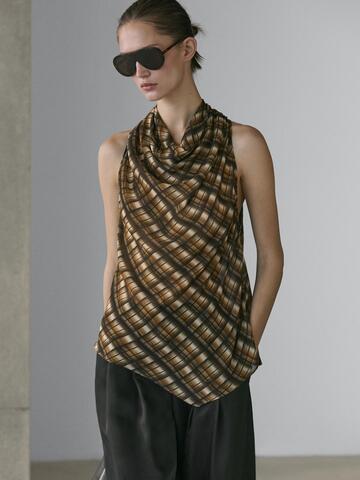 Massimo Dutti Струящийся топ с сборками, горчично-желтый