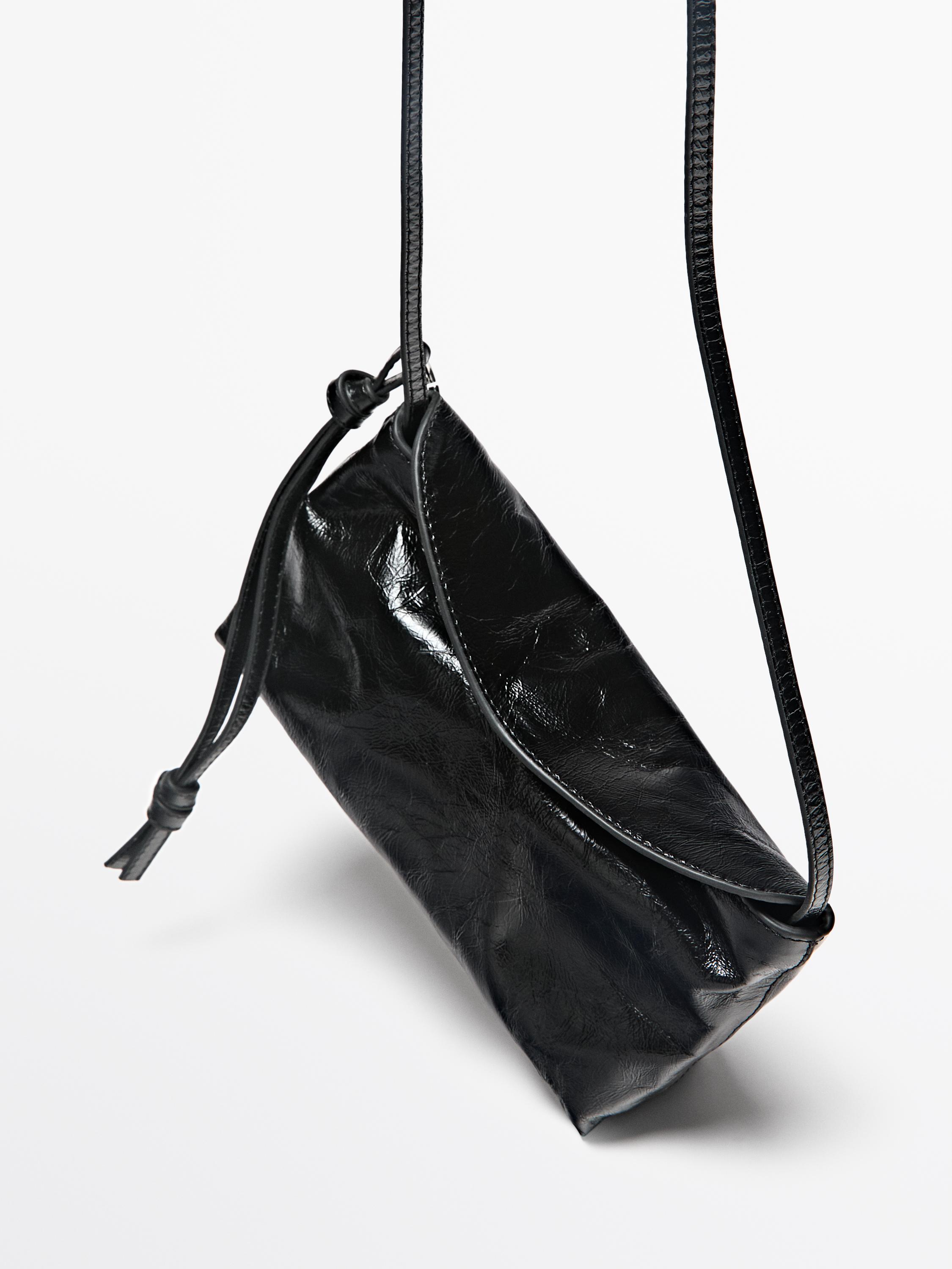 Massimo Dutti Сумка через плечо из кожи наппа, черный