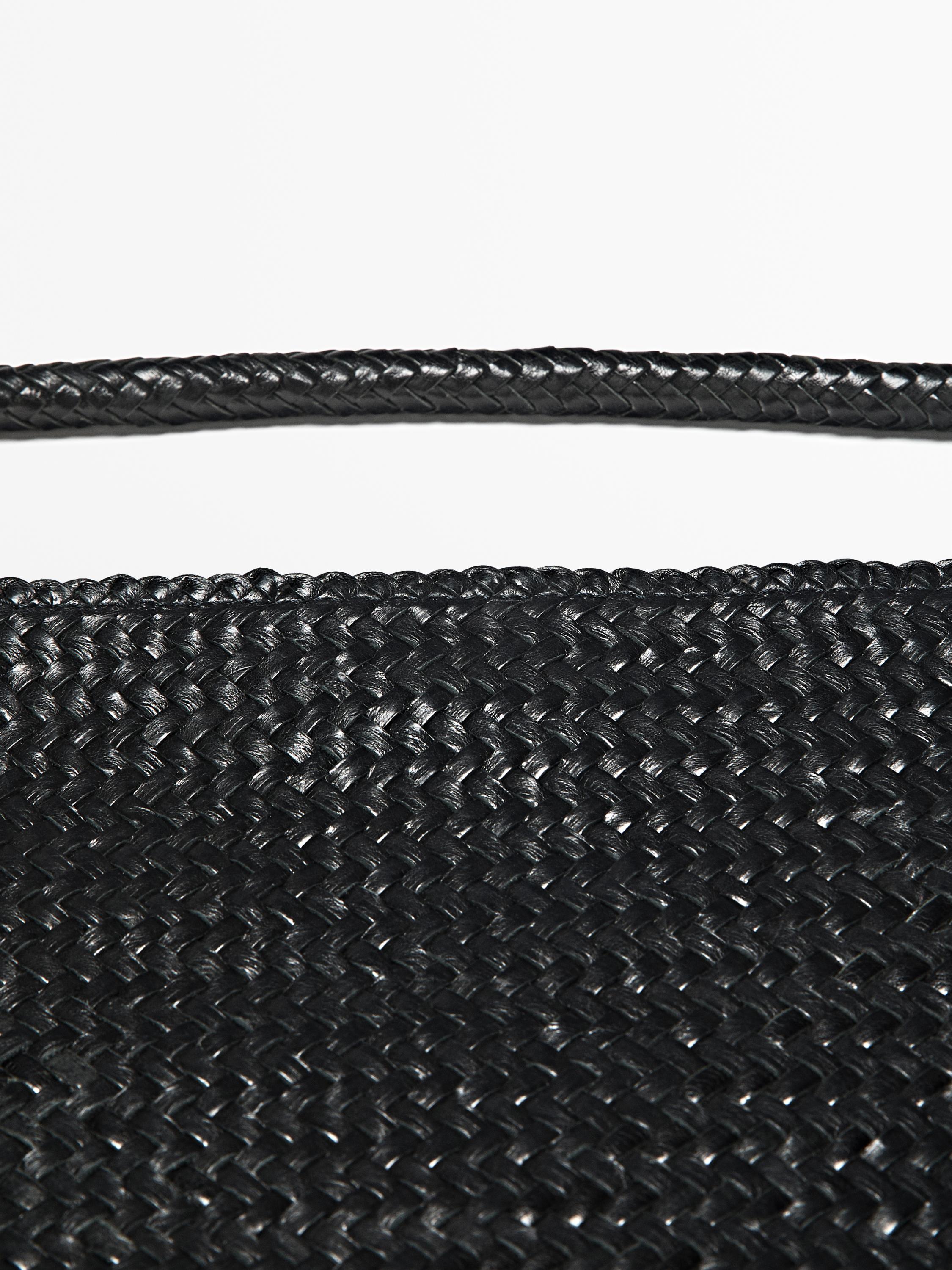 Massimo Dutti Сумка через плечо из плетеной кожи среднего размера, черный