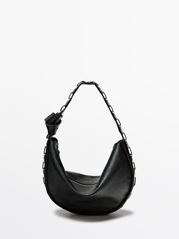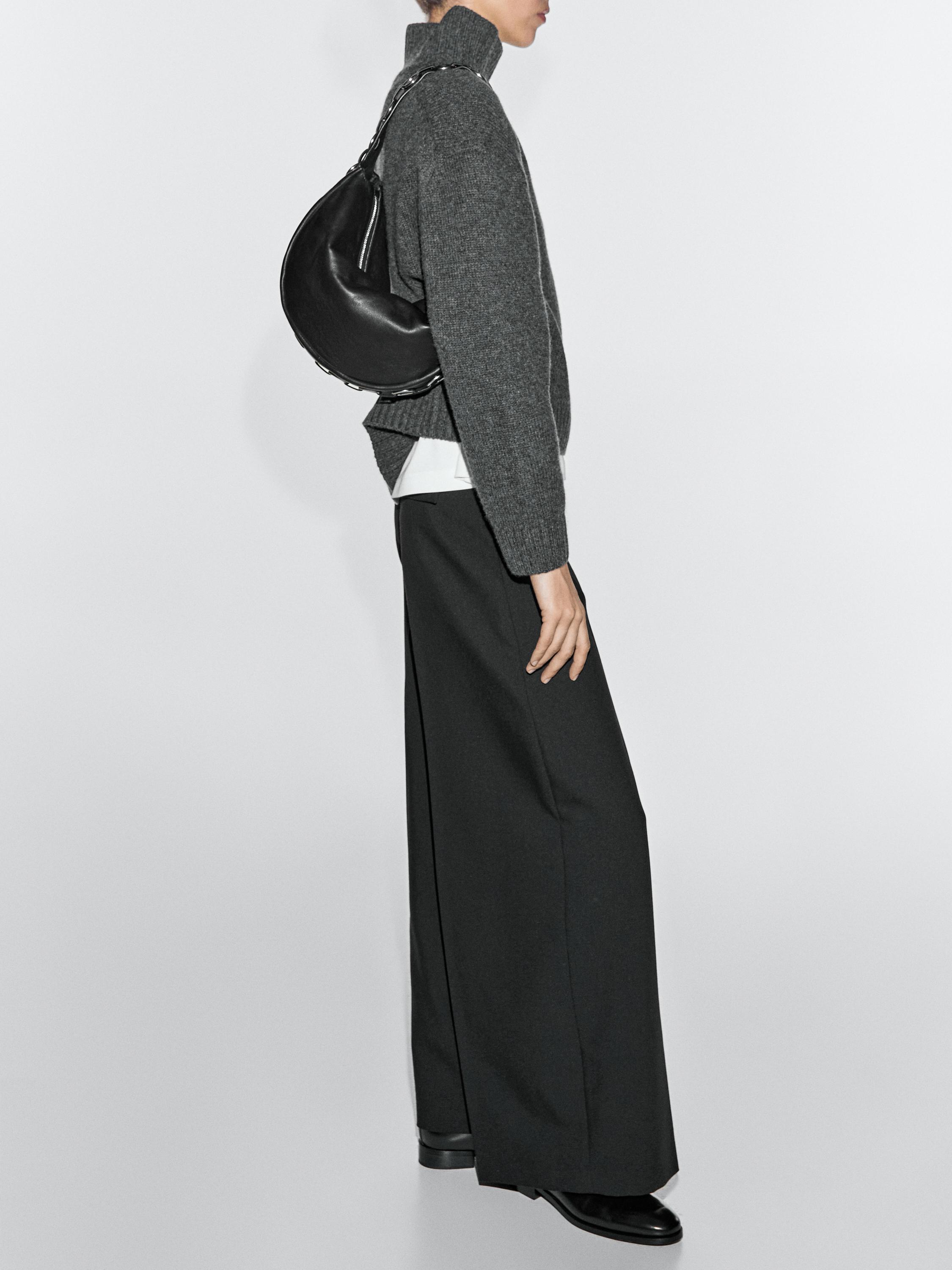 Massimo Dutti Сумка из кожи наппа с люверсами, черный