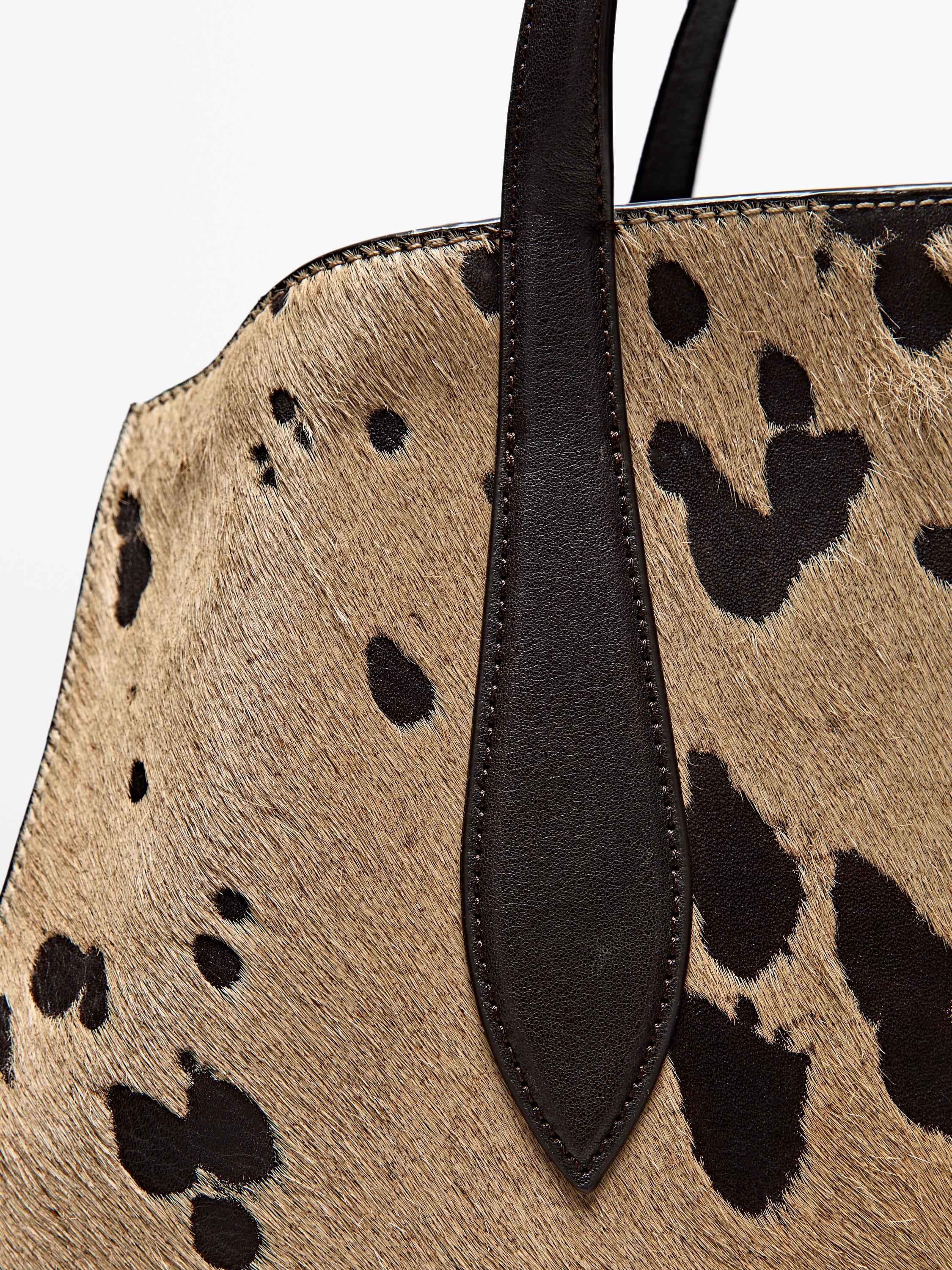 Сумка-макси из коровьей кожи с мехом. Ручка/плечевой ремень. Застегивается на кожаный ремешок и металлическую петлю. Внутренние карманы. Хлопковая подкладка. Анималистичный принт.