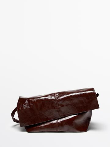 Massimo Dutti Сумка с клапаном из потрескавшейся кожи наппа, коричневый