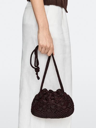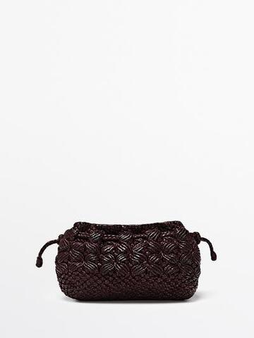 Massimo Dutti Сумка-клатч из кожи наппа в технике макраме, бургунди